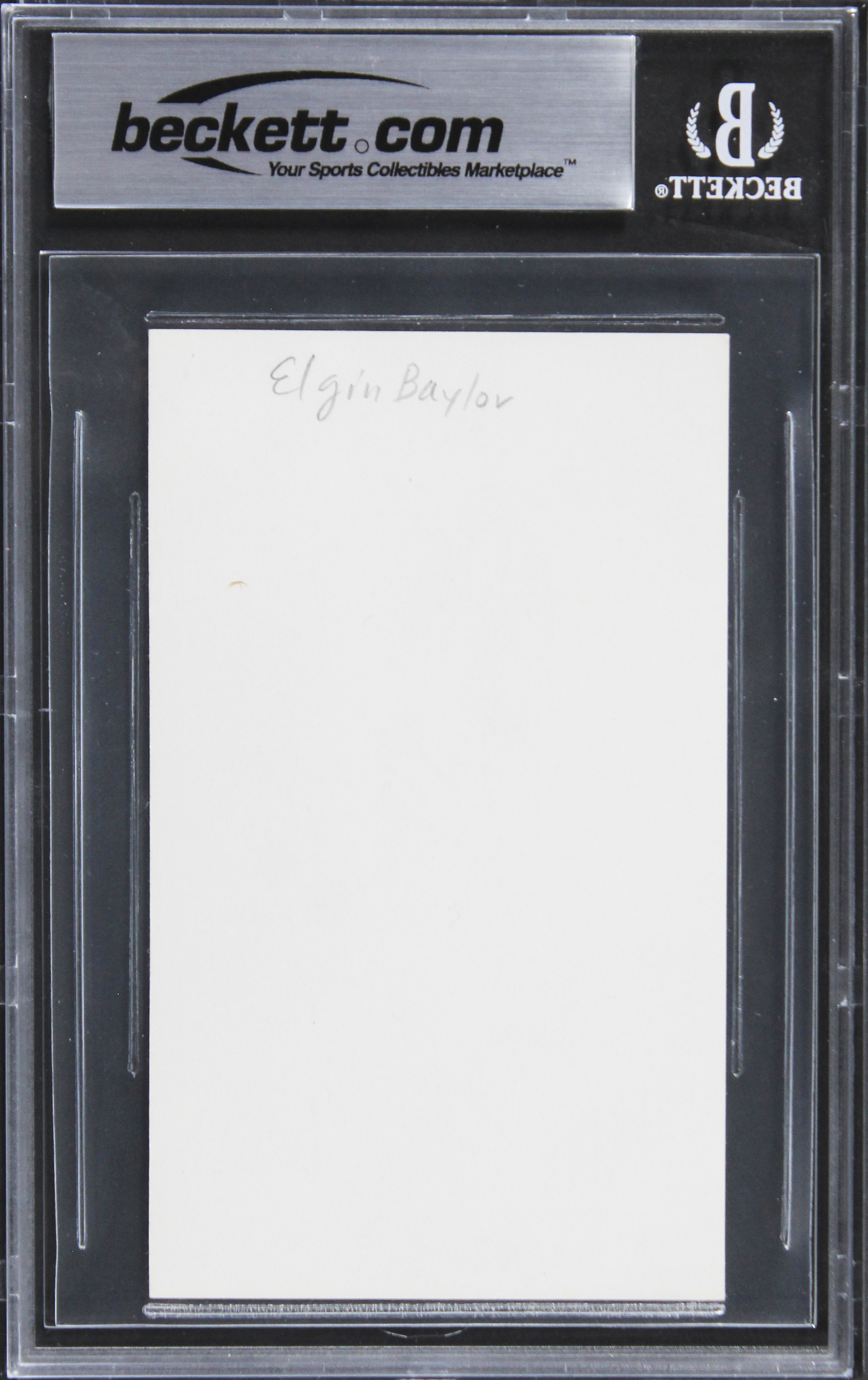This Autographed 3x5 Index Card has been Personally Signed by Elgin Baylor of the Los Angeles Lakers. This item is 100% Authentic, it comes slabbed and authenticated by Beckett Authentication Services. The authenticity can be verified on Beckett Authentication Services website.