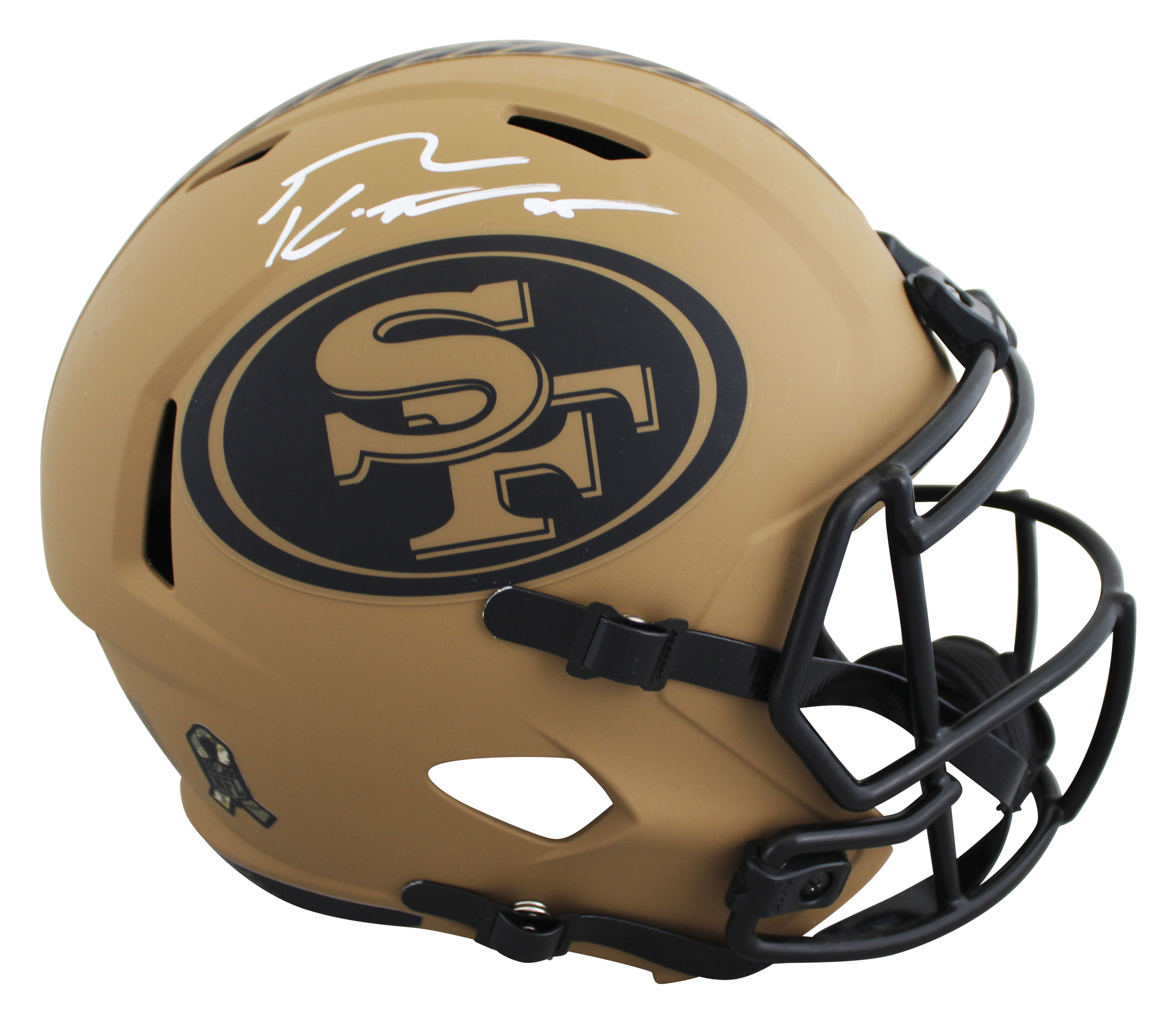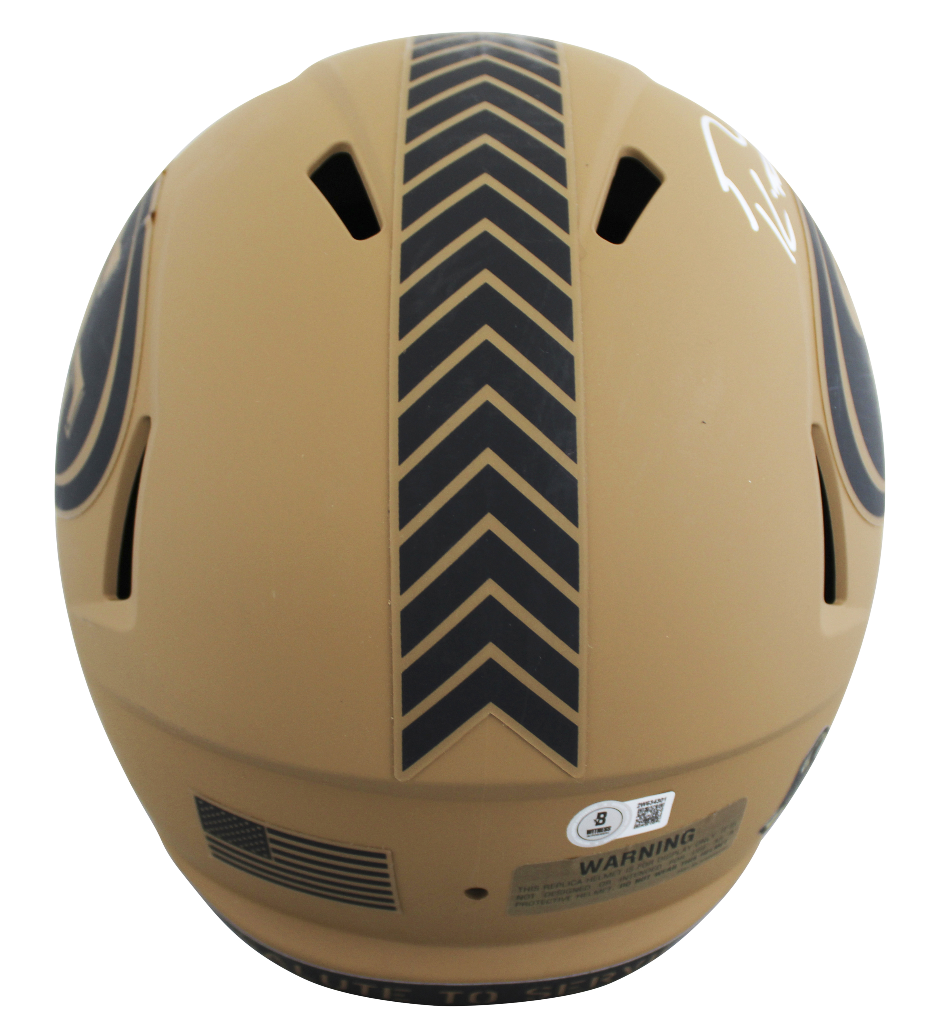 This Autographed Alternate 2023 Salute To Service II Riddell Full Size Speed Rep Helmet has been Personally Signed by George Kittle of the San Francisco 49ers. This item is 100% Authentic to include a hologram by Beckett Authentication Services. This item will come with an affixed Beckett Authentication Services (BAS) authentication sticker, which includes a scannable QR code to verify authenticity. Please note that Beckett no longer provides serial-numbered COA cards, and the attached BAS sticker will serve as the complete authentication for this item. This is a BAS Witnessed Protection Program item which means a Beckett Authentication Service representative was present when this item was being signed. The authenticity can be verified on Beckett Authentication Services website.