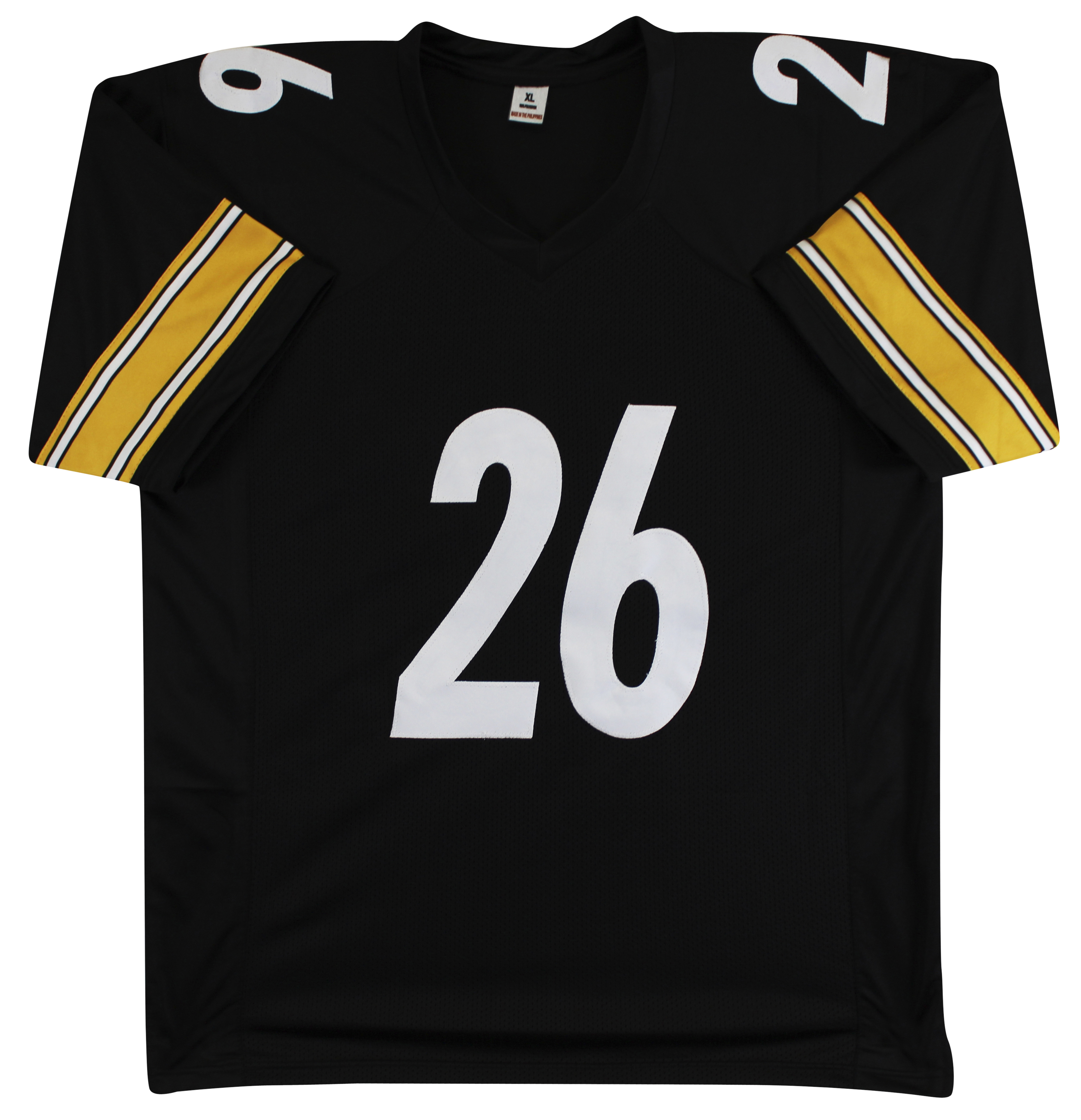 This Autographed Black Pro Style Jersey has been Personally Signed by Le'Veon Bell of the Pittsburgh Steelers. This item is 100% Authentic to include a hologram by Beckett Authentication Services. This item will come with an affixed Beckett Authentication Services (BAS) authentication sticker, which includes a scannable QR code to verify authenticity. Please note that Beckett no longer provides serial-numbered COA cards, and the attached BAS sticker will serve as the complete authentication for this item. This is a BAS Witnessed Protection Program item which means a Beckett Authentication Service representative was present when this item was being signed. We conducted an autograph signing with Le'Veon Bell where multiples of the same item were signed. While the photographs are representative of this item, the size, placement and strength of the signature may vary. Each item is hand signed, therefore, each autograph is unique. This item can be verified through BAS Witnessed. This is a X-Large sized, non-branded, custom-stitched Jersey.