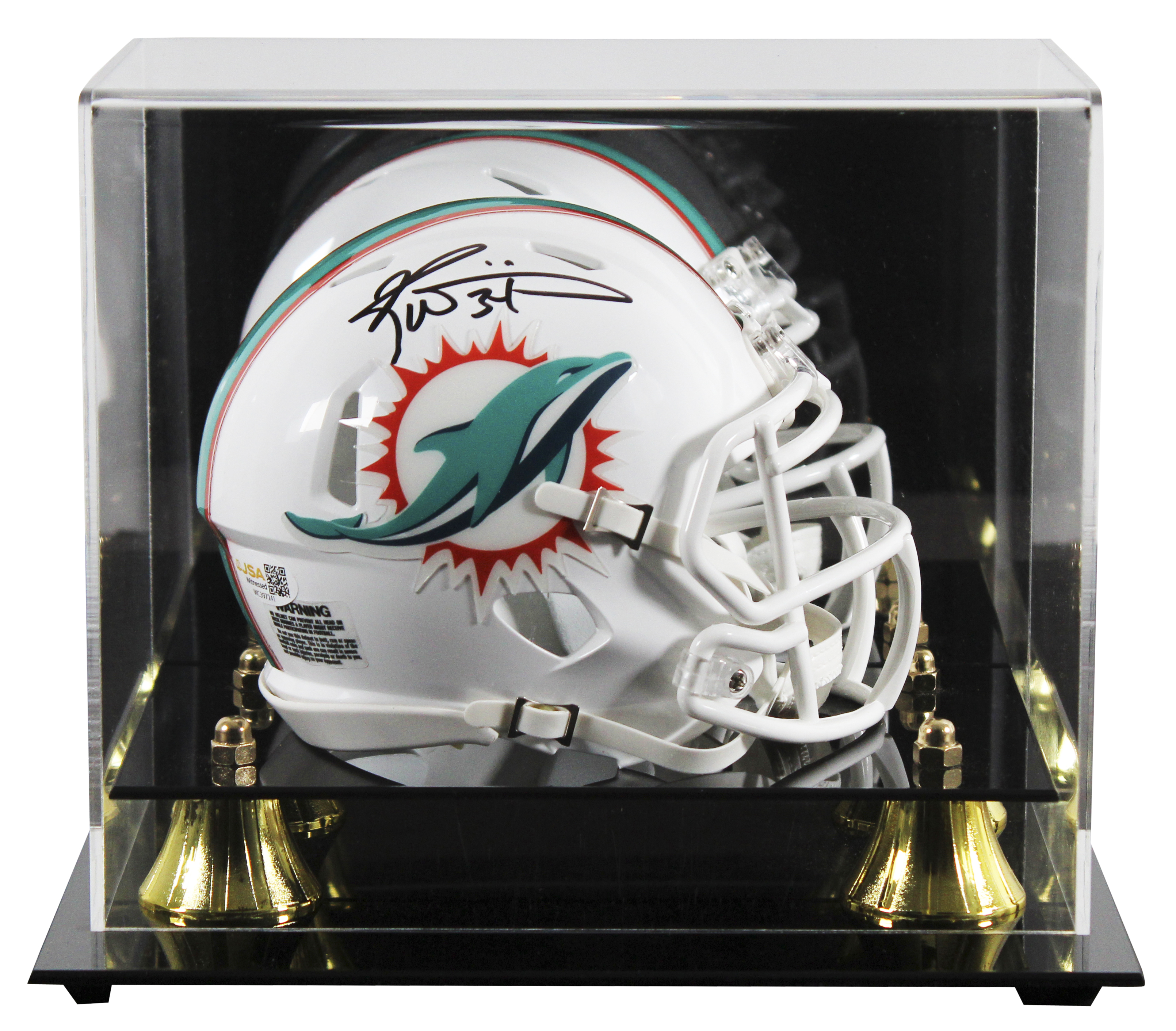 This Autographed Speed Mini Helmet W/ Uv Mirrored Back Acrylic Display Case has been Personally Signed by Ricky Williams of the Miami Dolphins. This item is 100% Authentic to include a hologram by James Spence Authentication Services. This item will come with an affixed James Spence Authentication Services (JSA) authentication sticker, which includes a scannable QR code to verify authenticity. Please note that JSA no longer provides serial-numbered COA cards with witnessed items, and the attached JSA sticker will serve as the complete authentication for this item. This is a JSA Witnessed Protection Program item which means a JSA representative was present when this item was being signed. We conducted an autograph signing with Ricky Williams where multiples of the same item were signed. While the photographs are representative of this item, the size, placement and strength of the signature may vary. Each item is hand signed, therefore, each autograph is unique. This item can be verified through JSA Witness.