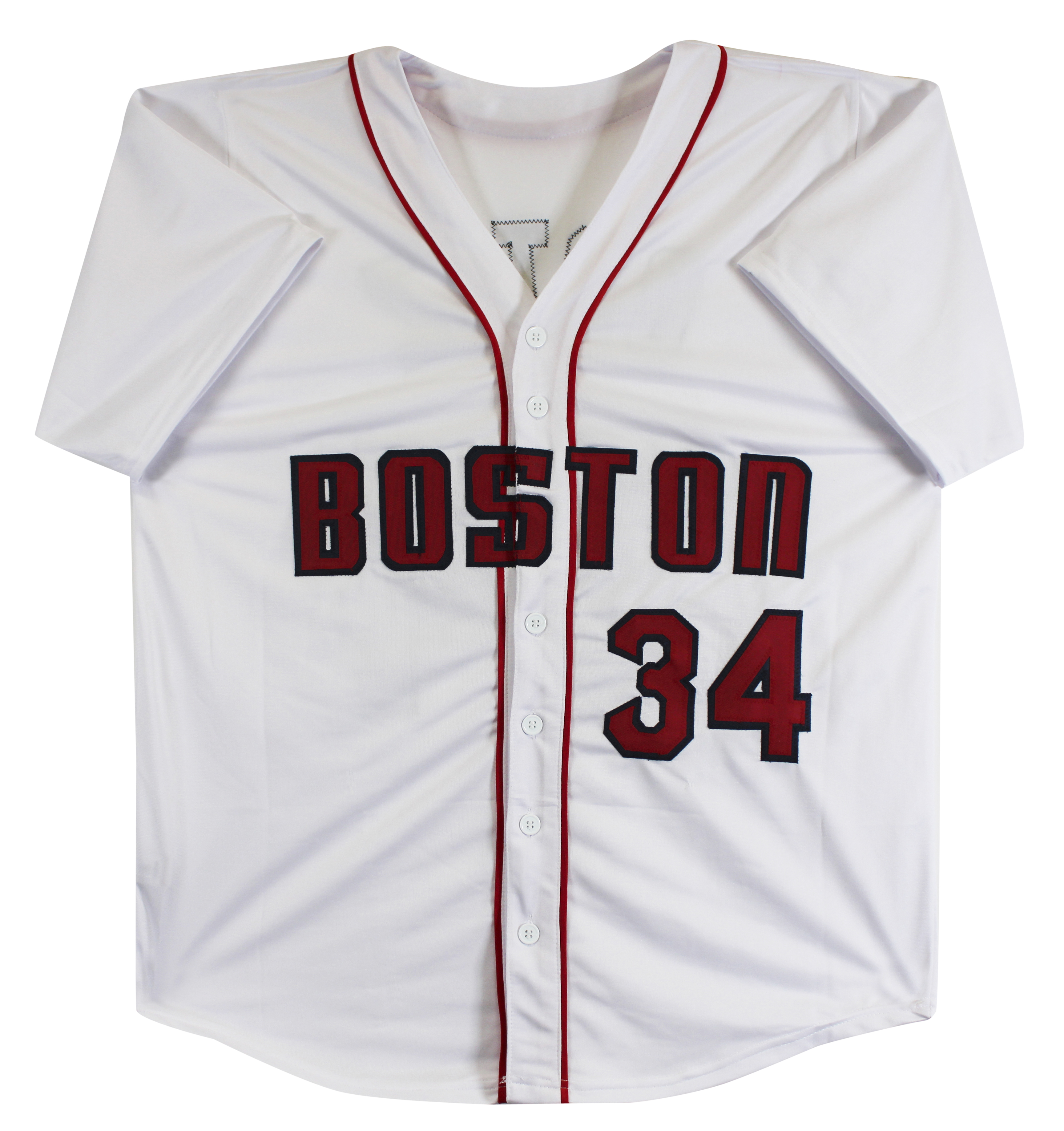 This Autographed White Pro Style Jersey has been Personally Signed by David Ortiz of the Boston Red Sox. This item is 100% Authentic to include a Certificate of Authenticity (COA) / hologram by JSA. We conducted an autograph signing with David Ortiz where multiples of the same item were signed. While the photographs are representative of this item, the size, placement and strength of the signature may vary. Each item is hand signed, therefore, each autograph is unique. This item can be verified through JSA. This is a X-Large sized, non-branded, custom-stitched Jersey.