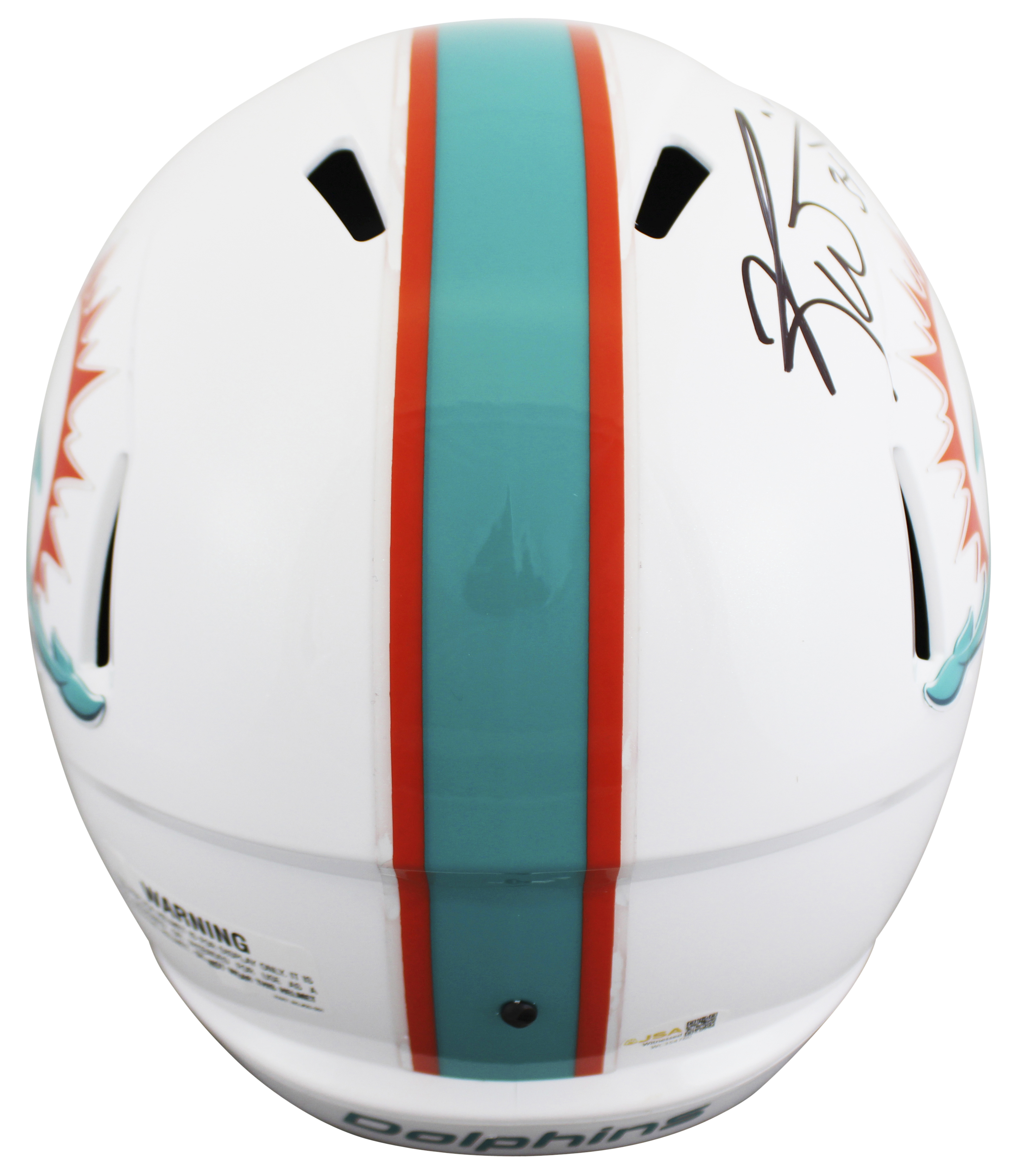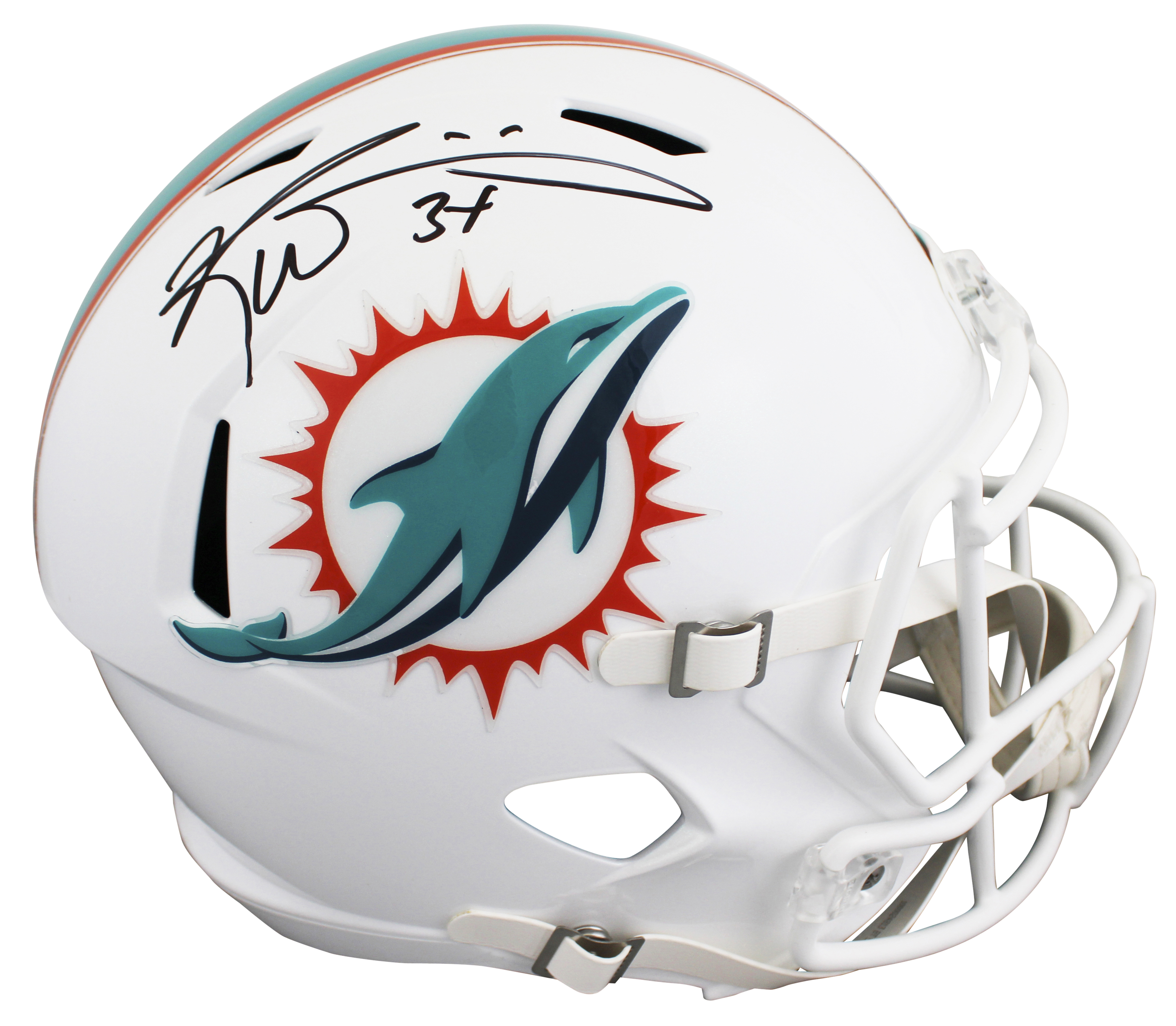 This Autographed Riddell Full Size Speed Rep Helmet has been Personally Signed by Ricky Williams of the Miami Dolphins. This item is 100% Authentic to include a hologram by James Spence Authentication Services. This item will come with an affixed James Spence Authentication Services (JSA) authentication sticker, which includes a scannable QR code to verify authenticity. Please note that JSA no longer provides serial-numbered COA cards with witnessed items, and the attached JSA sticker will serve as the complete authentication for this item. This is a JSA Witnessed Protection Program item which means a JSA representative was present when this item was being signed. We conducted an autograph signing with Ricky Williams where multiples of the same item were signed. While the photographs are representative of this item, the size, placement and strength of the signature may vary. Each item is hand signed, therefore, each autograph is unique. This item can be verified through JSA Witness.
