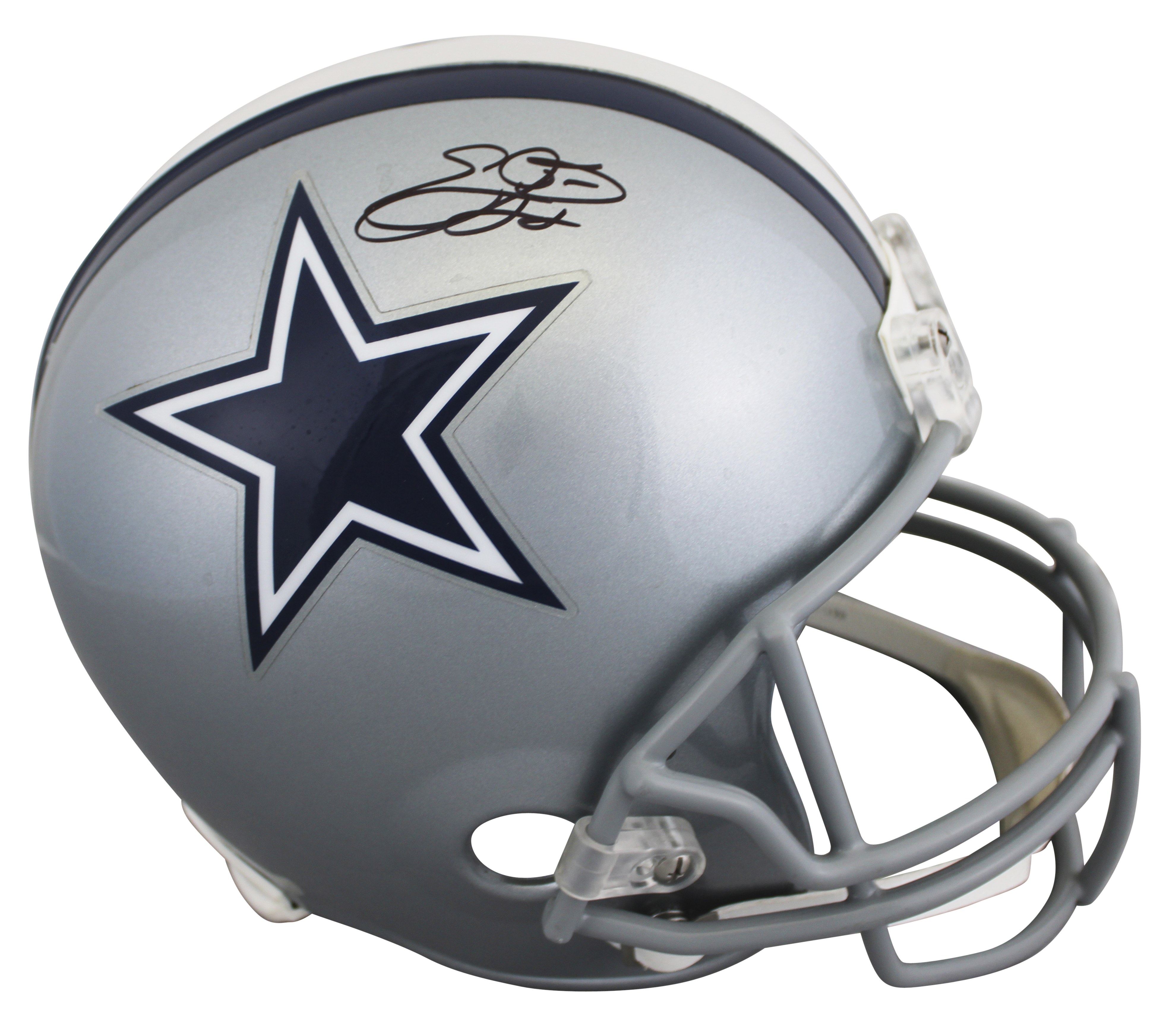 This Autographed VSR4 Riddell Full Size Rep Helmet has been Personally Signed by Emmitt Smith of the Dallas Cowboys. This item is 100% Authentic to include a hologram by Beckett Authentication Services. This item will come with an affixed Beckett Authentication Services (BAS) authentication sticker, which includes a scannable QR code to verify authenticity. Please note that Beckett no longer provides serial-numbered COA cards, and the attached BAS sticker will serve as the complete authentication for this item. This is a BAS Witnessed Protection Program item which means a Beckett Authentication Service representative was present when this item was being signed. The authenticity can be verified on Beckett Authentication Services website. The replica earpads are missing from this helmet. Please refer to photos for item's condition prior to purchase.