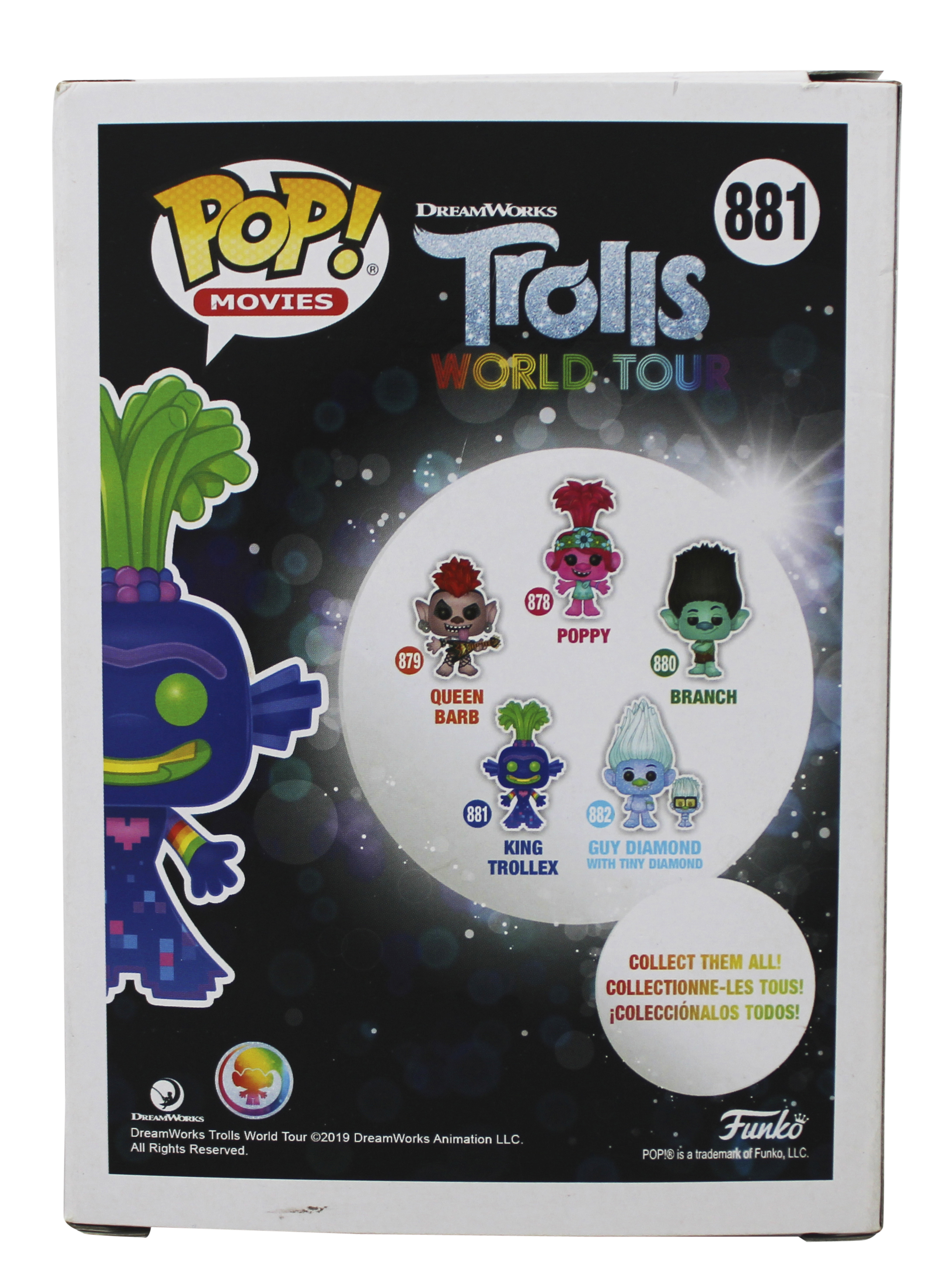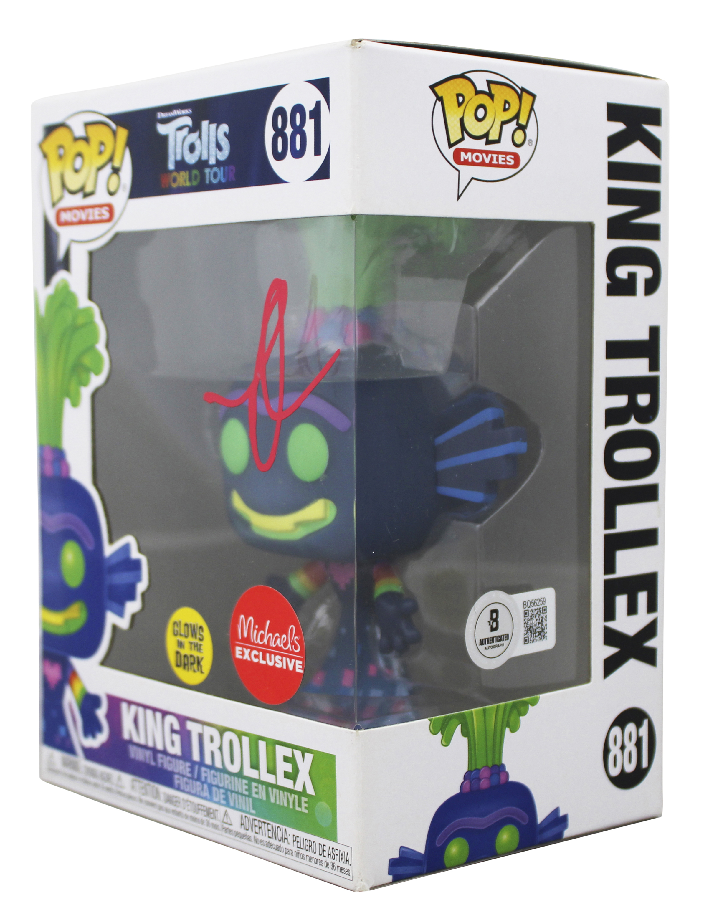 This Autographed King Trollex #881 Funko Pop Vinyl Figure has been Personally Signed by Anthony Ramos of Trolls. This item is 100% Authentic to include a hologram by Beckett Authentication Services. This item will come with an affixed Beckett Authentication Services (BAS) authentication sticker, which includes a scannable QR code to verify authenticity. Please note that Beckett no longer provides serial-numbered COA cards, and the attached BAS sticker will serve as the complete authentication for this item. The authenticity can be verified on Beckett Authentication Services website. This item will ship in a Pop! Protector, please refer to the photos for condition of the item prior to purchase, these are in good condition but would not be considered mint.
