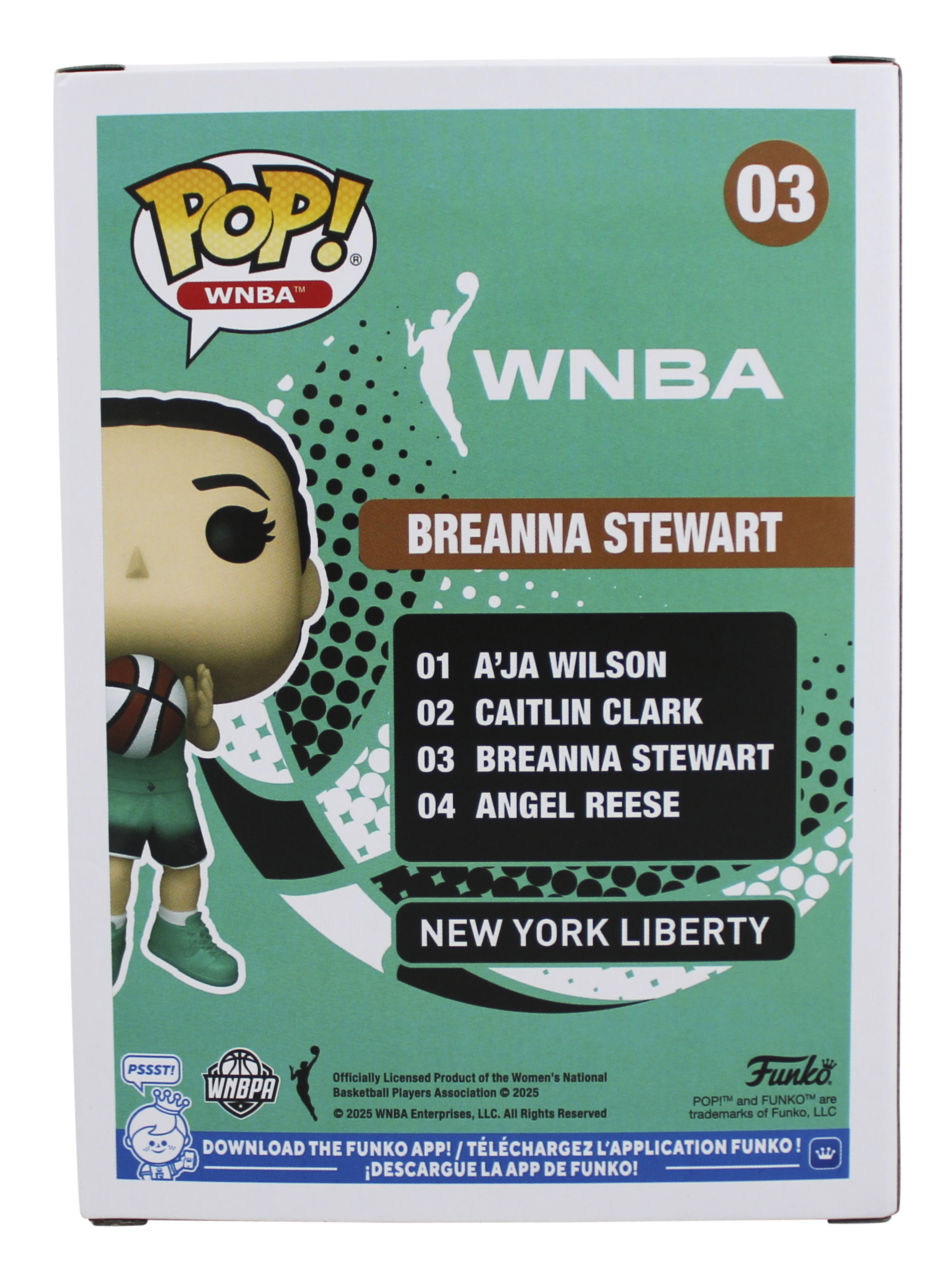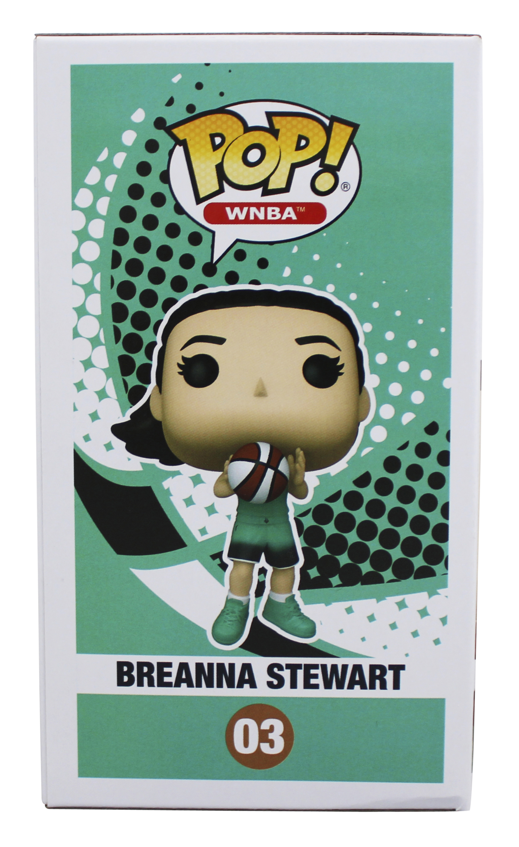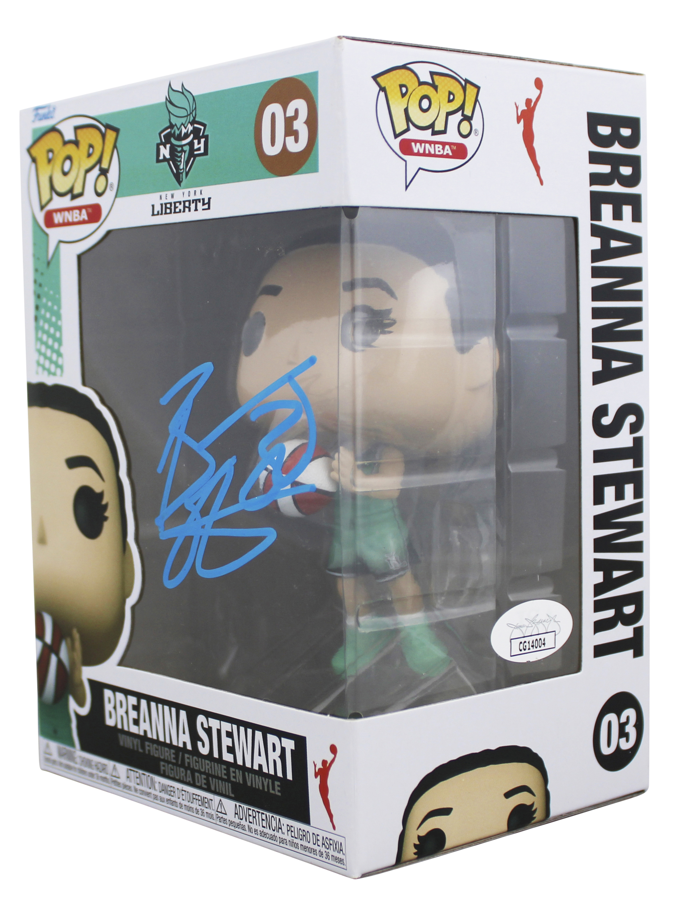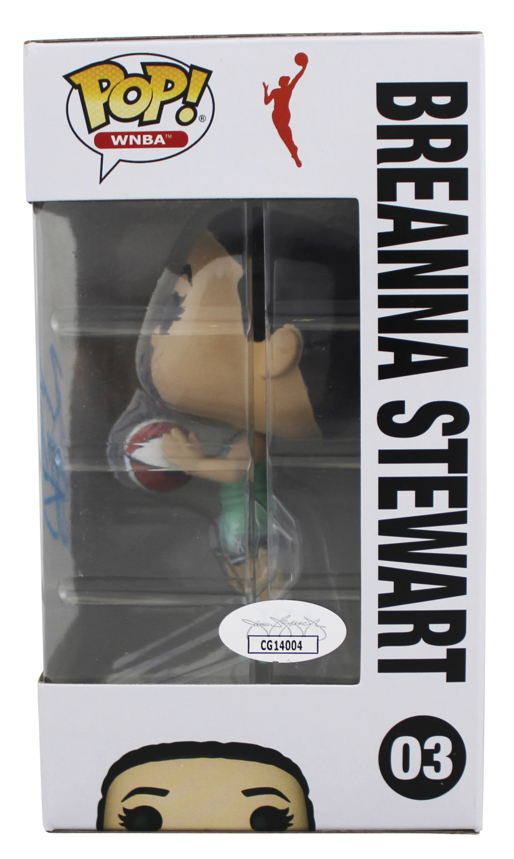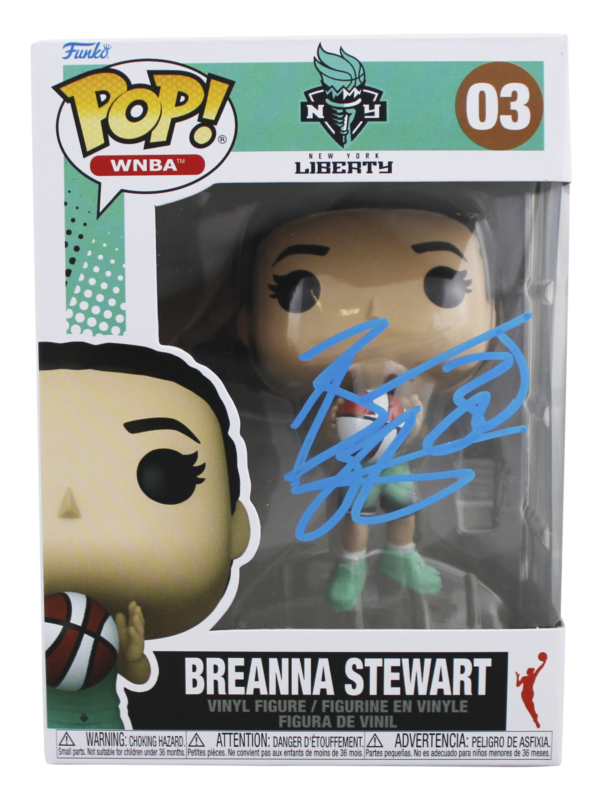 This Autographed Breanna Stewart #03 Funko Pop Vinyl Figure has been Personally Signed by Breanna Stewart of the New York LIberty. This item is 100% Authentic to include a Certificate of Authenticity (COA) / hologram by JSA. The authenticity can be verified on JSA website. This item will ship in a Pop! Protector, please refer to the photos for condition of the item prior to purchase, these are in good condition but would not be considered mint.
