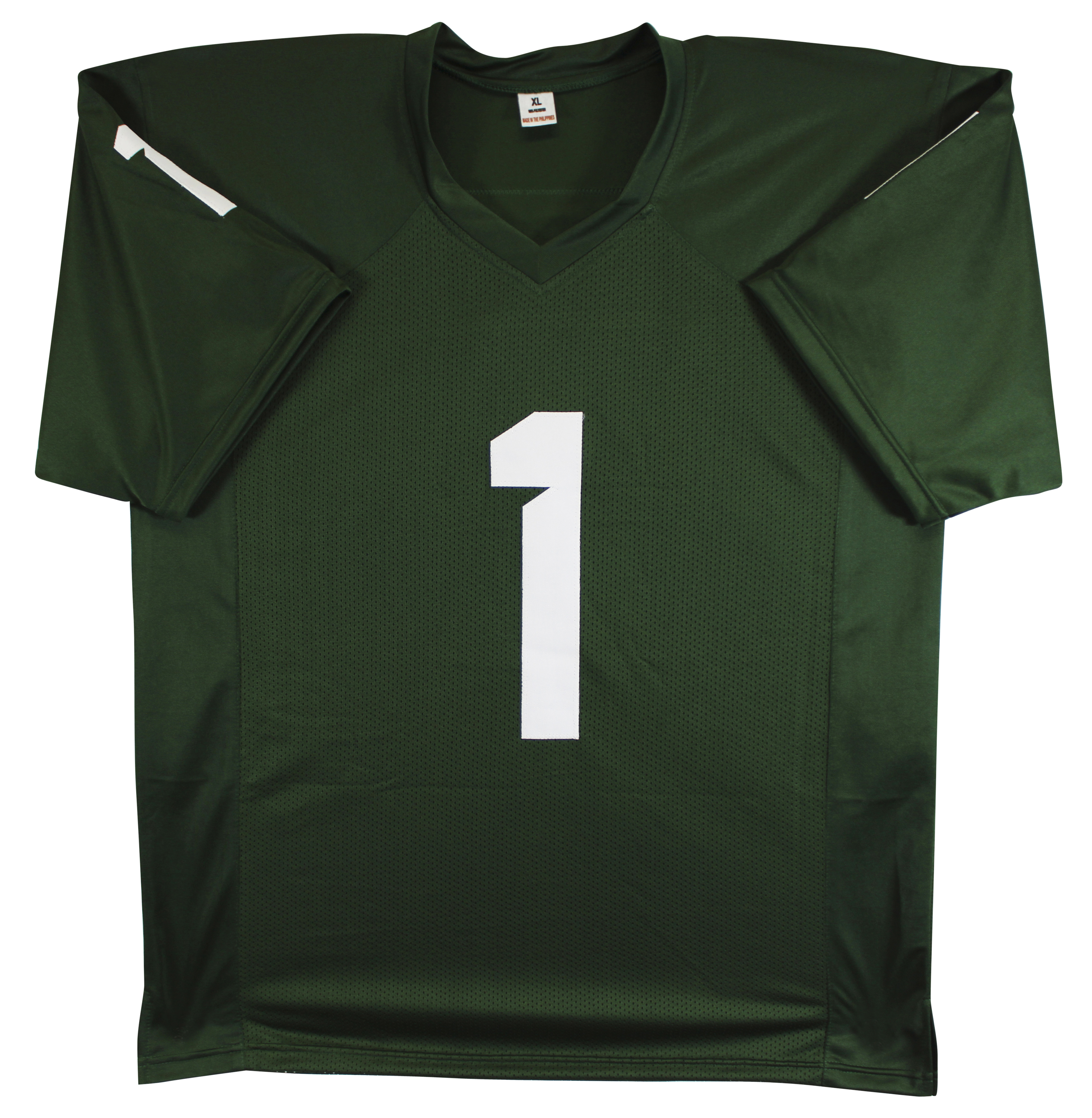 This Autographed Green Pro Style Jersey has been Personally Signed by Jayden Reed of the Michigan State Spartans. This item is 100% Authentic to include a hologram by Beckett Authentication Services. This item will come with an affixed Beckett Authentication Services (BAS) authentication sticker, which includes a scannable QR code to verify authenticity. Please note that Beckett no longer provides serial-numbered COA cards, and the attached BAS sticker will serve as the complete authentication for this item. We conducted an autograph signing with Jayden Reed where multiples of the same item were signed. While the photographs are representative of this item, the size, placement and strength of the signature may vary. Each item is hand signed, therefore, each autograph is unique. This item can be verified through BAS. This is a X-Large sized, non-branded, custom-stitched Jersey.