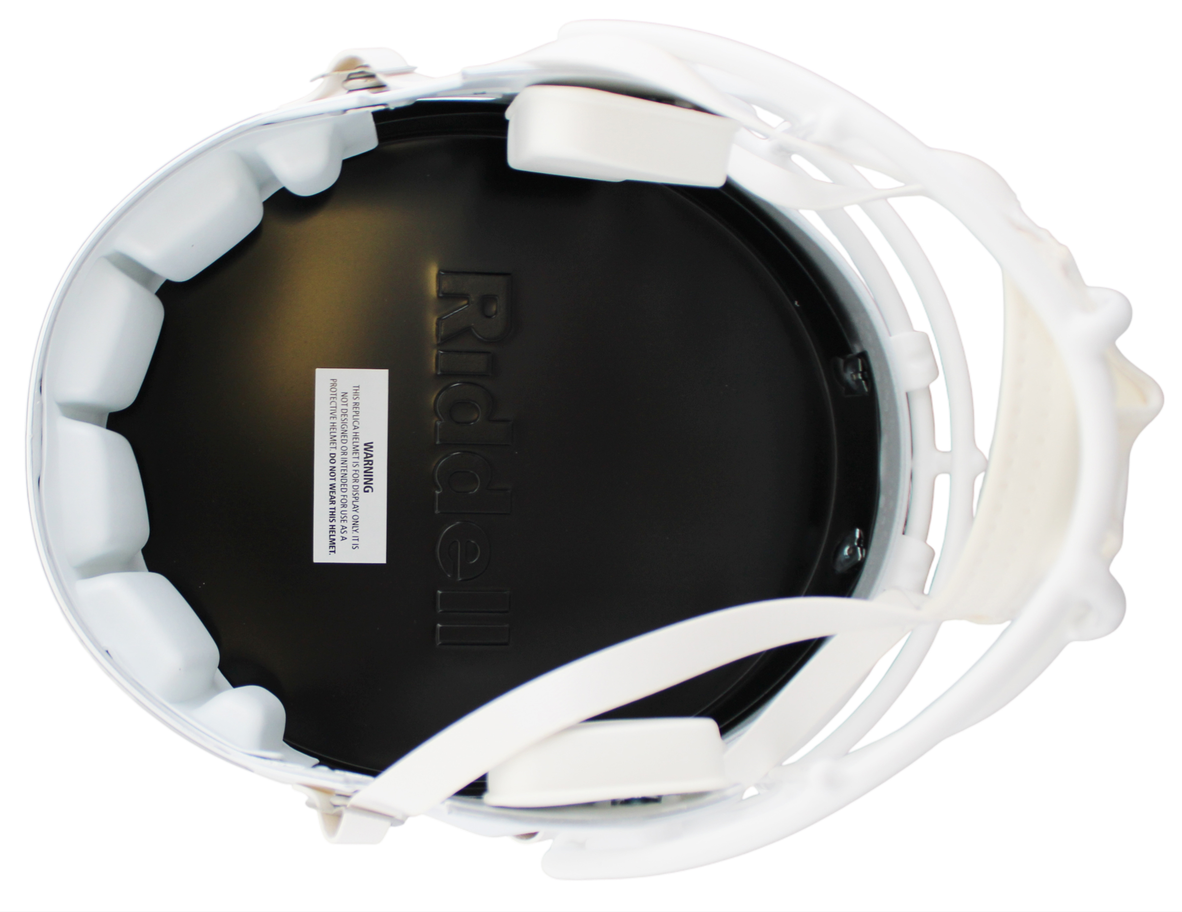 This Autographed W/ Blue Signature Alternate 2024 Salute To Service III Riddell Full Size Speed Rep Helmet W/ Uv Mirrored Back Acrylic Display Case has been Personally Signed by Emmitt Smith of the Dallas Cowboys. This item is 100% Authentic to include a hologram by Beckett Authentication Services. This item will come with an affixed Beckett Authentication Services (BAS) authentication sticker, which includes a scannable QR code to verify authenticity. Please note that Beckett no longer provides serial-numbered COA cards, and the attached BAS sticker will serve as the complete authentication for this item. This is a BAS Witnessed Protection Program item which means a Beckett Authentication Service representative was present when this item was being signed. We conducted an autograph signing with Emmitt Smith where multiples of the same item were signed. While the photographs are representative of this item, the size, placement and strength of the signature may vary. Each item is hand signed, therefore, each autograph is unique. This item can be verified through BAS Witnessed.