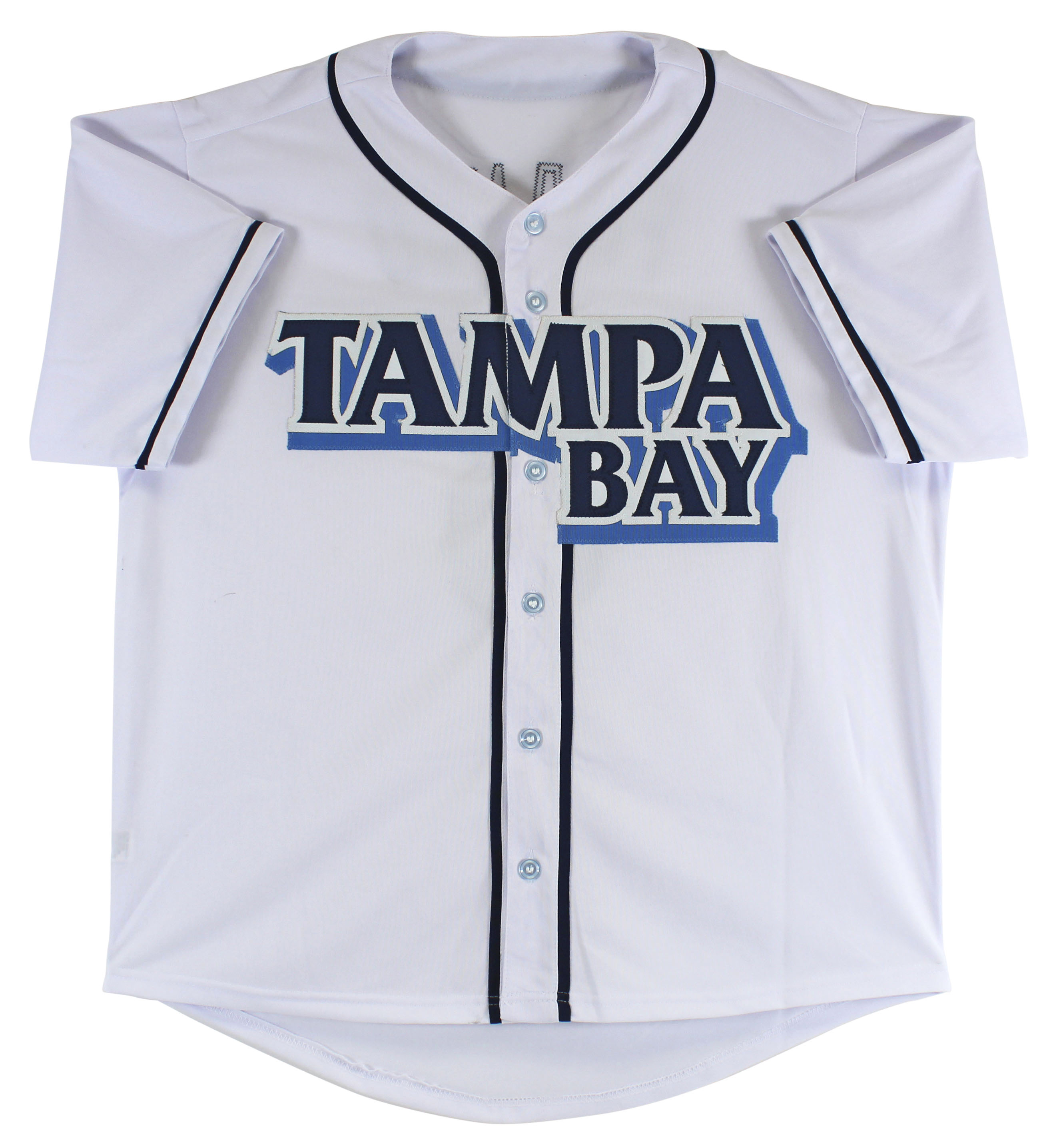 This Autographed White Pro Style Jersey has been Personally Signed by Wander Franco of the Tampa Bay Rays. This item is 100% Authentic to include a Certificate of Authenticity (COA) / hologram by JSA. This is a Signature Debut item, meaning this item was signed prior to the last game of the signers official rookie season. We conducted an autograph signing with Wander Franco where multiples of the same item were signed. While the photographs are representative of this item, the size, placement and strength of the signature may vary. Each item is hand signed, therefore, each autograph is unique. This item can be verified through JSA Signature Debut. This is a X-Large sized, non-branded, custom-stitched Jersey.