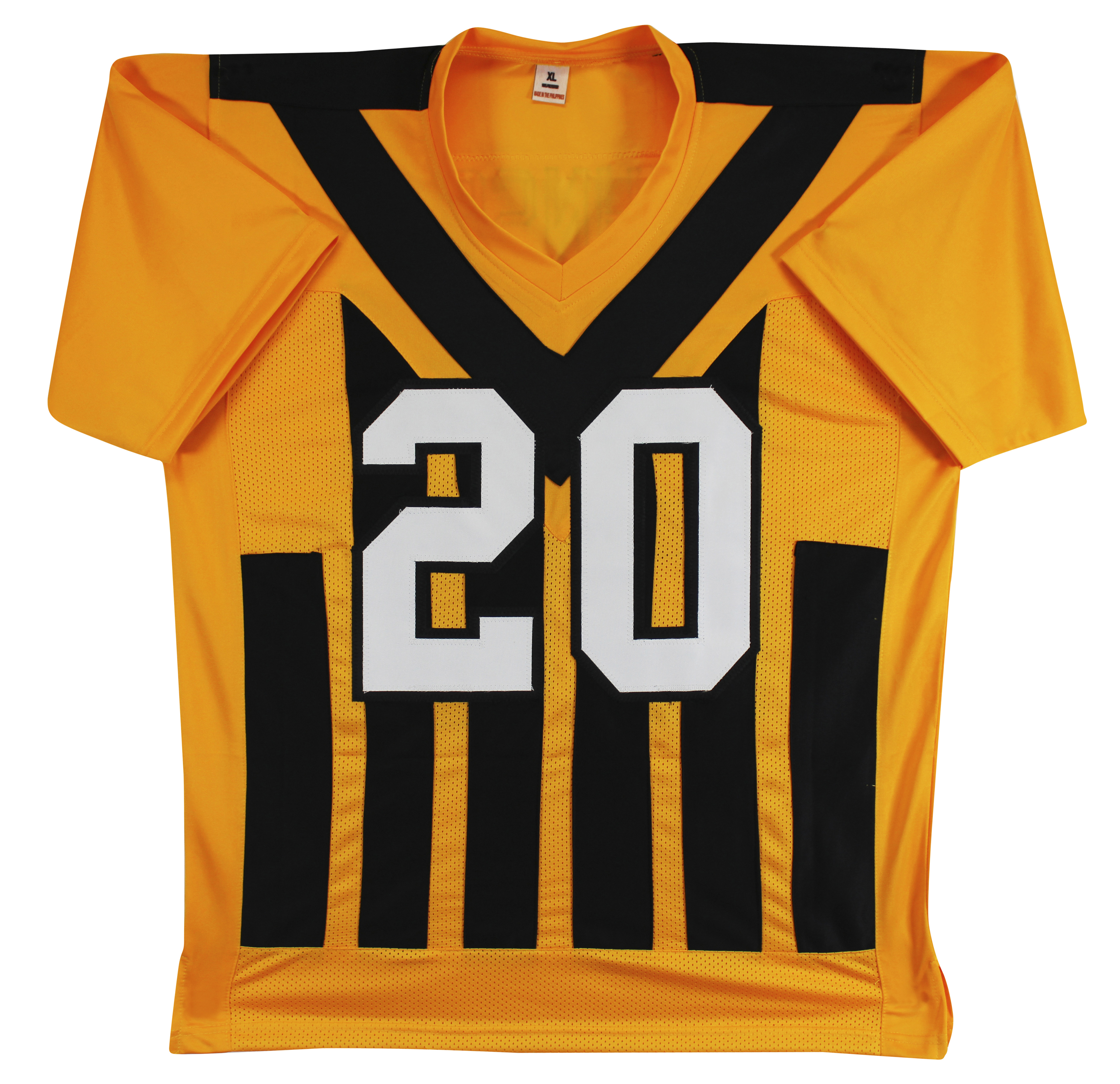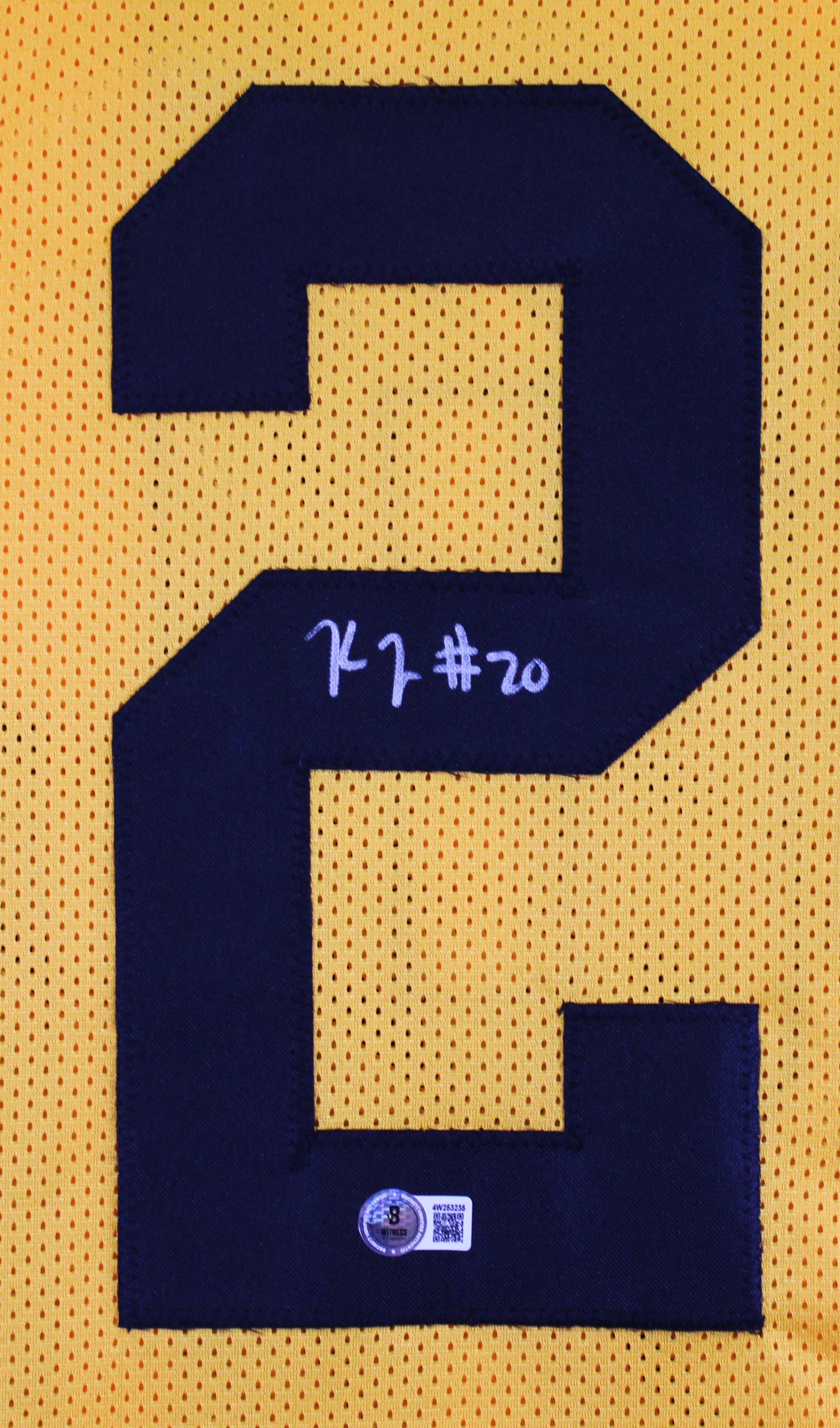 This Autographed Yellow Pro Style Jersey has been Personally Signed by Kaleb Johnson of the Pittsburgh Steelers. This item is 100% Authentic to include a hologram by Beckett Authentication Services. This item will come with an affixed Beckett Authentication Services (BAS) authentication sticker, which includes a scannable QR code to verify authenticity. Please note that Beckett no longer provides serial-numbered COA cards, and the attached BAS sticker will serve as the complete authentication for this item. This is a BAS Witnessed Protection Program item which means a Beckett Authentication Service representative was present when this item was being signed. We conducted an autograph signing with Kaleb Johnson where multiples of the same item were signed. While the photographs are representative of this item, the size, placement and strength of the signature may vary. Each item is hand signed, therefore, each autograph is unique. This item can be verified through BAS Witnessed. This is a X-Large sized, non-branded, custom-stitched Jersey.