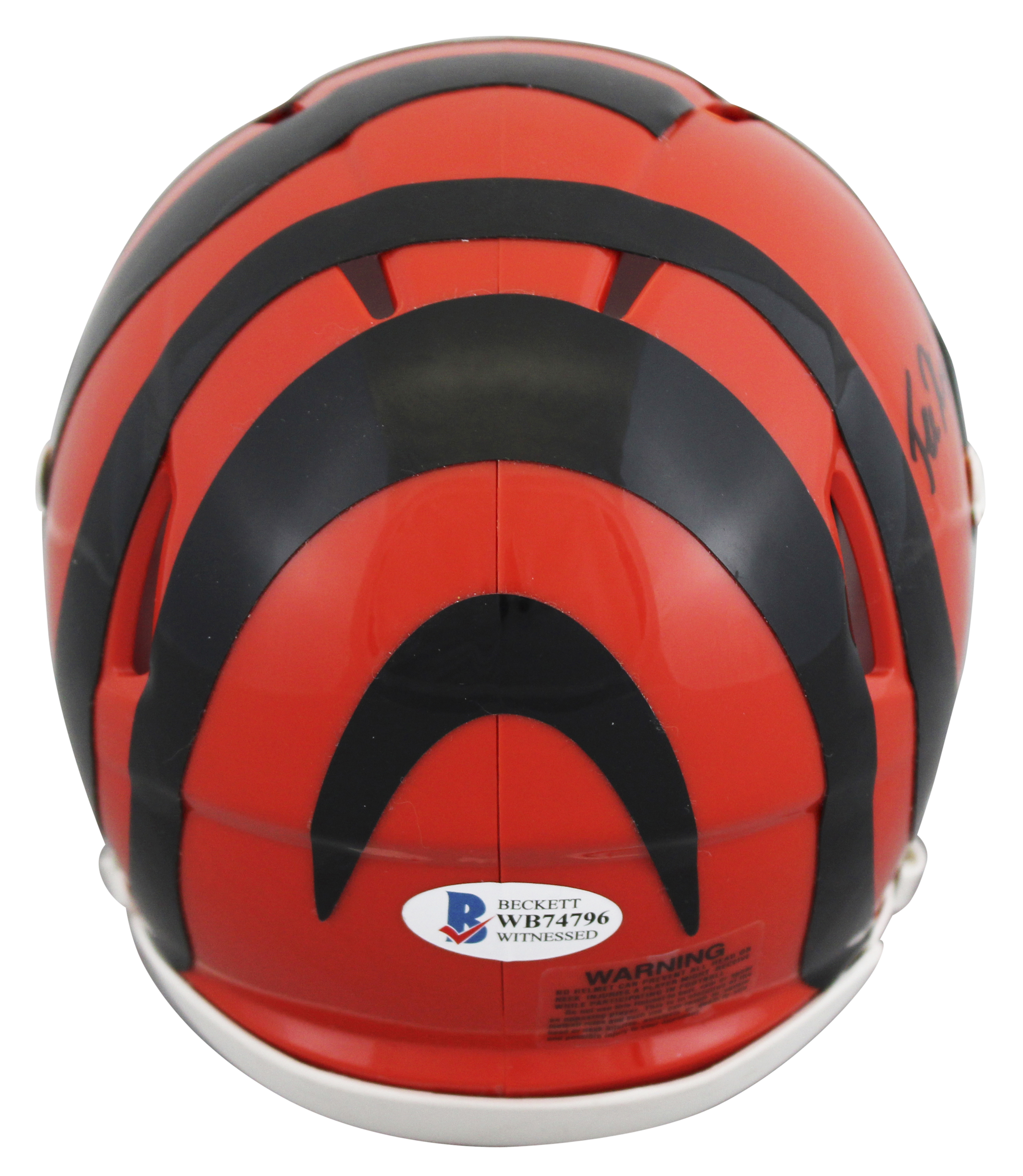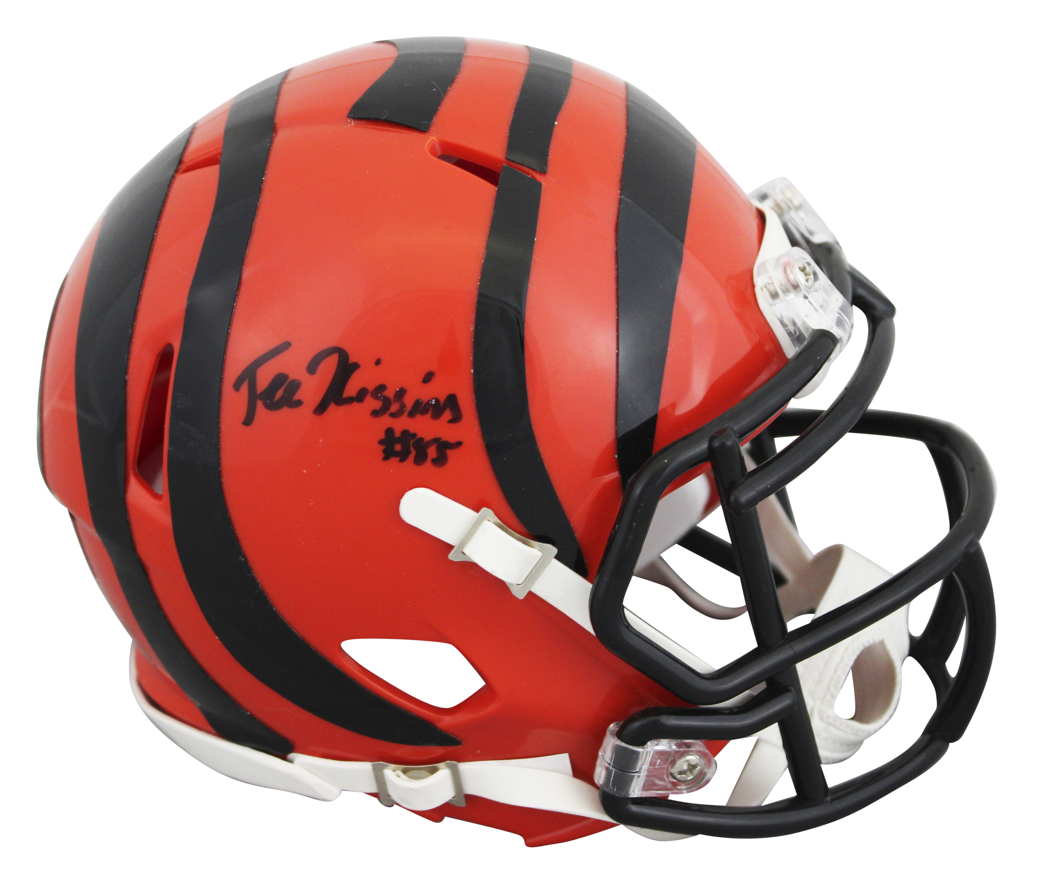 This Autographed Speed Mini Helmet has been Personally Signed by Tee Higgins of the Cincinnati Bengals. This item is 100% Authentic to include a Certificate of Authenticity (COA) / hologram by Beckett Authentication Services. This is a BAS Witnessed Protection Program item which means a Beckett Authentication Service representative was present when this item was being signed. The authenticity can be verified on Beckett Authentication Services website. The signature has minor transferring. Please refer to pictures for item's condition prior to purchase. This mini helmet will not come with its Riddell plastic clamshell.