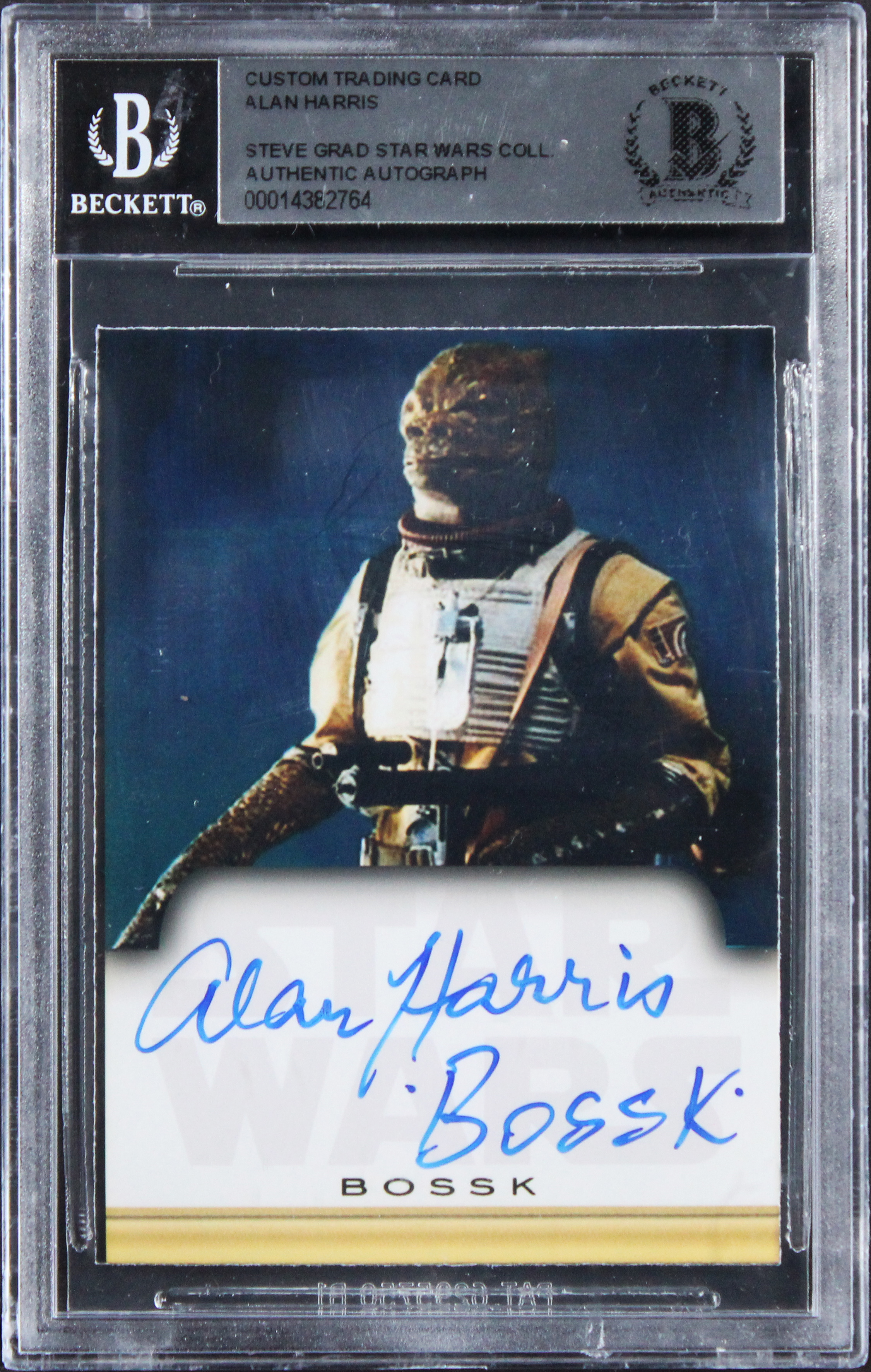 This Autographed Card with the inscription of "Bossk" has been Personally Signed by Alan Harris of Star Wars. This item is 100% Authentic, it comes slabbed and authenticated by Beckett Authentication Services. We have multiples of this same item. While the photographs are representative of this item, the size, placement and strength of the signature may vary. Each item is hand signed, therefore, each autograph is unique.