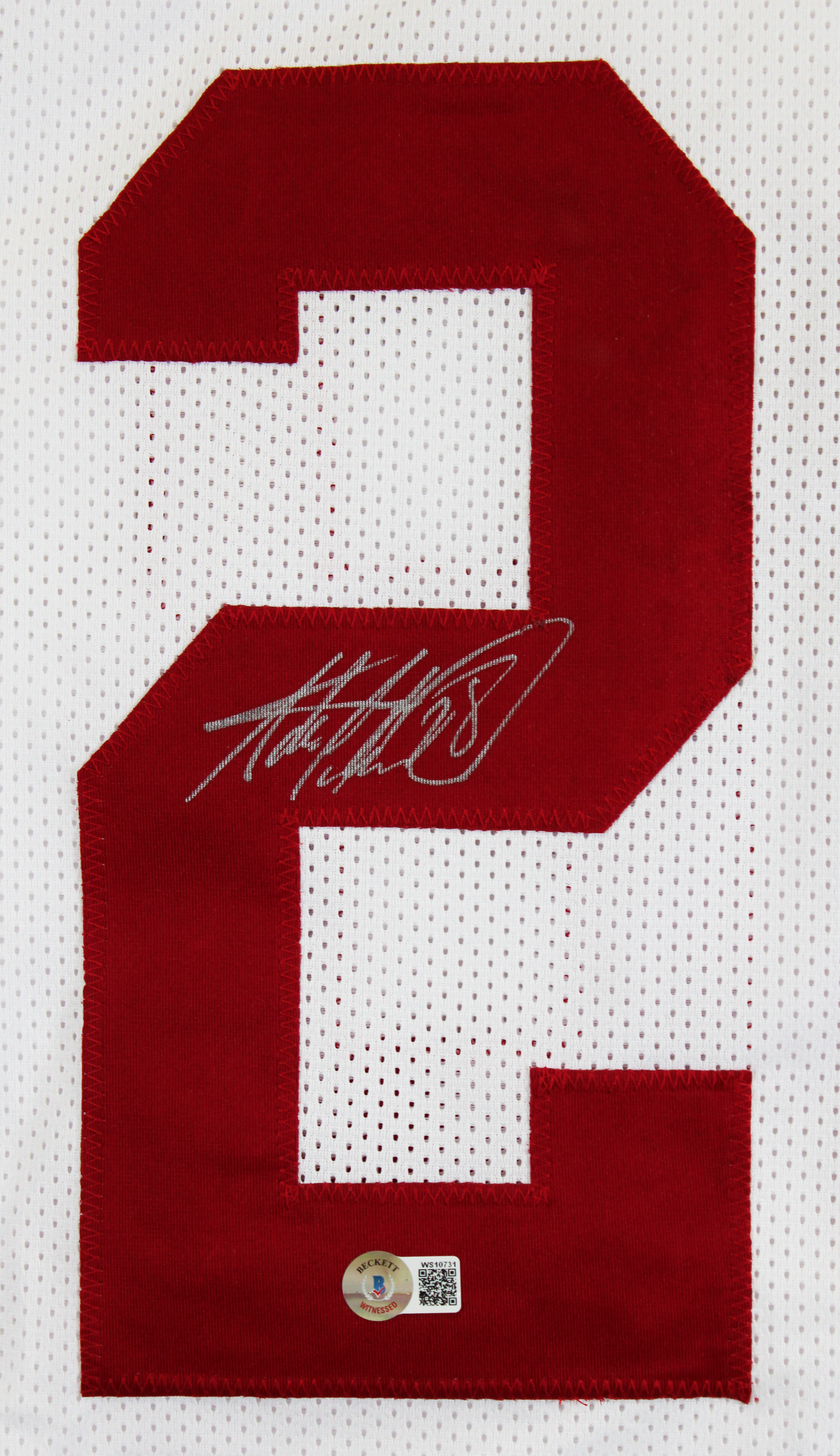 This Autographed White Pro Style Jersey has been Personally Signed by. This item is 100% Authentic to include a hologram by Beckett Authentication Services. This item will come with an affixed Beckett Authentication Services (BAS) authentication sticker, which includes a scannable QR code to verify authenticity. Please note that Beckett no longer provides serial-numbered COA cards, and the attached BAS sticker will serve as the complete authentication for this item. This is a BAS Witnessed Protection Program item which means a Beckett Authentication Service representative was present when this item was being signed. The authenticity can be verified on Beckett Authentication Services website. This is a X-Large sized, non-branded, custom-stitched Jersey. The front of the jersey has some dark stains. Please refer to pictures for item's condition prior to purchase.