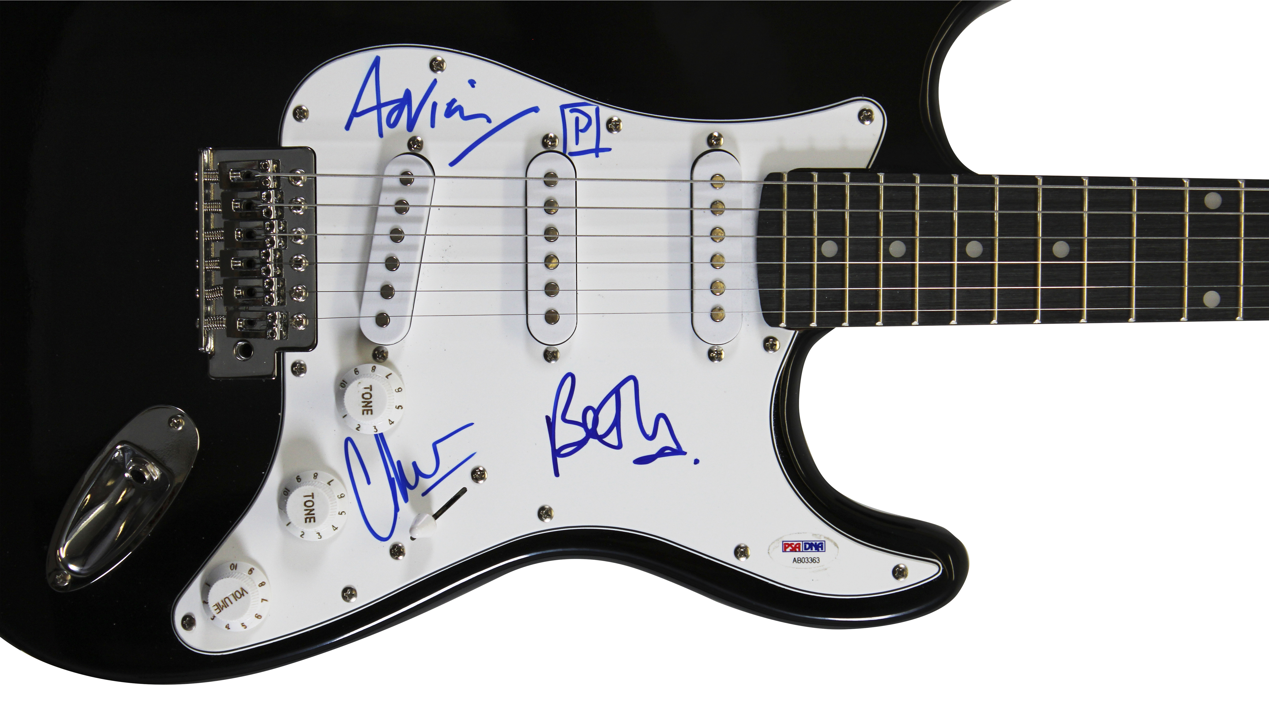 This Autographed Electric Guitar has been Personally Signed by Beth Gibbons, Adrian Utley & Geoff Barrow of Portishead. This item is 100% Authentic and comes with a PSA/DNA Certification Card and a matching numbered Hologram. The authenticity can be verified on Professional Sports Authenticator website.