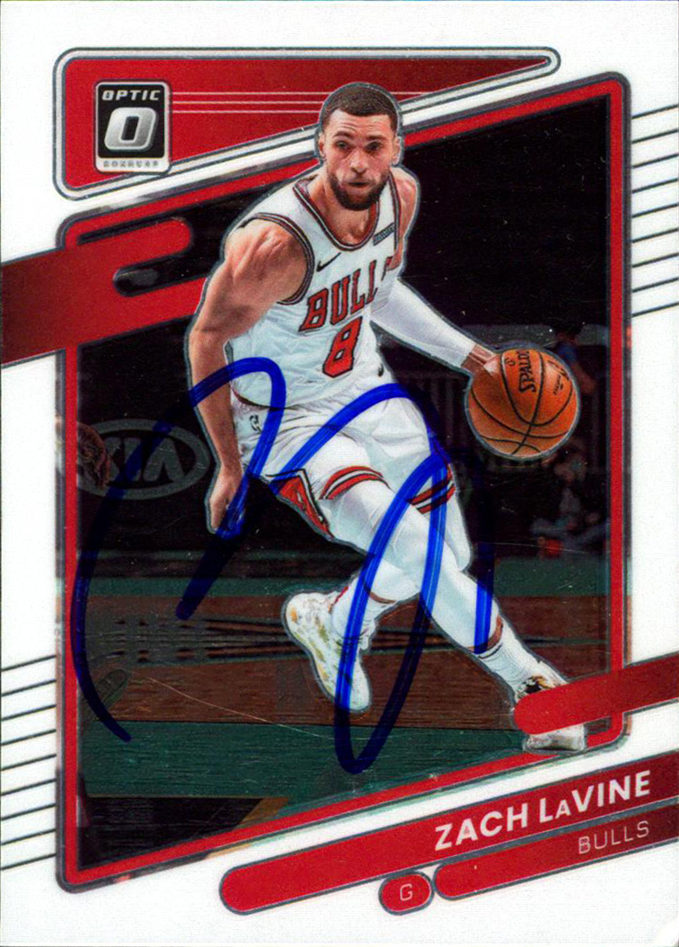 This Autographed 2021 Donruss Optic #105 Card has been Personally Signed by Zach LaVine of the Chicago Bulls. This item is 100% Authentic and comes with a PSA/DNA Certification numbered Hologram. Please note that PSA/DNA no longer provides serial-numbered COA cards, and the attached PSA/DNA sticker will serve as the complete authentication for this item. The authenticity can be verified on Professional Sports Authenticators website.