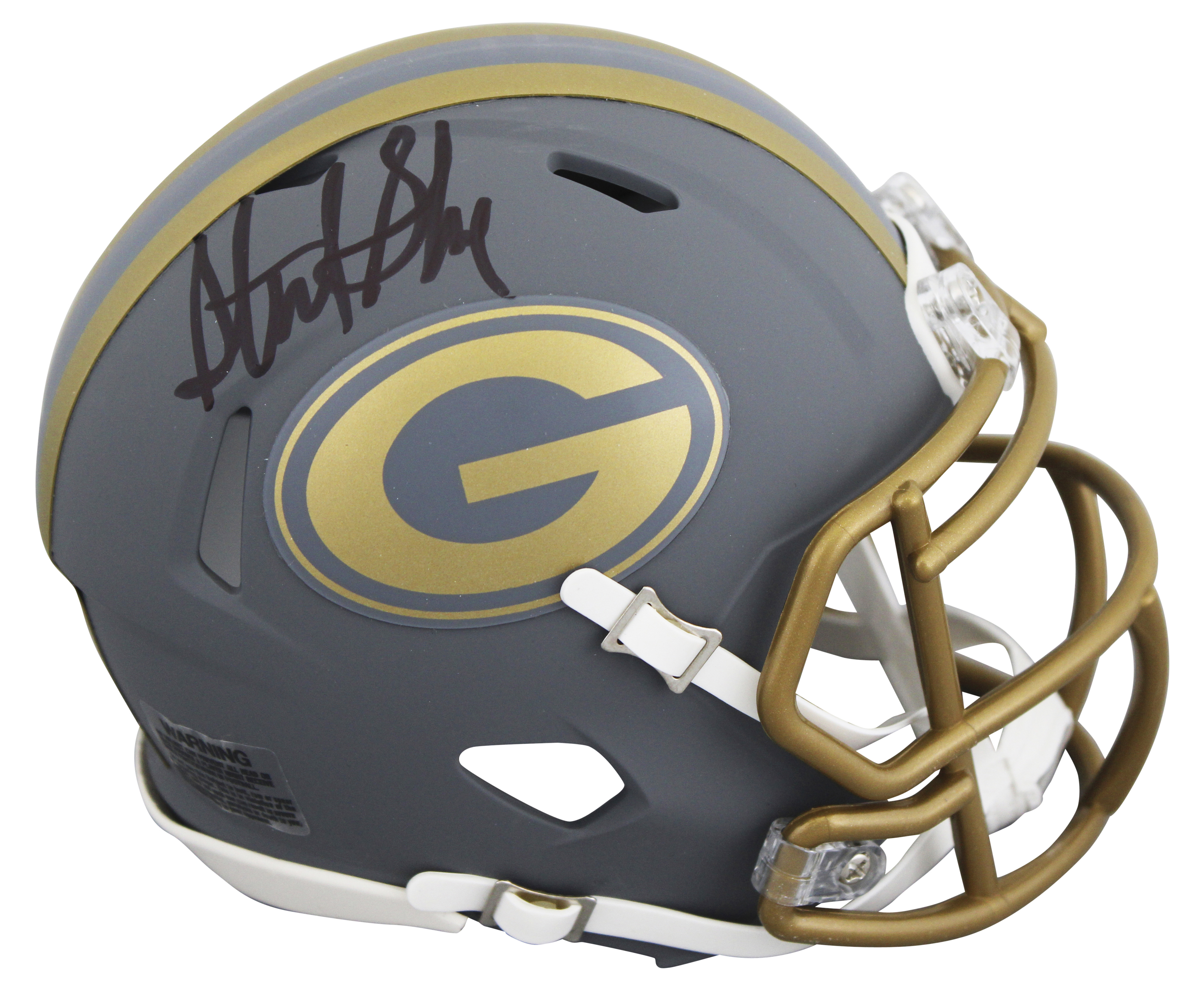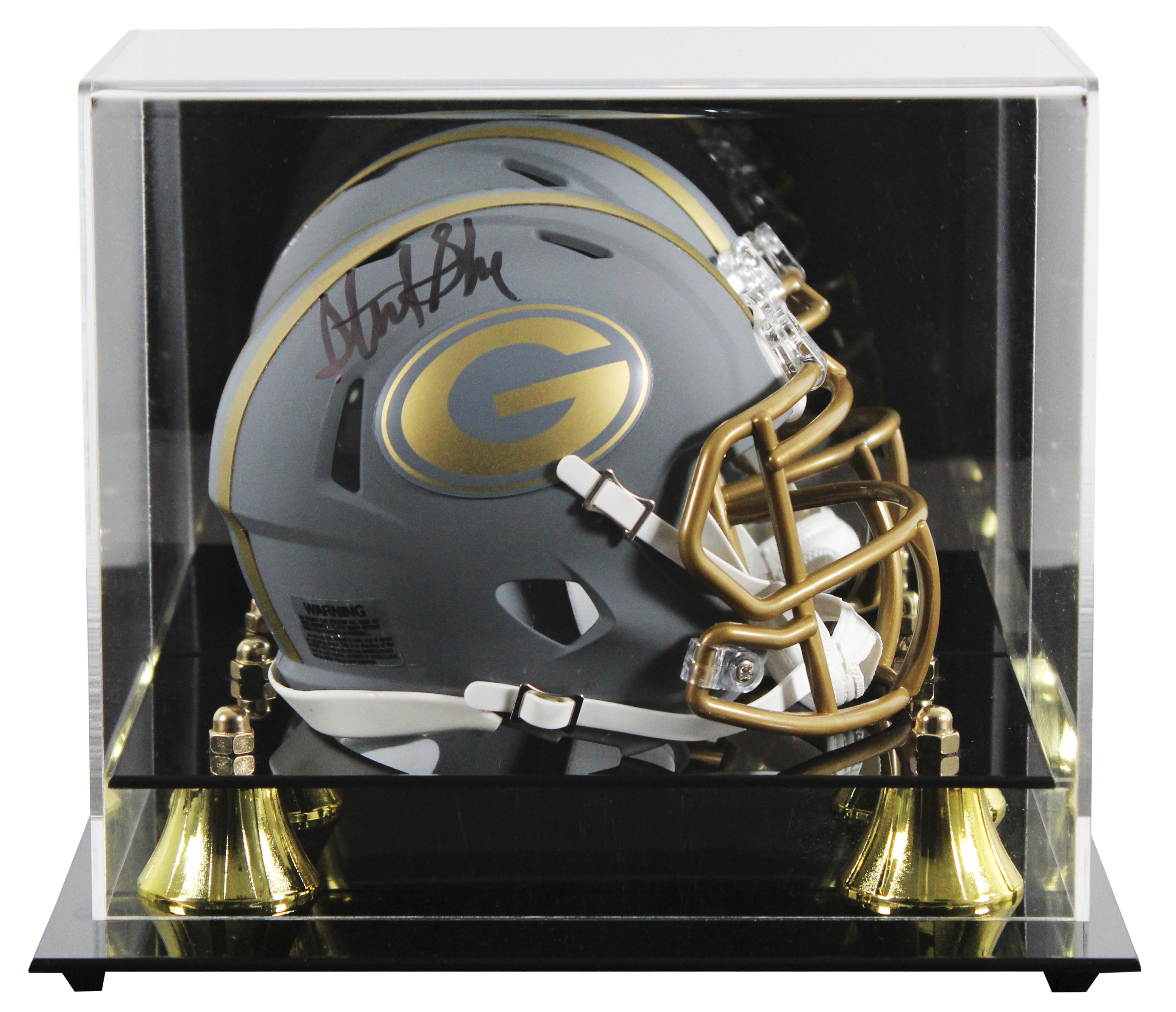 This Autographed Alternate Slate Speed Mini Helmet W/ Uv Mirrored Back Acrylic Display Case has been Personally Signed by Sterling Sharpe of the Green Bay Packers. This item is 100% Authentic to include a hologram by Beckett Authentication Services. This item will come with an affixed Beckett Authentication Services (BAS) authentication sticker, which includes a scannable QR code to verify authenticity. Please note that Beckett no longer provides serial-numbered COA cards, and the attached BAS sticker will serve as the complete authentication for this item. This is a BAS Witnessed Protection Program item which means a Beckett Authentication Service representative was present when this item was being signed. We conducted an autograph signing with Sterling Sharpe where multiples of the same item were signed. While the photographs are representative of this item, the size, placement and strength of the signature may vary. Each item is hand signed, therefore, each autograph is unique. This item can be verified through BAS Witnessed.