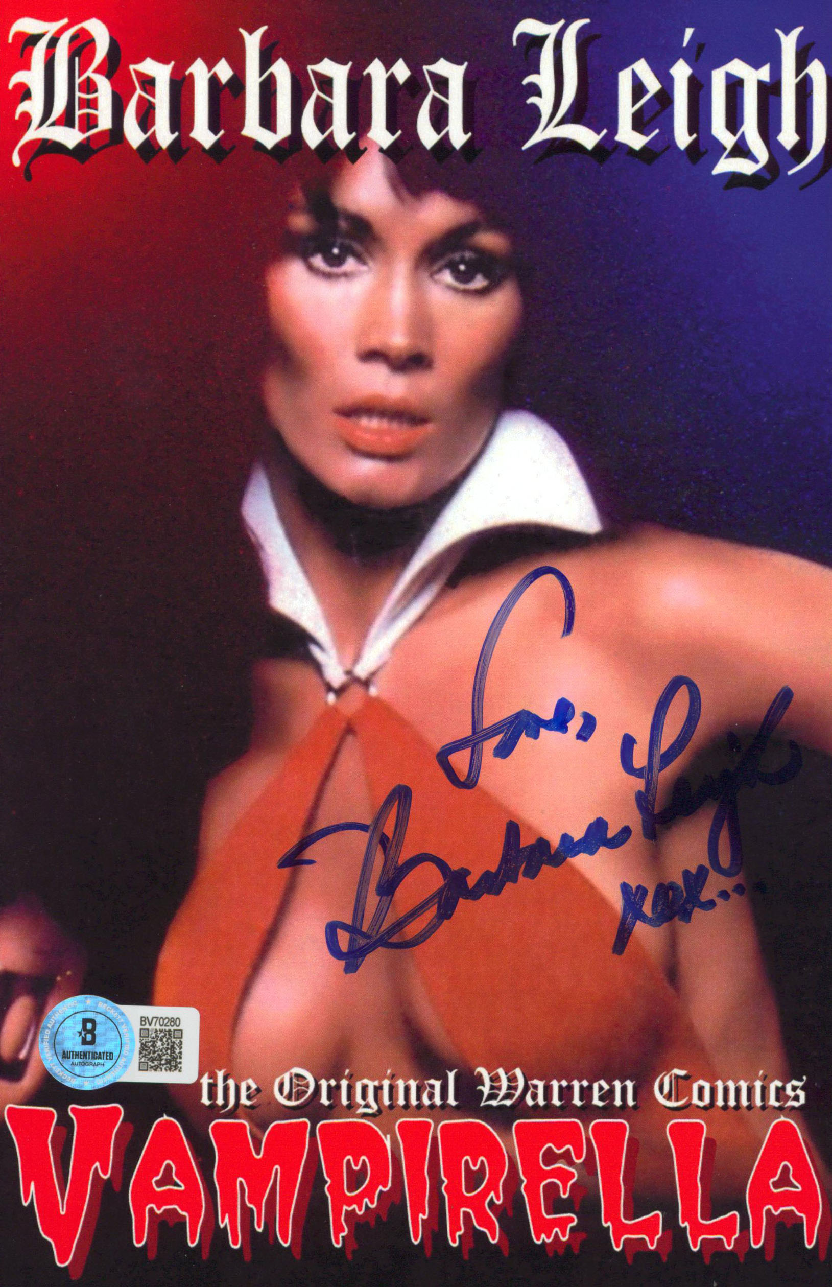 This Autographed 5.5x8.5 Promotional Card with the inscription of "Love" has been Personally Signed by Barbara Leigh of Vampirella. This item is 100% Authentic to include a hologram by Beckett Authentication Services. This item will come with an affixed Beckett Authentication Services (BAS) authentication sticker, which includes a scannable QR code to verify authenticity. Please note that Beckett no longer provides serial-numbered COA cards, and the attached BAS sticker will serve as the complete authentication for this item. The authenticity can be verified on Beckett Authentication Services website.