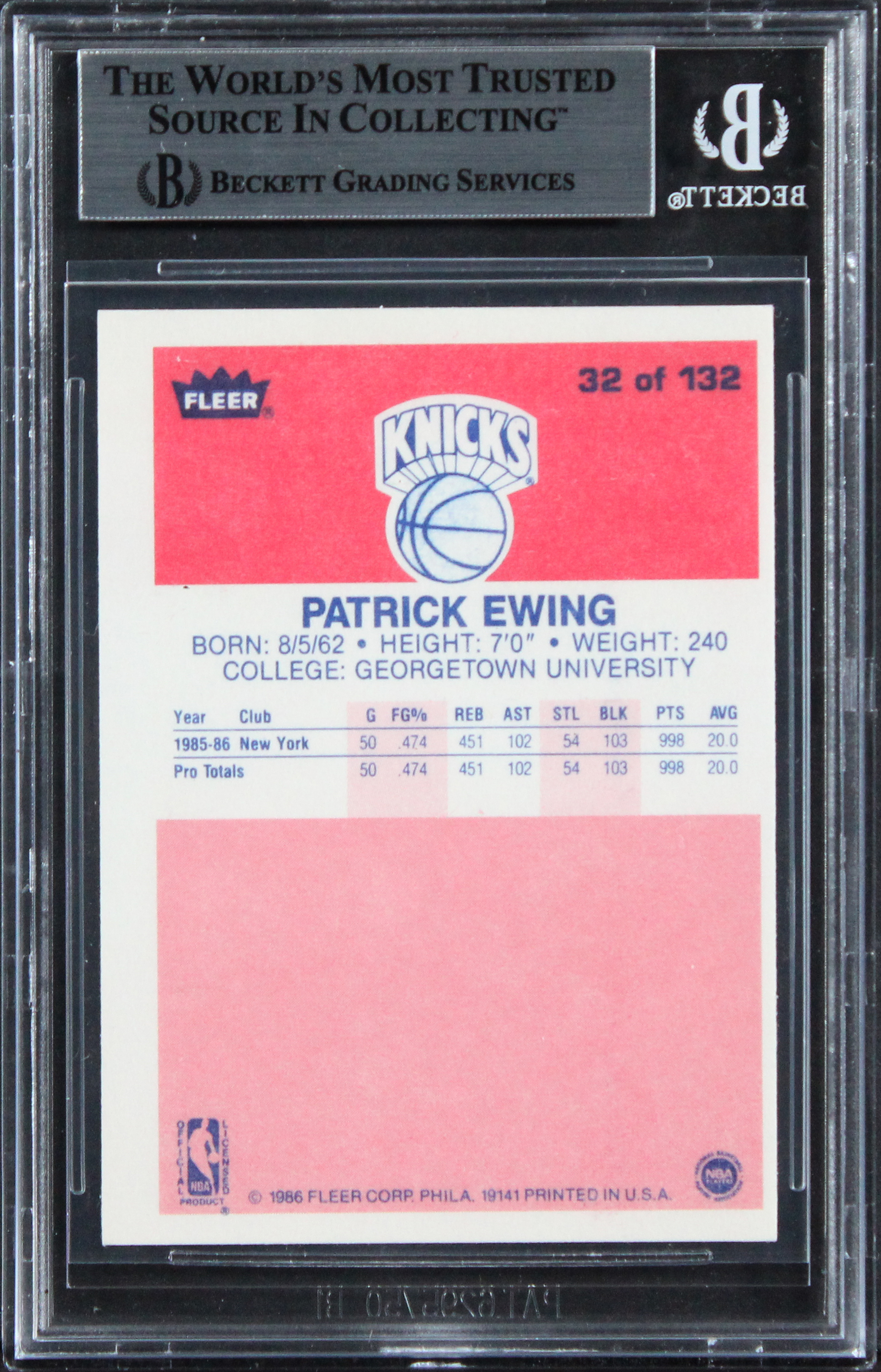 Knicks Patrick Ewing "HOF 08" Authentic Signed 1986 Fleer #32 Card BAS Slabbed
