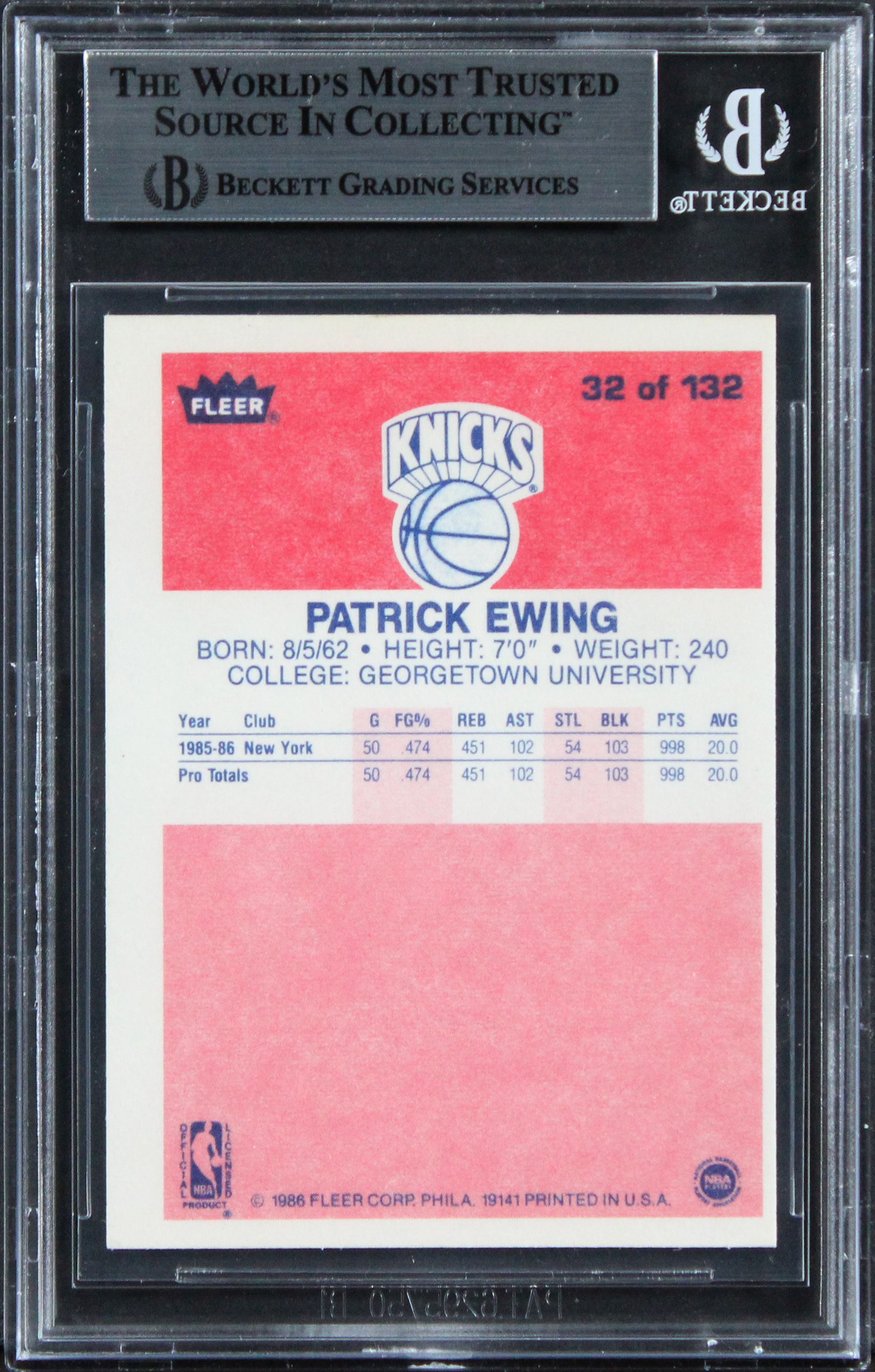 Knicks Patrick Ewing HOF 08 Authentic Signed 1986 Fleer #32 Card BAS Slabbed 2