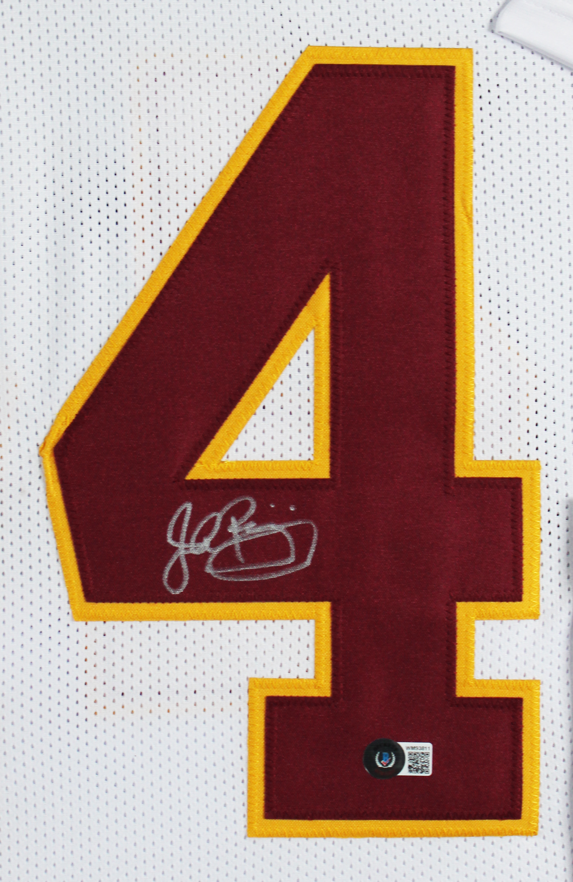 This Autographed White Pro Style Framed Jersey has been Personally Signed by John Riggins of the Washington Commanders. This item is 100% Authentic to include a hologram by Beckett Authentication Services. This item will come with an affixed Beckett Authentication Services (BAS) authentication sticker, which includes a scannable QR code to verify authenticity. Please note that Beckett no longer provides serial-numbered COA cards, and the attached BAS sticker will serve as the complete authentication for this item. This is a BAS Witnessed Protection Program item which means a Beckett Authentication Service representative was present when this item was being signed. We conducted an autograph signing with John Riggins where multiples of the same item were signed. While the photographs are representative of this item, the size, placement and strength of the signature may vary. Each item is hand signed, therefore, each autograph is unique. This item can be verified through BAS Witnessed. This item has been professionally framed to overall dimensions of approximately 32 x 37 inches. This is a X-Large sized, non-branded, custom-stitched Framed Jersey. This jersey will be framed to order, it will take approximately 4-5 business days from purchase date for it to ship.