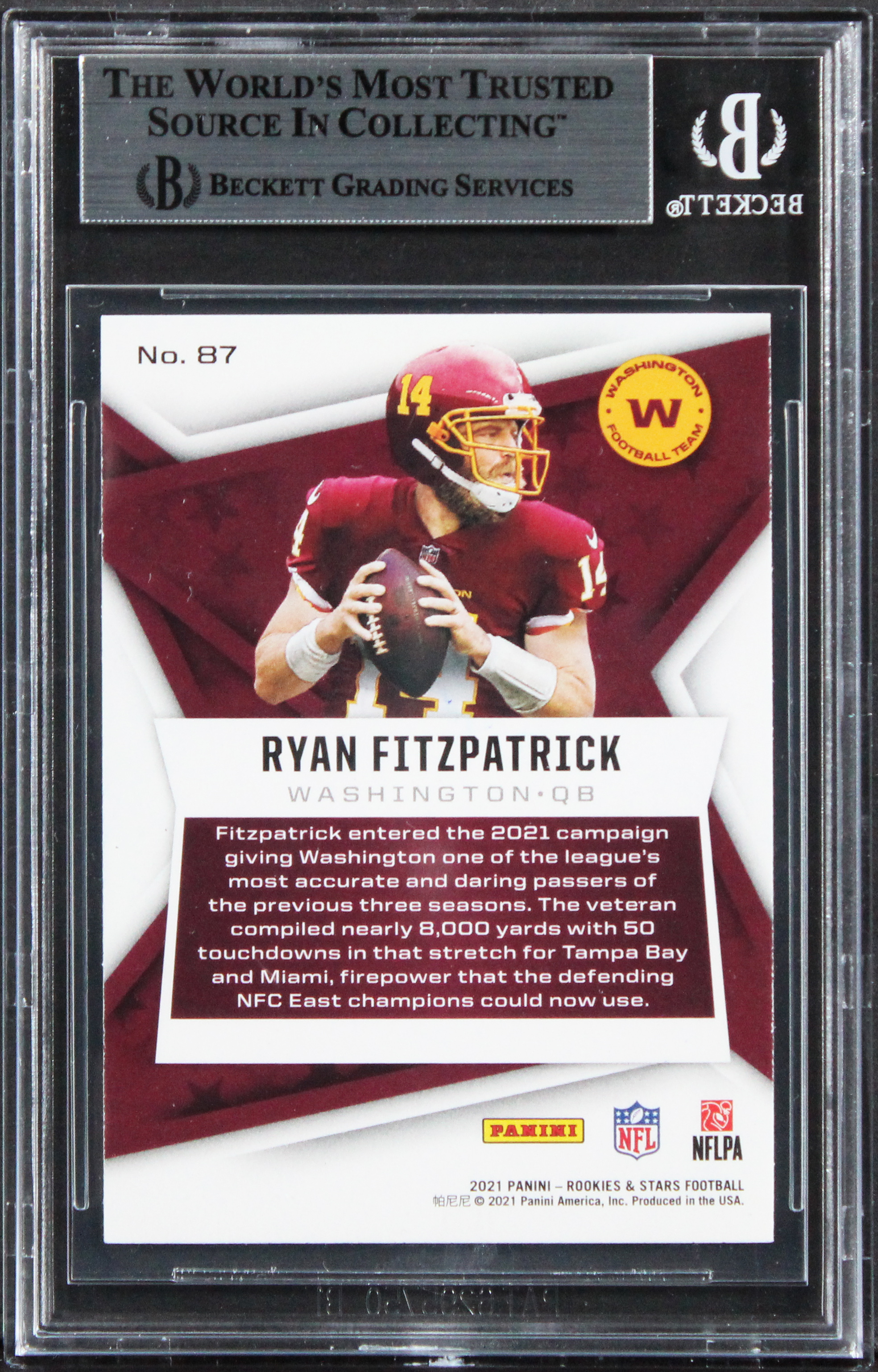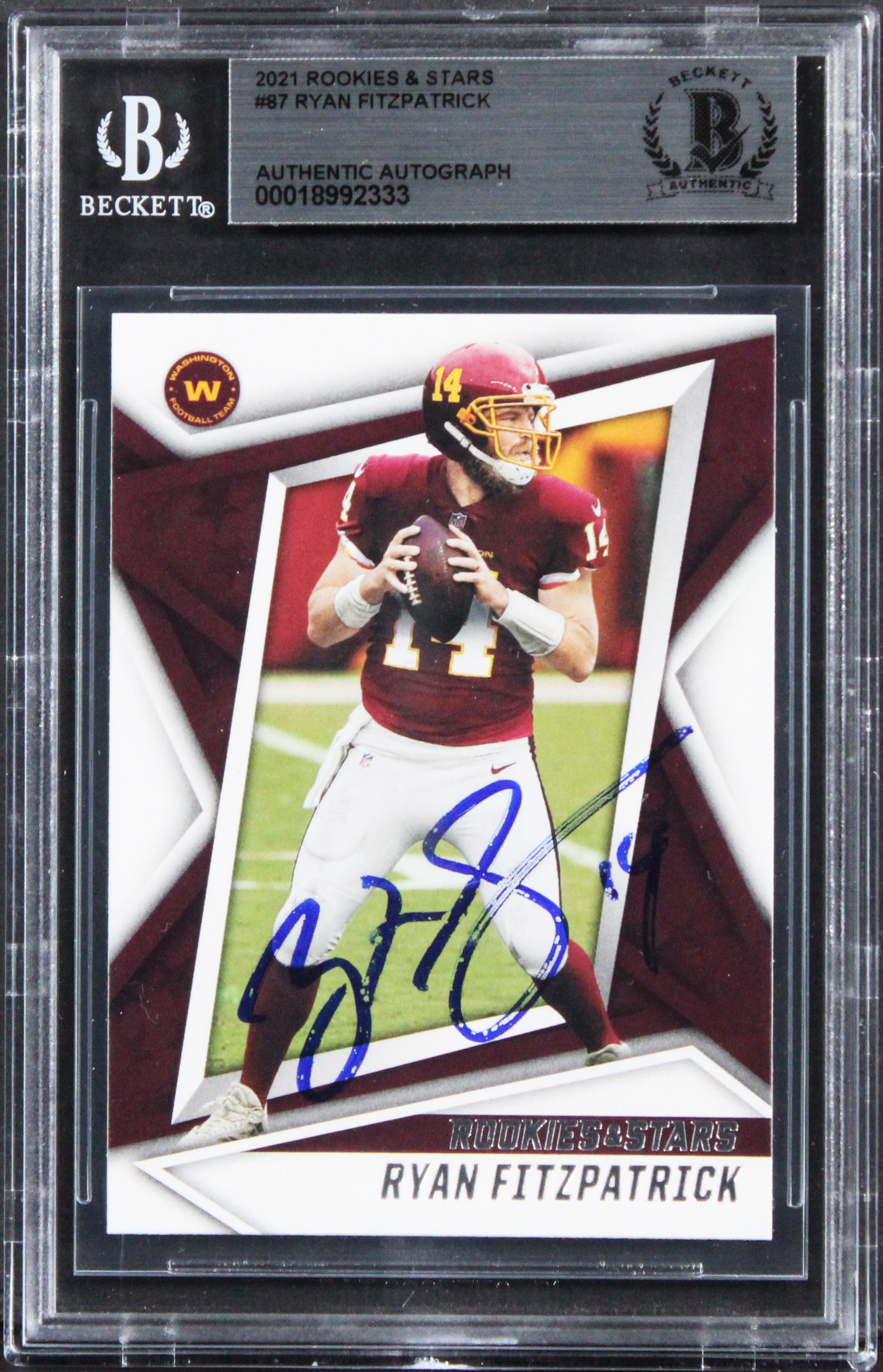 Commanders Ryan Fitzpatrick Signed 2021 Rookies & Stars #87 Card BAS Slabbed