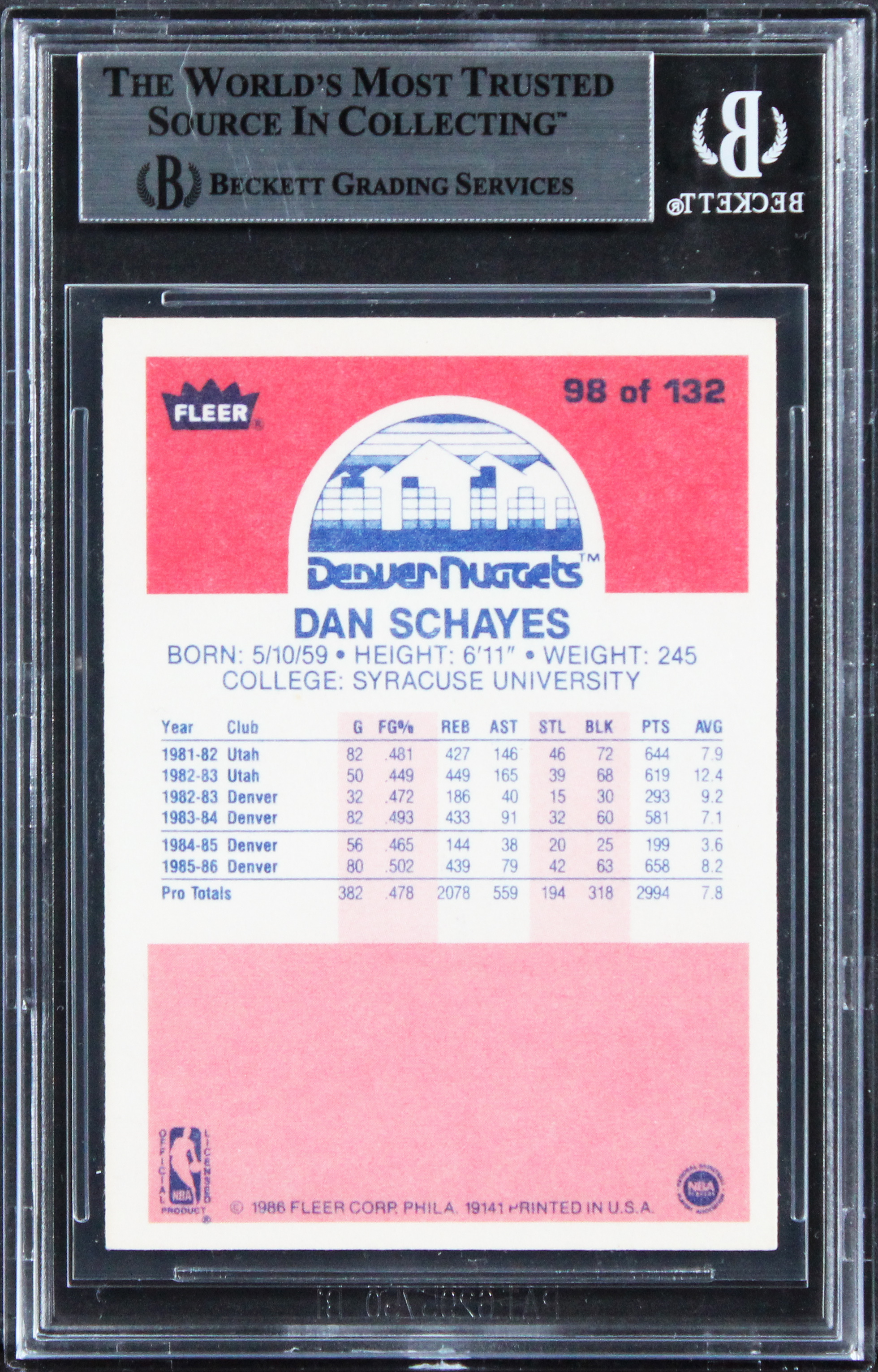 Nuggets Dan Schayes Authentic 1986 Fleer #98 Card Autographed BAS Slabbed
