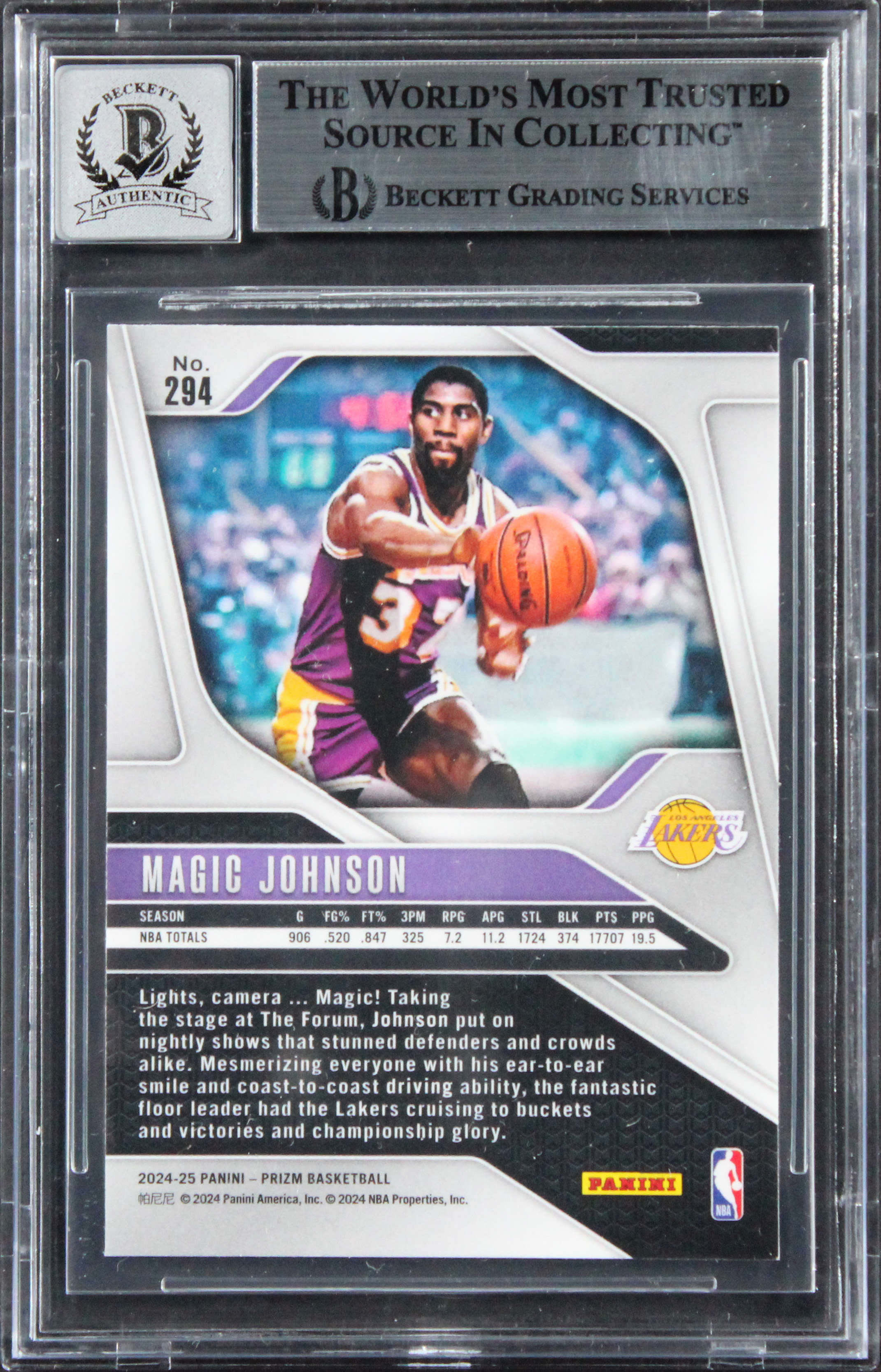 Lakers Magic Johnson Signed 2024 Panini Prizm #294 Card Auto 10! BAS Slabbed