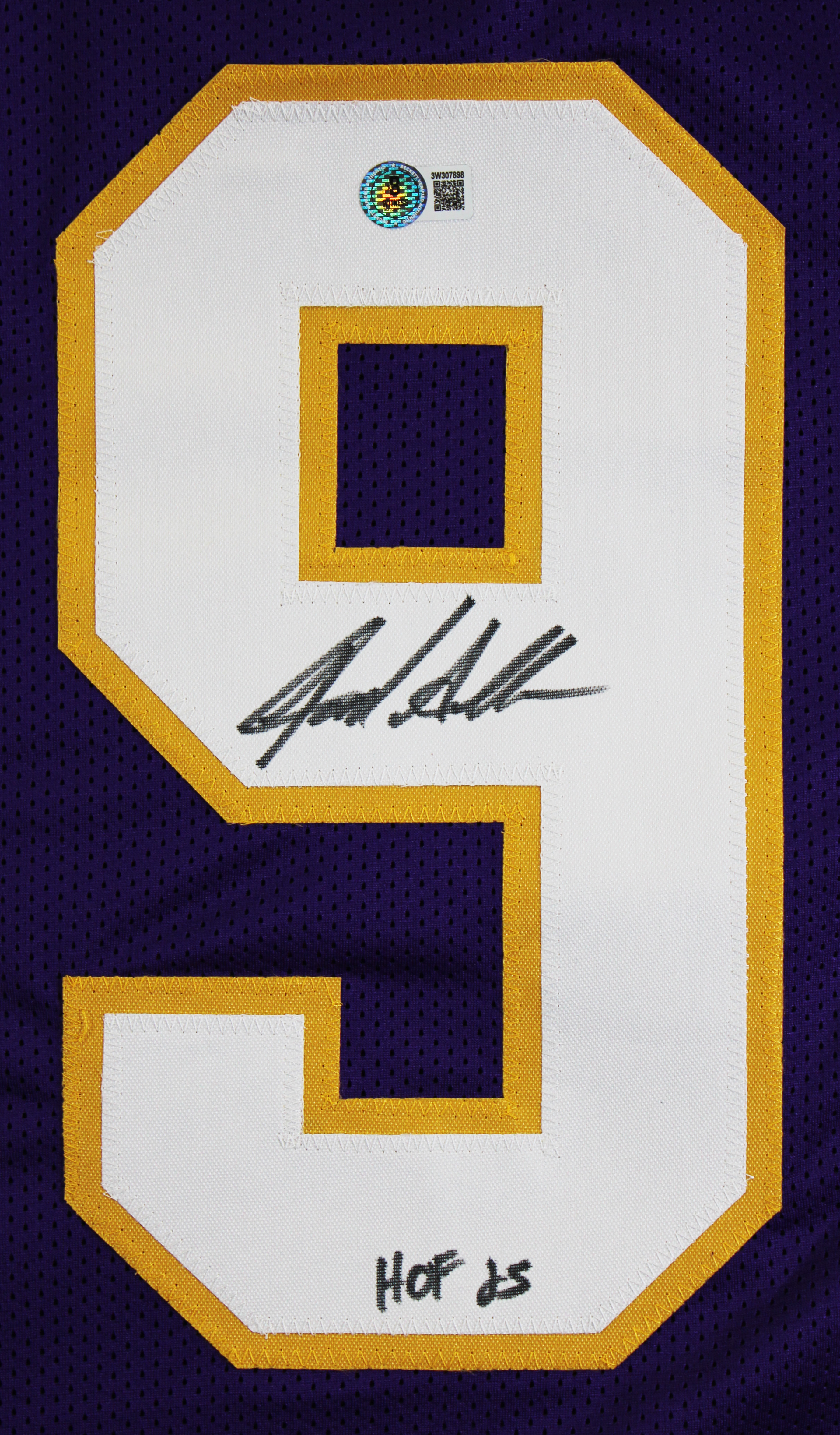 This Autographed Purple Pro Style Jersey with the inscription of "HOF 25" has been Personally Signed by Jared Allen of the Minnesota Vikings. This item is 100% Authentic to include a hologram by Beckett Authentication Services. This item will come with an affixed Beckett Authentication Services (BAS) authentication sticker, which includes a scannable QR code to verify authenticity. Please note that Beckett no longer provides serial-numbered COA cards, and the attached BAS sticker will serve as the complete authentication for this item. This is a BAS Witnessed Protection Program item which means a Beckett Authentication Service representative was present when this item was being signed. The authenticity can be verified on Beckett Authentication Services website. This is a X-Large sized, non-branded, custom-stitched Jersey.