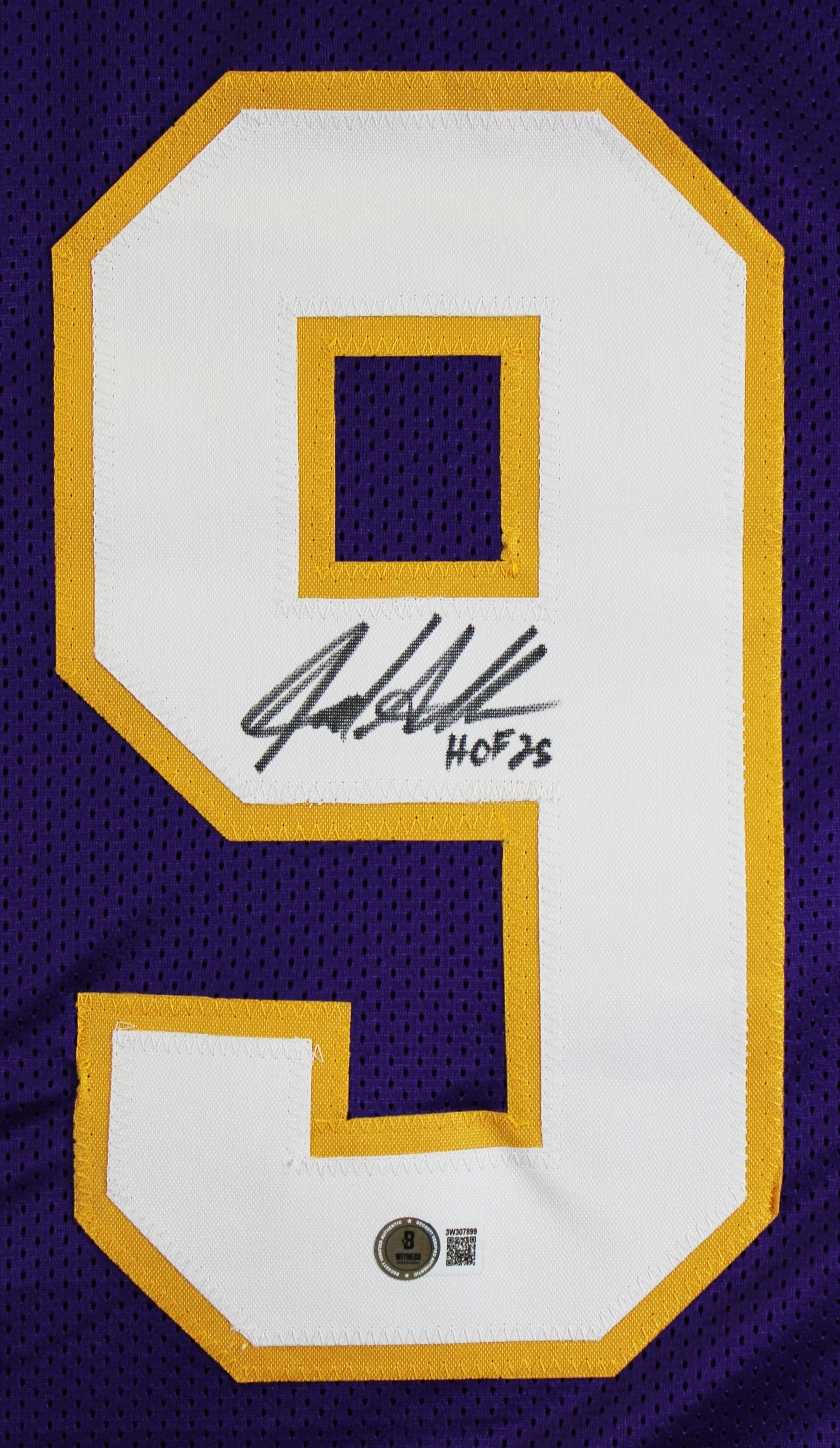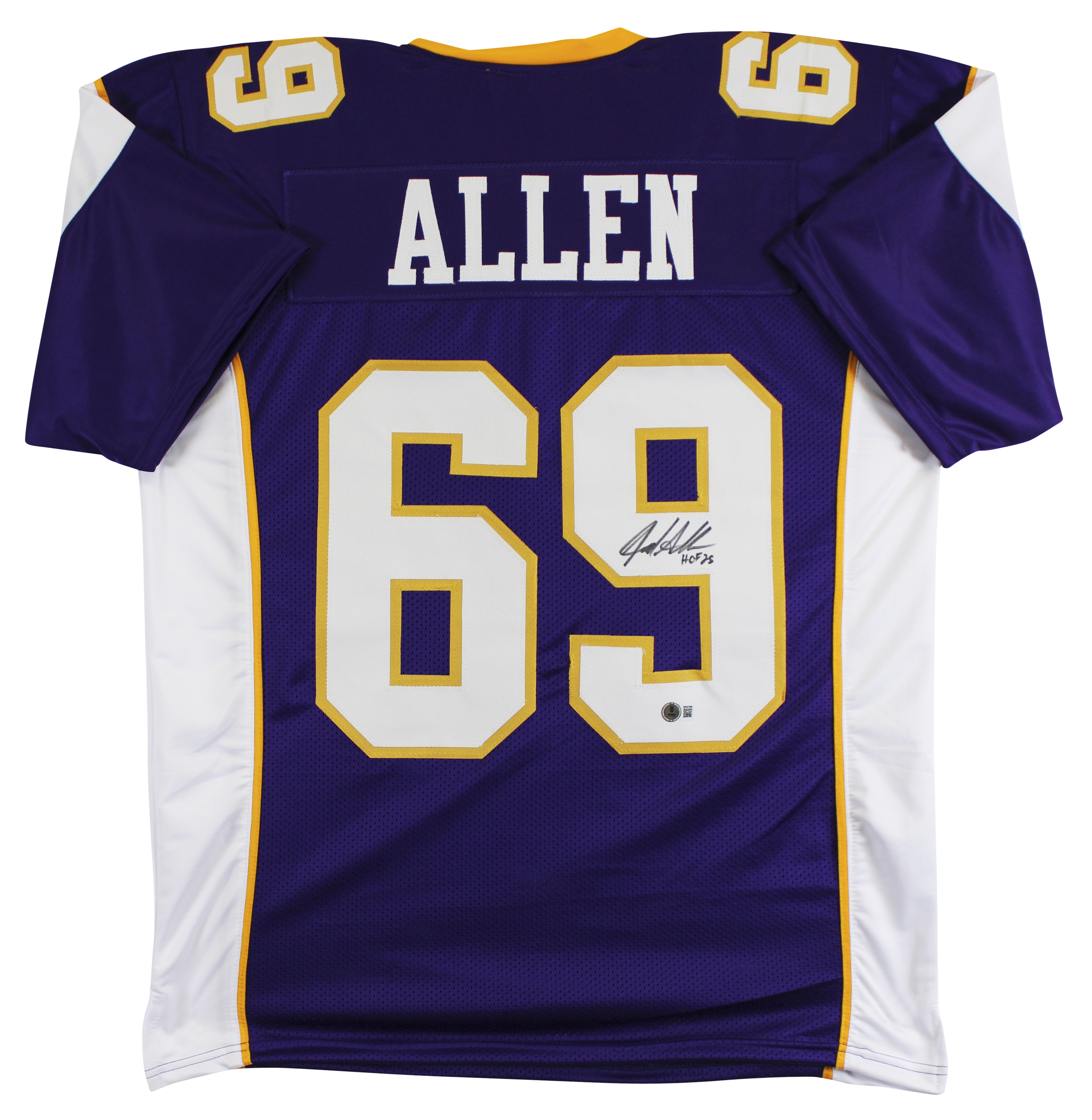 This Autographed Purple Pro Style Jersey with the inscription of "HOF 25" has been Personally Signed by Jared Allen of the Minnesota Vikings. This item is 100% Authentic to include a hologram by Beckett Authentication Services. This item will come with an affixed Beckett Authentication Services (BAS) authentication sticker, which includes a scannable QR code to verify authenticity. Please note that Beckett no longer provides serial-numbered COA cards, and the attached BAS sticker will serve as the complete authentication for this item. This is a BAS Witnessed Protection Program item which means a Beckett Authentication Service representative was present when this item was being signed. We conducted an autograph signing with Jared Allen where multiples of the same item were signed. While the photographs are representative of this item, the size, placement and strength of the signature may vary. Each item is hand signed, therefore, each autograph is unique. This item can be verified through BAS Witnessed. This is a X-Large sized, non-branded, custom-stitched Jersey.
