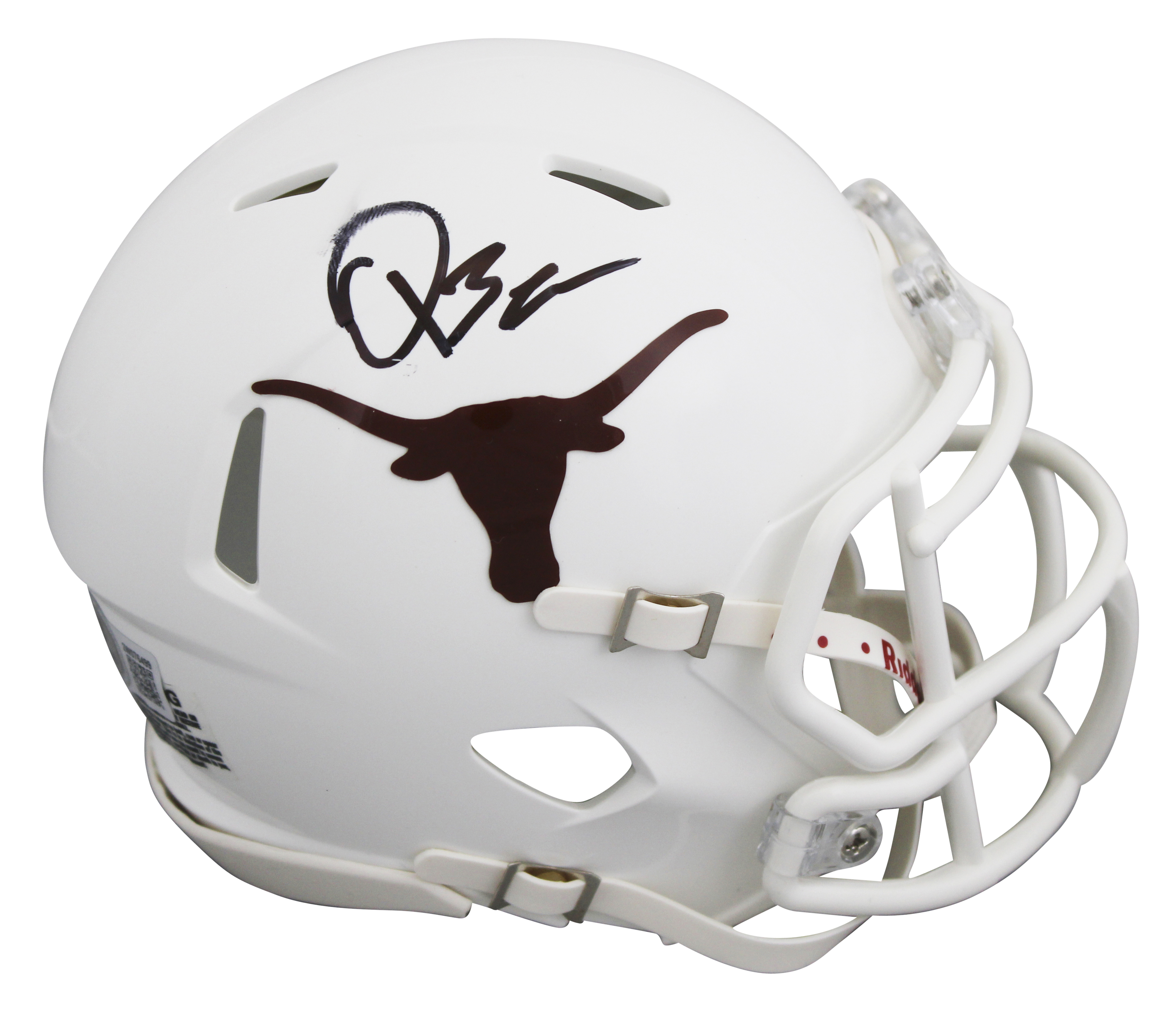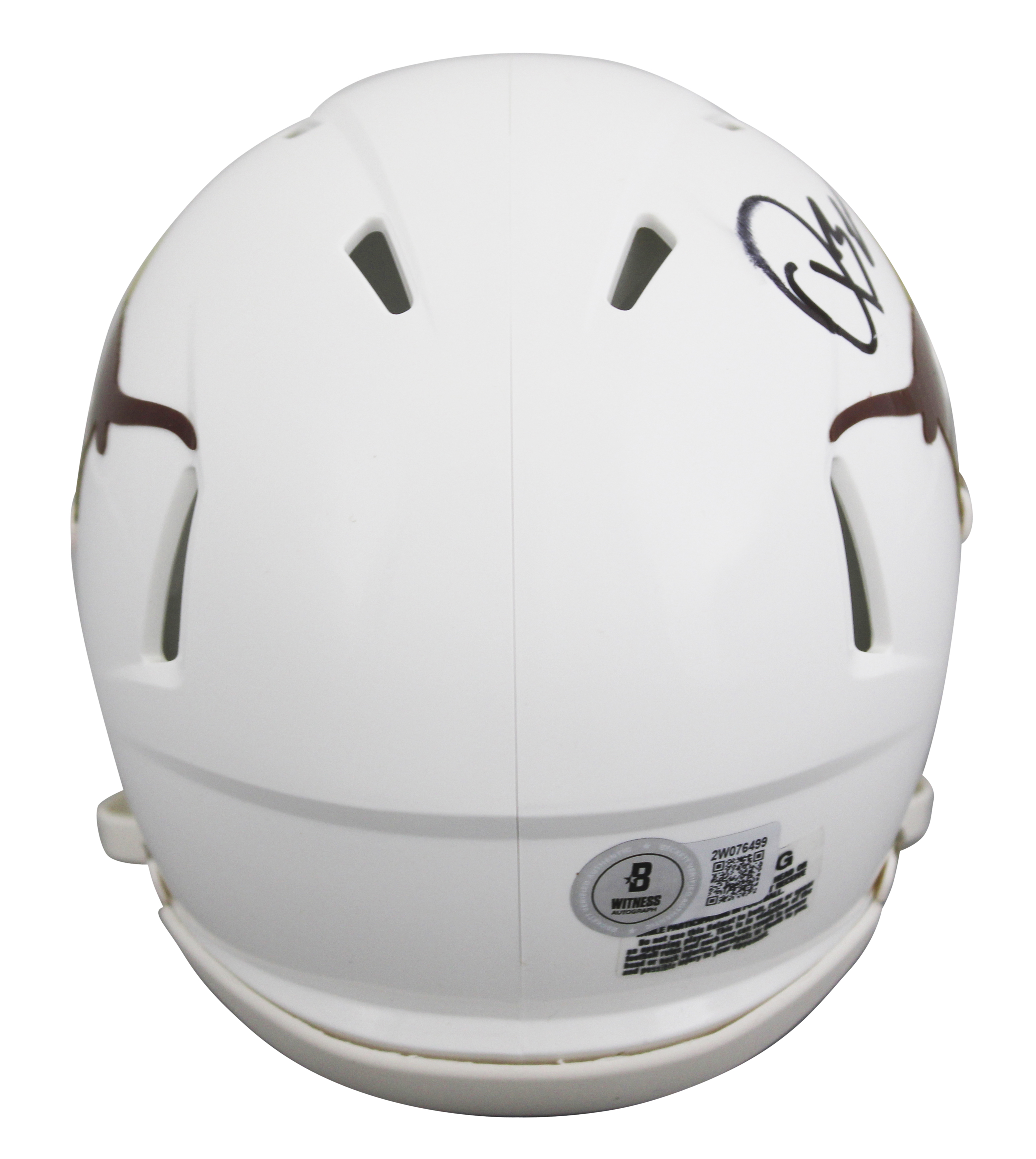 This Autographed Speed Mini Helmet has been Personally Signed by Quinn Ewers of the Texas Longhorns. This item is 100% Authentic to include a hologram by Beckett Authentication Services. This item will come with an affixed Beckett Authentication Services (BAS) authentication sticker, which includes a scannable QR code to verify authenticity. Please note that Beckett no longer provides serial-numbered COA cards, and the attached BAS sticker will serve as the complete authentication for this item. This is a BAS Witnessed Protection Program item which means a Beckett Authentication Service representative was present when this item was being signed. The authenticity can be verified on Beckett Authentication Services website. The signature is smeared. Please refer to pictures for item's condition prior to purchase.
