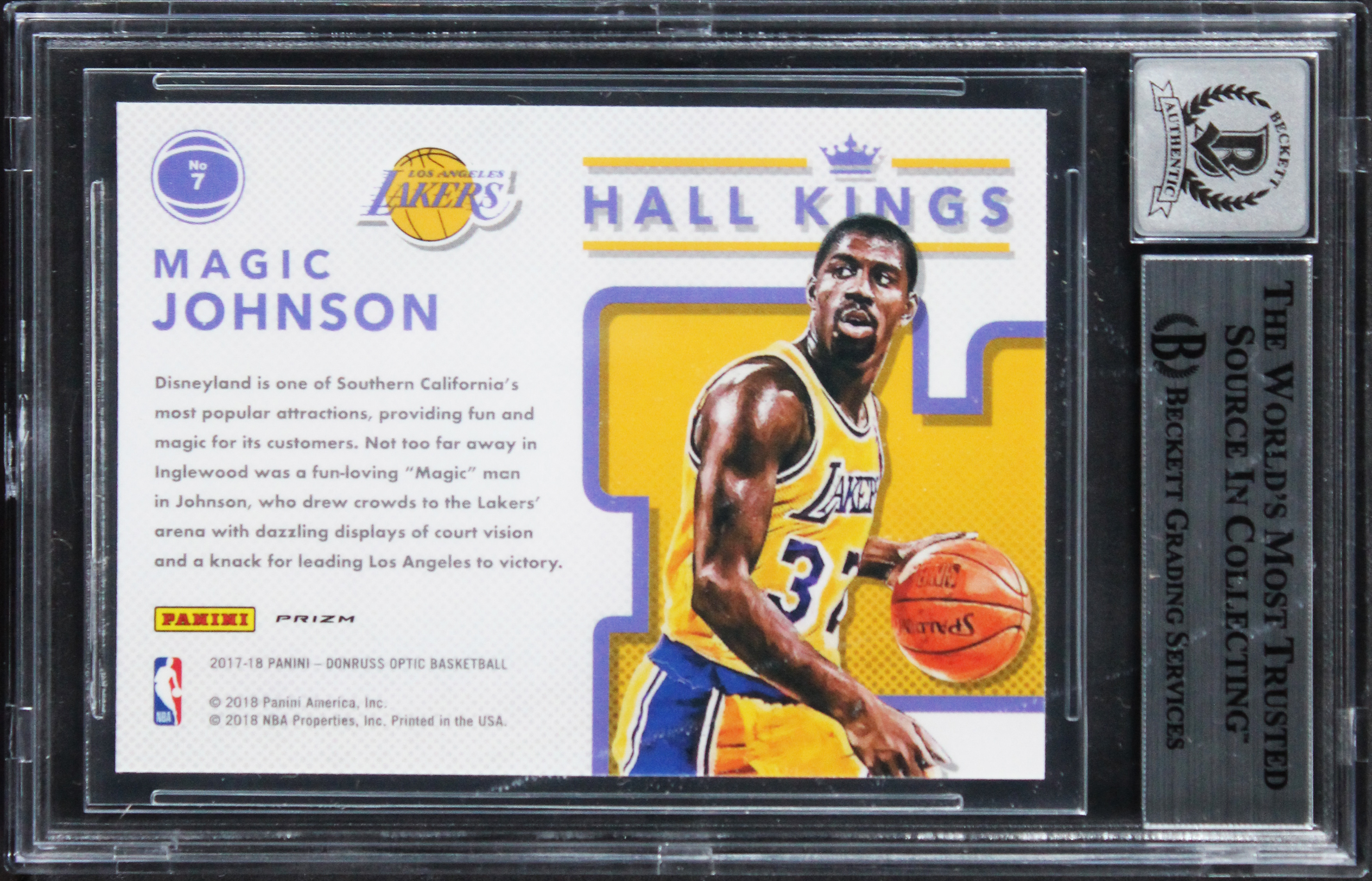 This Autographed Auto Grade Gem Mint 10! 2017 Donruss Optic Hall Kings Holo #7 Card has been Personally Signed by Magic Johnson of the Los Angeles Lakers. This item is 100% Authentic, it comes slabbed and authenticated by Beckett Authentication Services. We have multiples of this same item. While the photographs are representative of this item, the size, placement and strength of the signature may vary. Each item is hand signed, therefore, each autograph is unique.