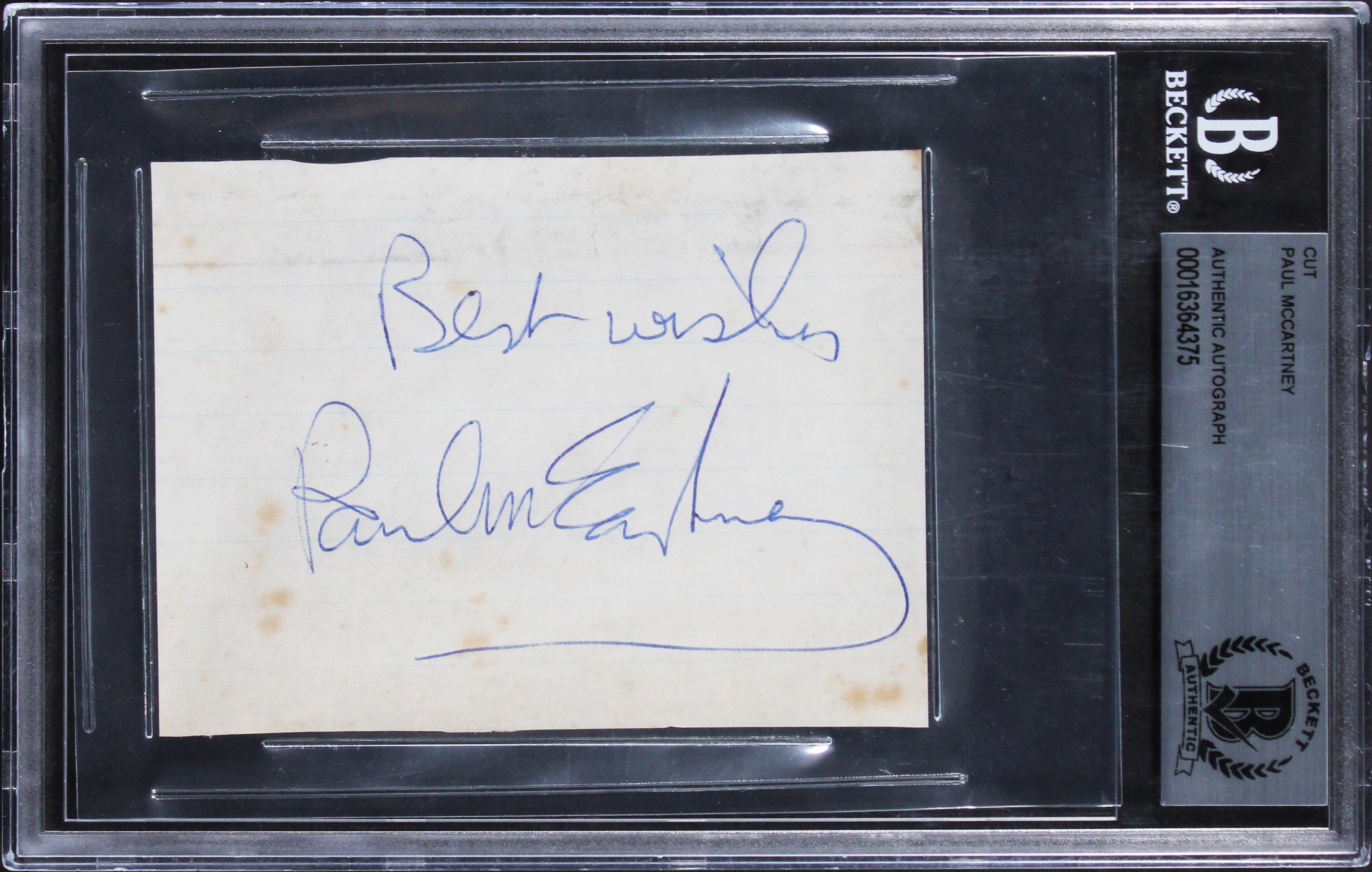 This Autographed 3x4 Cut Signature has been Personally Signed by Paul McCartney of The Beatles. This item is 100% Authentic, it comes slabbed and authenticated by Beckett Authentication Services. The authenticity can be verified on Beckett Authentication Services website.