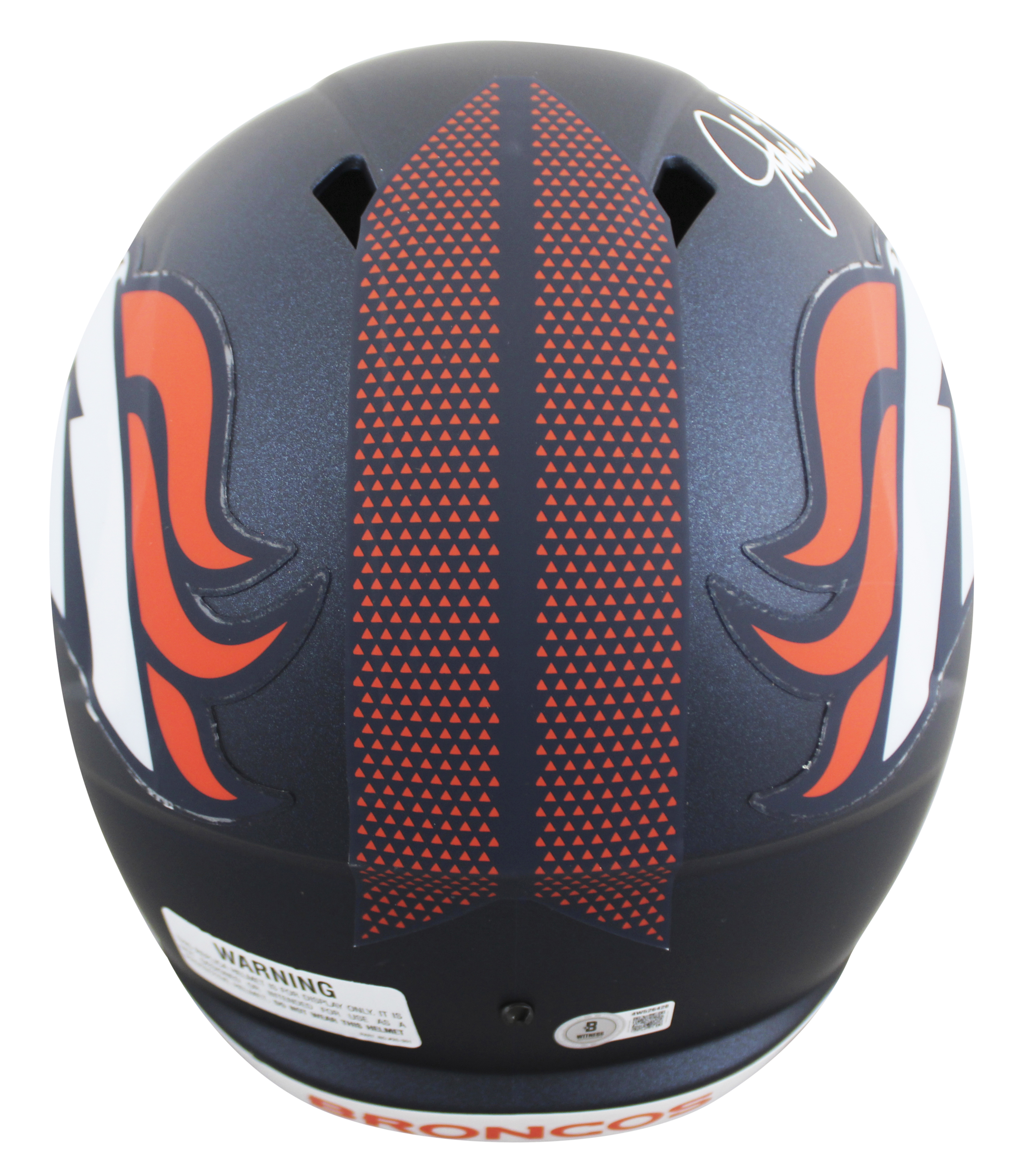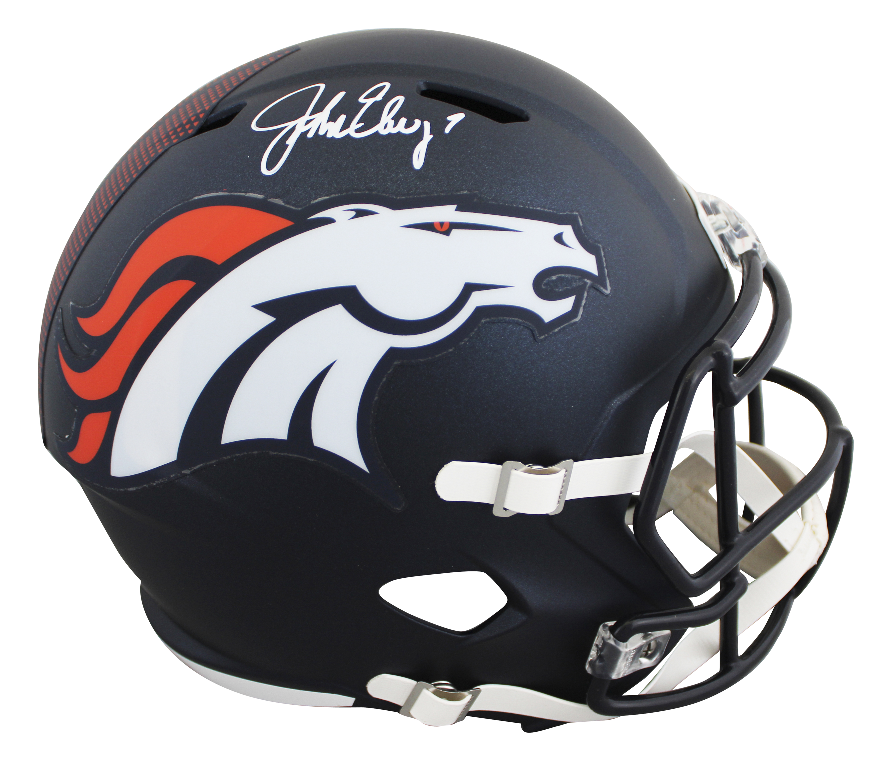This Autographed Riddell Full Size Speed Rep Helmet W/ Uv Mirrored Back Acrylic Display Case has been Personally Signed by John Elway of the Denver Broncos. This item is 100% Authentic to include a hologram by Beckett Authentication Services. This item will come with an affixed Beckett Authentication Services (BAS) authentication sticker, which includes a scannable QR code to verify authenticity. Please note that Beckett no longer provides serial-numbered COA cards, and the attached BAS sticker will serve as the complete authentication for this item. This is a BAS Witnessed Protection Program item which means a Beckett Authentication Service representative was present when this item was being signed. We conducted an autograph signing with John Elway where multiples of the same item were signed. While the photographs are representative of this item, the size, placement and strength of the signature may vary. Each item is hand signed, therefore, each autograph is unique. This item can be verified through BAS Witnessed.