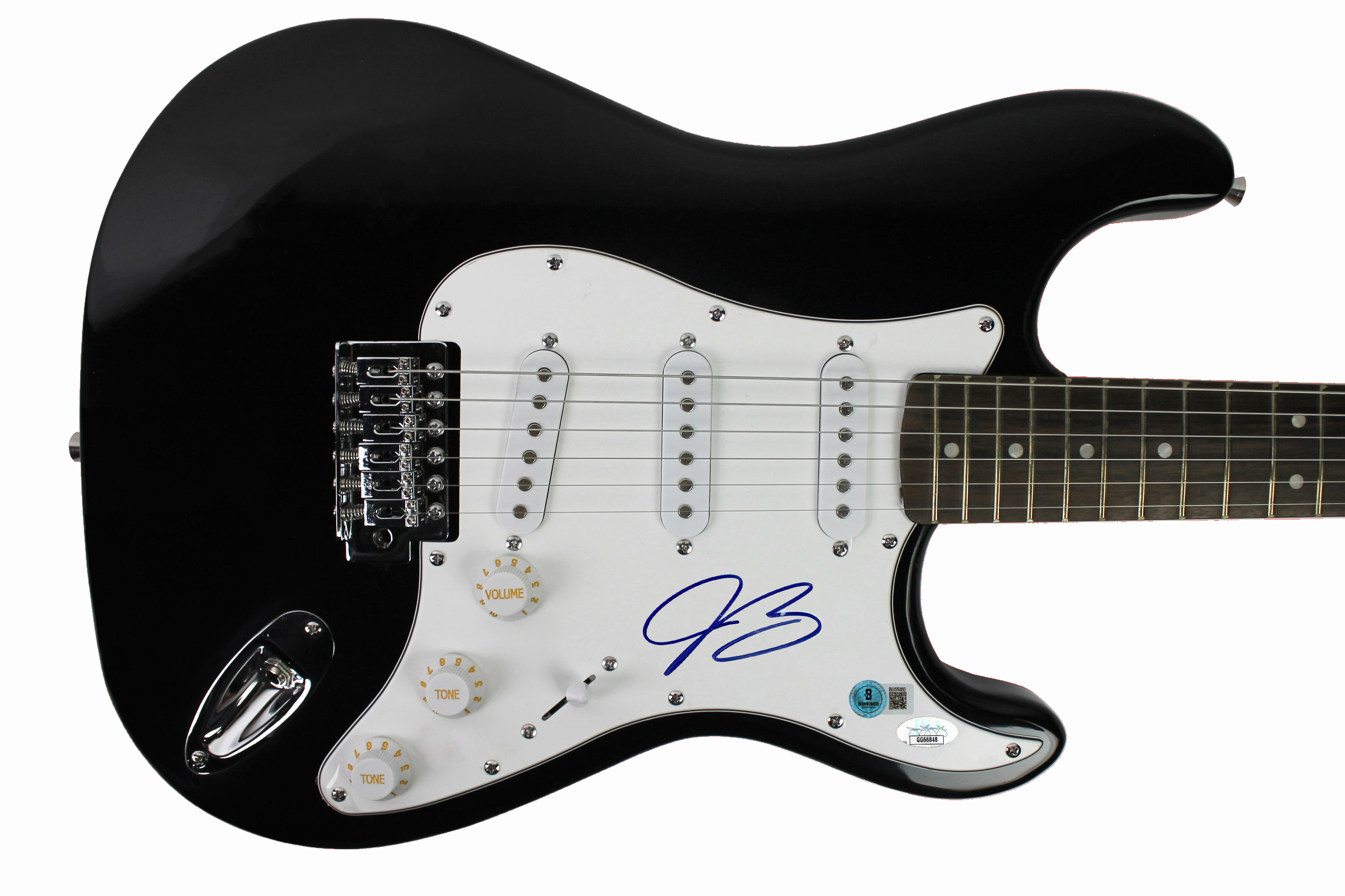 This Autographed Black Electric Guitar has been Personally Signed by Joe Bonamassa. This item is 100% Authentic to include a hologram by Beckett Authentication Services. This item will come with an affixed Beckett Authentication Services (BAS) authentication sticker, which includes a scannable QR code to verify authenticity. Please note that Beckett no longer provides serial-numbered COA cards, and the attached BAS sticker will serve as the complete authentication for this item.The authenticity can be verified on Beckett Authentication Services website. The signature is slightly smeared. Please refer to pictures for item's condition. There are some stray ink marks on the pick guard. This guitar was previously authenticated by JSA, but it will not come with its matching JSA card. Its authenticity can still be searched and verified on JSA's database.