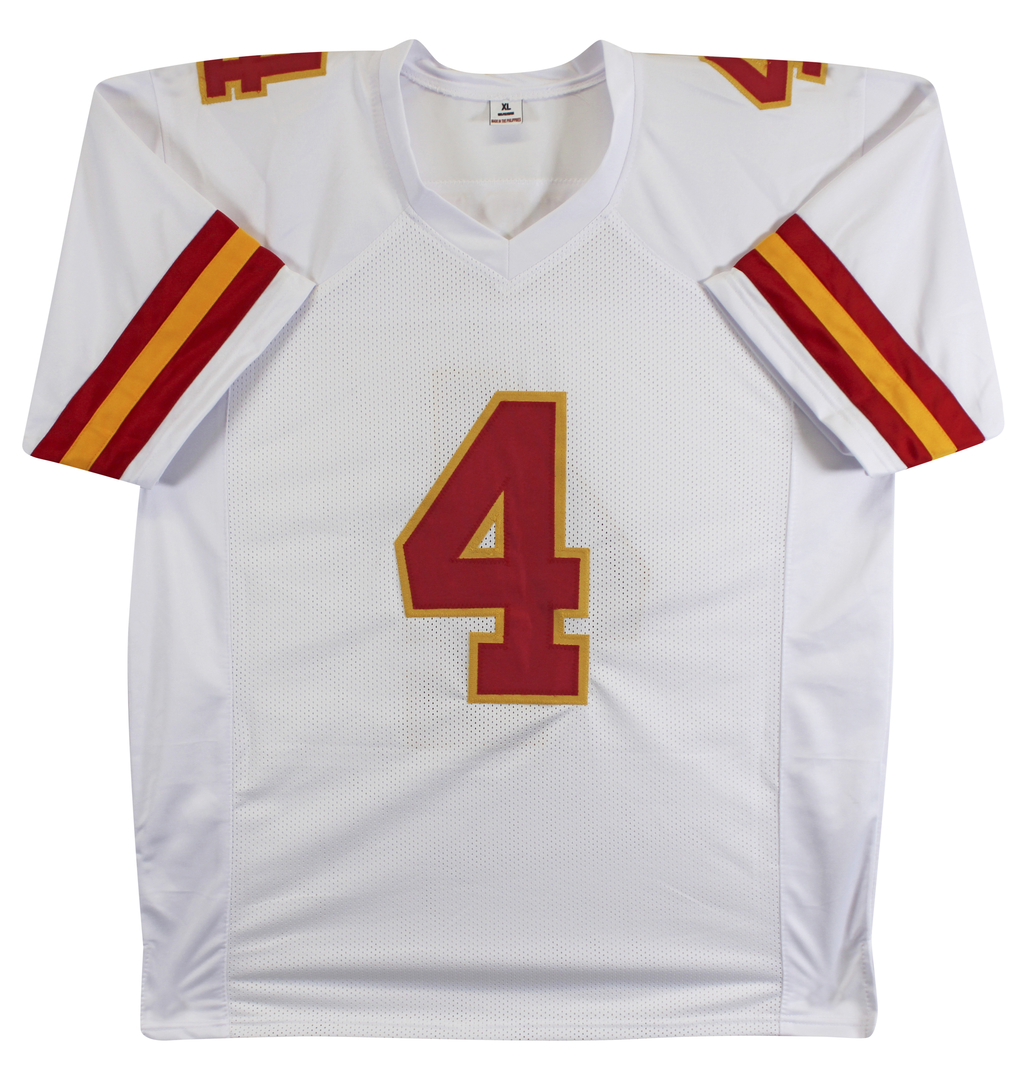 This Autographed White Pro Style Jersey has been Personally Signed by Rashee Rice of the Kansas City Chiefs. This item is 100% Authentic to include a hologram by Beckett Authentication Services. This item will come with an affixed Beckett Authentication Services (BAS) authentication sticker, which includes a scannable QR code to verify authenticity. Please note that Beckett no longer provides serial-numbered COA cards, and the attached BAS sticker will serve as the complete authentication for this item. We have multiples of this same item. While the photographs are representative of this item, the size, placement and strength of the signature may vary. Each item is hand signed, therefore, each autograph is unique. This is a X-Large sized, non-branded, custom-stitched Jersey.