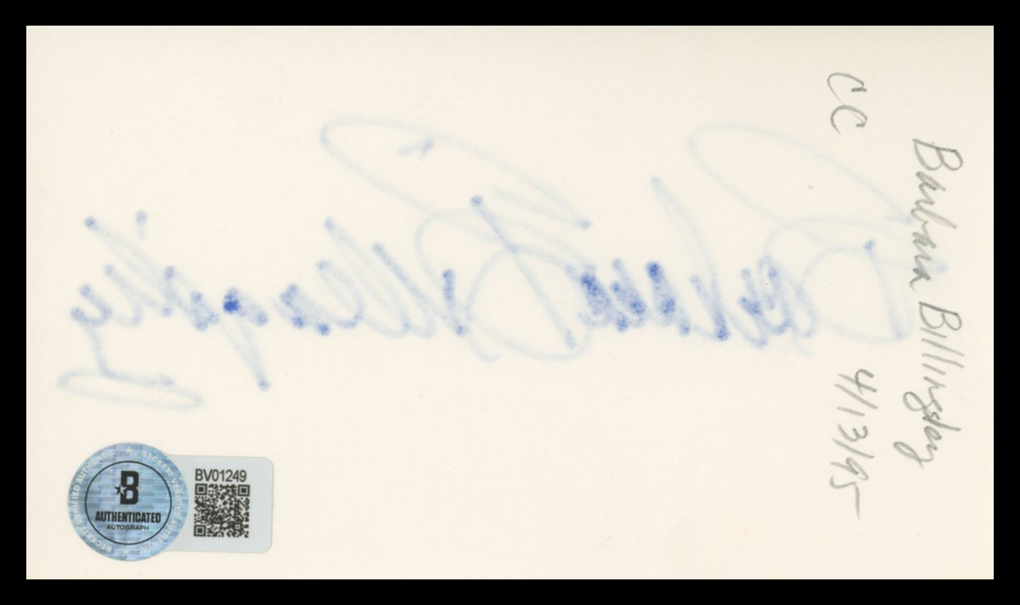 This Autographed 3x5 Index Card has been Personally Signed by Barbara Billingsley of Leave It to Beaver. This item is 100% Authentic to include a hologram by Beckett Authentication Services. This item will come with an affixed Beckett Authentication Services (BAS) authentication sticker, which includes a scannable QR code to verify authenticity. Please note that Beckett no longer provides serial-numbered COA cards, and the attached BAS sticker will serve as the complete authentication for this item. The authenticity can be verified on Beckett Authentication Services website.