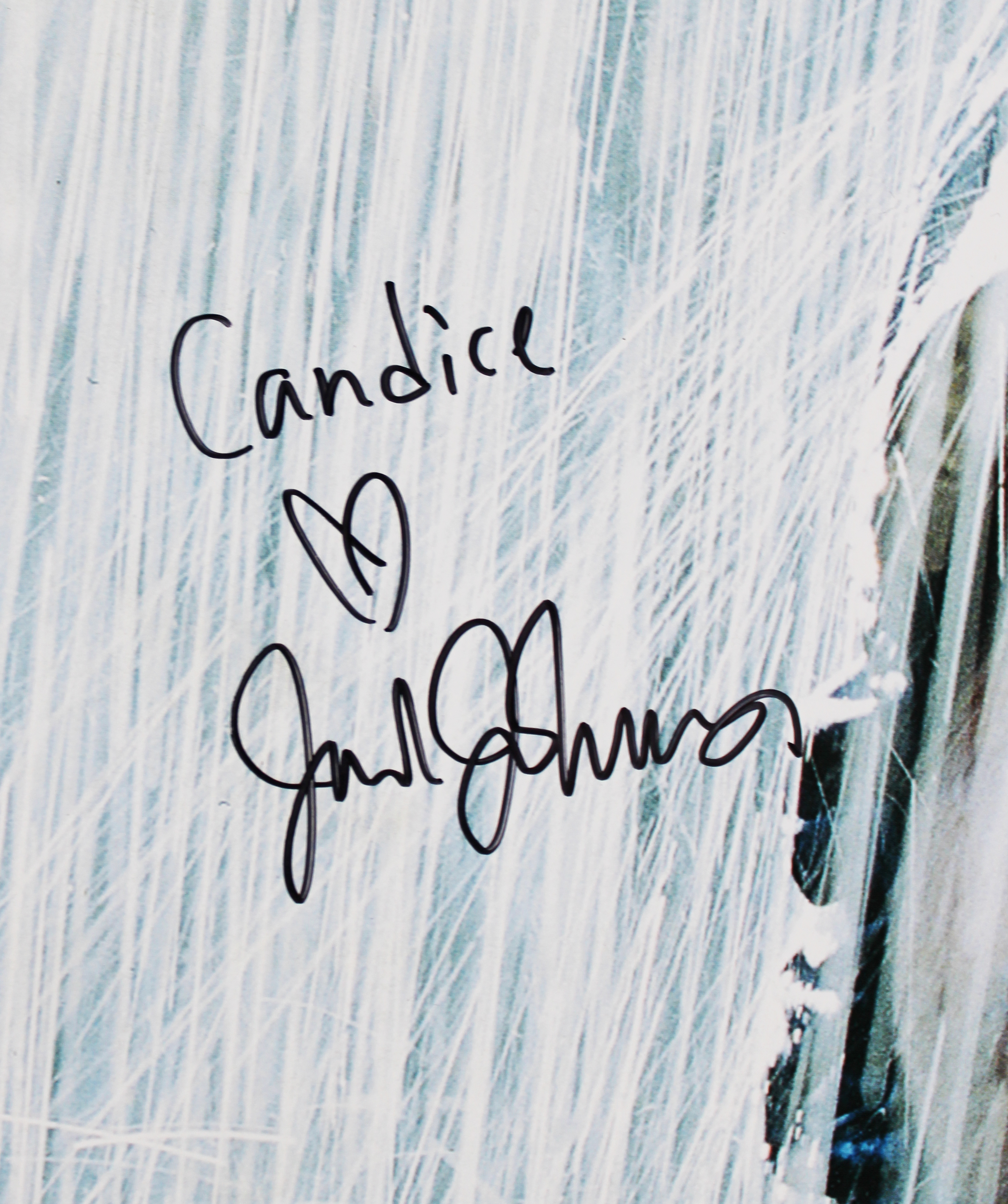 This Autographed Brushfire Fairytales Album Flat with the inscription of "Candice" has been Personally Signed by Jack Johnson. This item is 100% Authentic and comes with a PSA/DNA Certification numbered Hologram. Please note that PSA/DNA no longer provides serial-numbered COA cards, and the attached PSA/DNA sticker will serve as the complete authentication for this item. The authenticity can be verified on Professional Sports Authenticators website. This is just the signed album flat. It will not come with the vinyl.