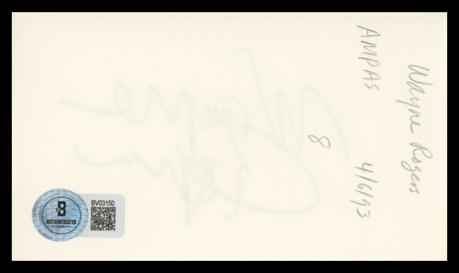 This Autographed 3x5 Index Card has been Personally Signed by Wayne Rogers of M*A*S*H. This item is 100% Authentic to include a hologram by Beckett Authentication Services. This item will come with an affixed Beckett Authentication Services (BAS) authentication sticker, which includes a scannable QR code to verify authenticity. Please note that Beckett no longer provides serial-numbered COA cards, and the attached BAS sticker will serve as the complete authentication for this item. The authenticity can be verified on Beckett Authentication Services website.
