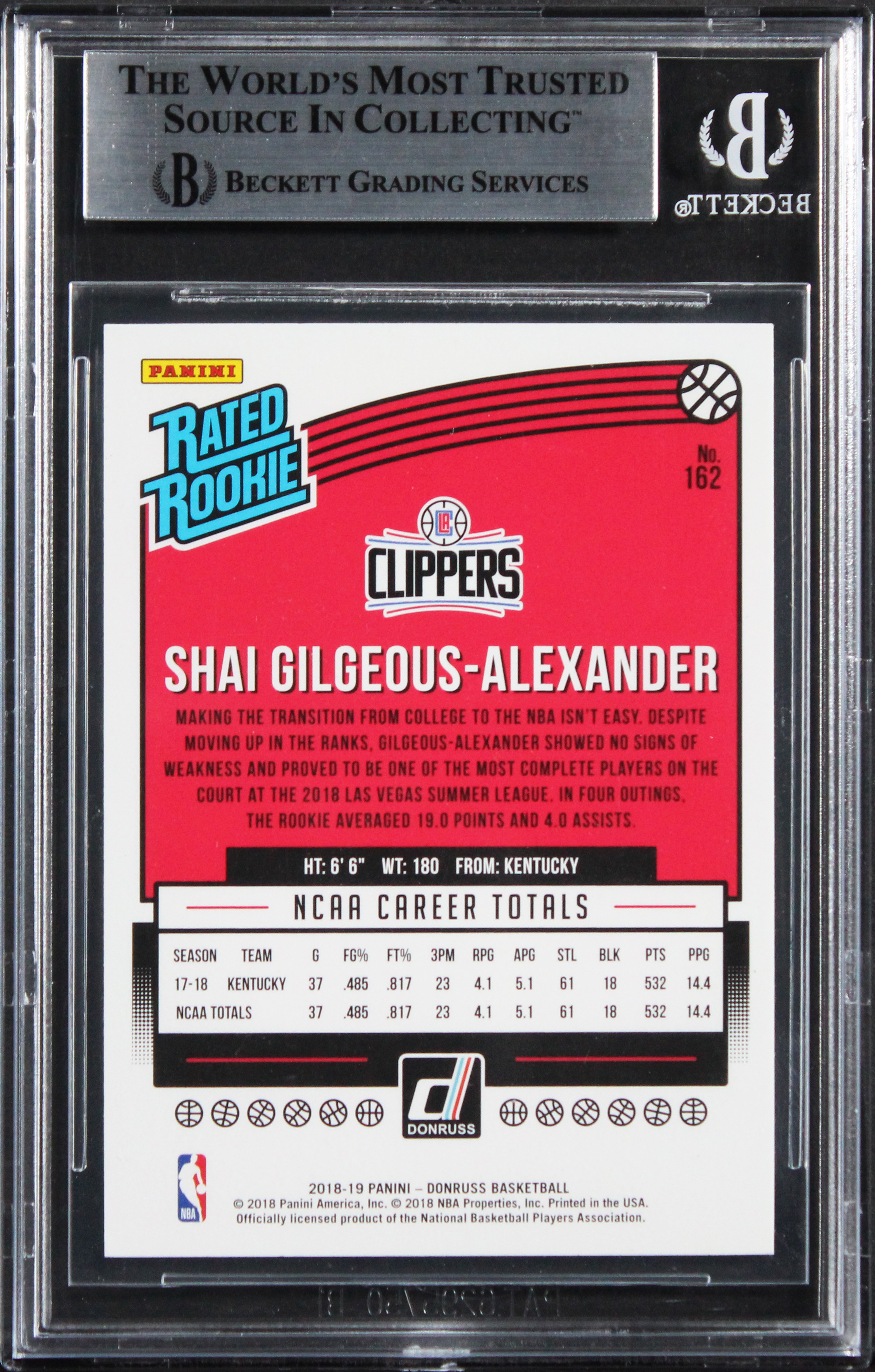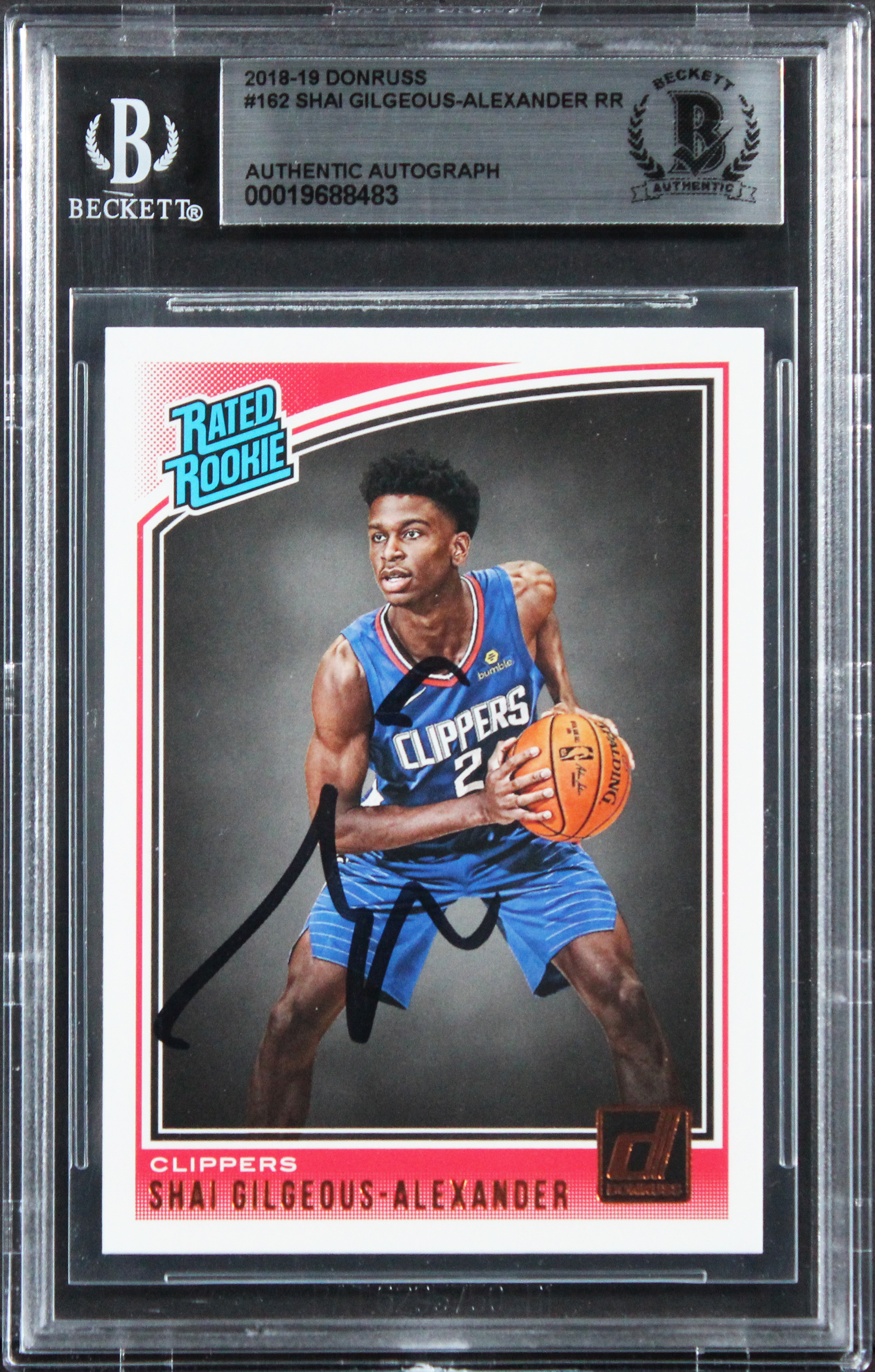 This Autographed 2018 Donruss #162 Rated Rookie Card has been Personally Signed by Shai Gilgeous-Alexander of the Los Angeles Clippers. This item is 100% Authentic, it comes slabbed and authenticated by Beckett Authentication Services. The authenticity can be verified on Beckett Authentication Services website.