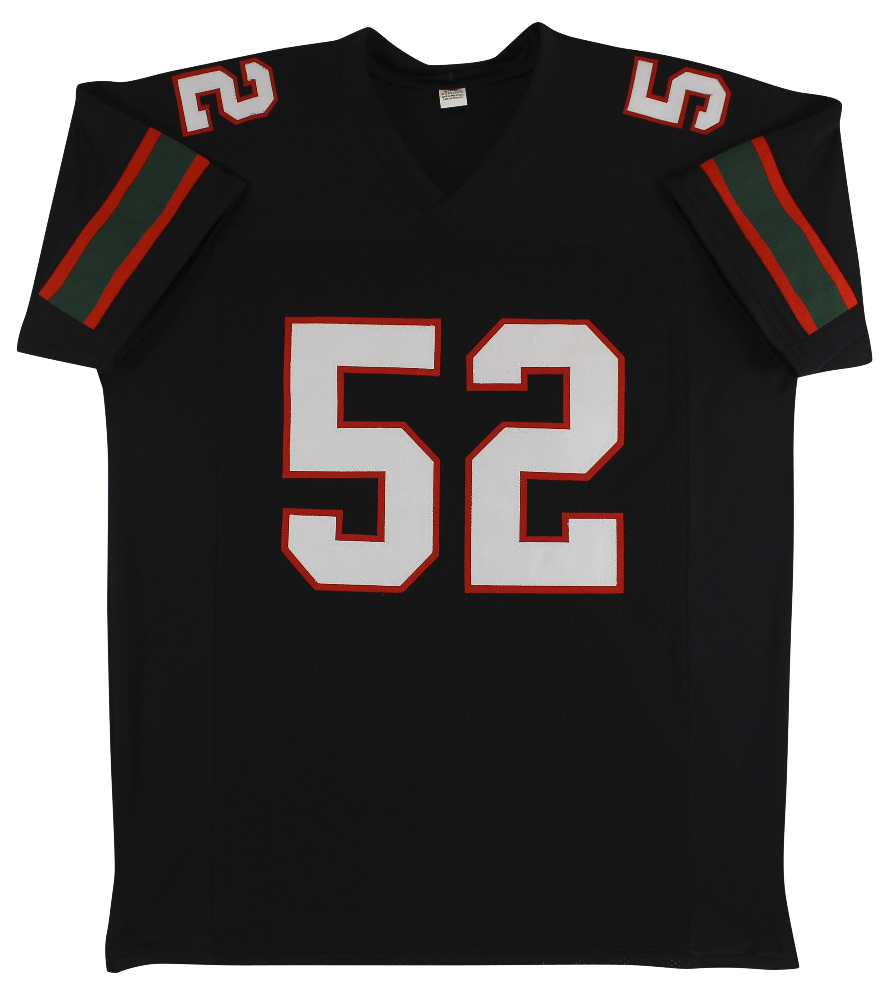 This Autographed Black Pro Style Jersey has been Personally Signed by Ray Lewis of the Miami Hurricanes. This item is 100% Authentic to include a hologram by Beckett Authentication Services. This item will come with the new Beckett Authentication hologram that has a scannable QR code rather than the traditional COA. If you would like to have a COA, you are welcome to reach out to Beckett for a printed certification once you receive your item. This is a BAS Witnessed Protection Program item which means a Beckett Authentication Service representative was present when this item was being signed. We conducted an autograph signing with Ray Lewis where multiples of the same item were signed. While the photographs are representative of this item, the size, placement and strength of the signature may vary. Each item is hand signed, therefore, each autograph is unique. This item can be verified through BAS Witnessed. This is a X-Large sized, non-branded, custom-stitched Jersey.