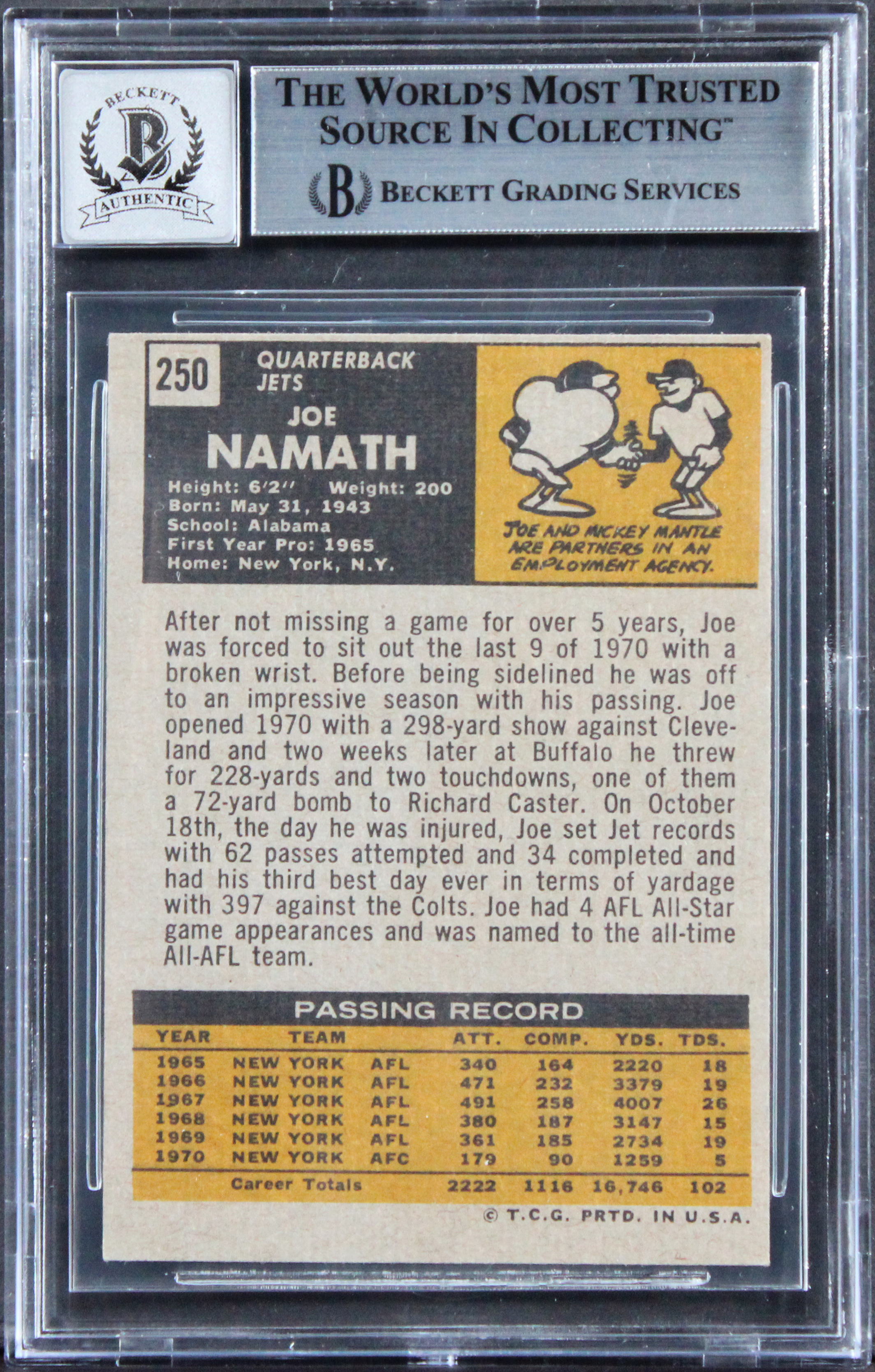 Jets Joe Namath Authentic Signed 1971 Topps #250 Card Auto 10! BAS Slabbed 2