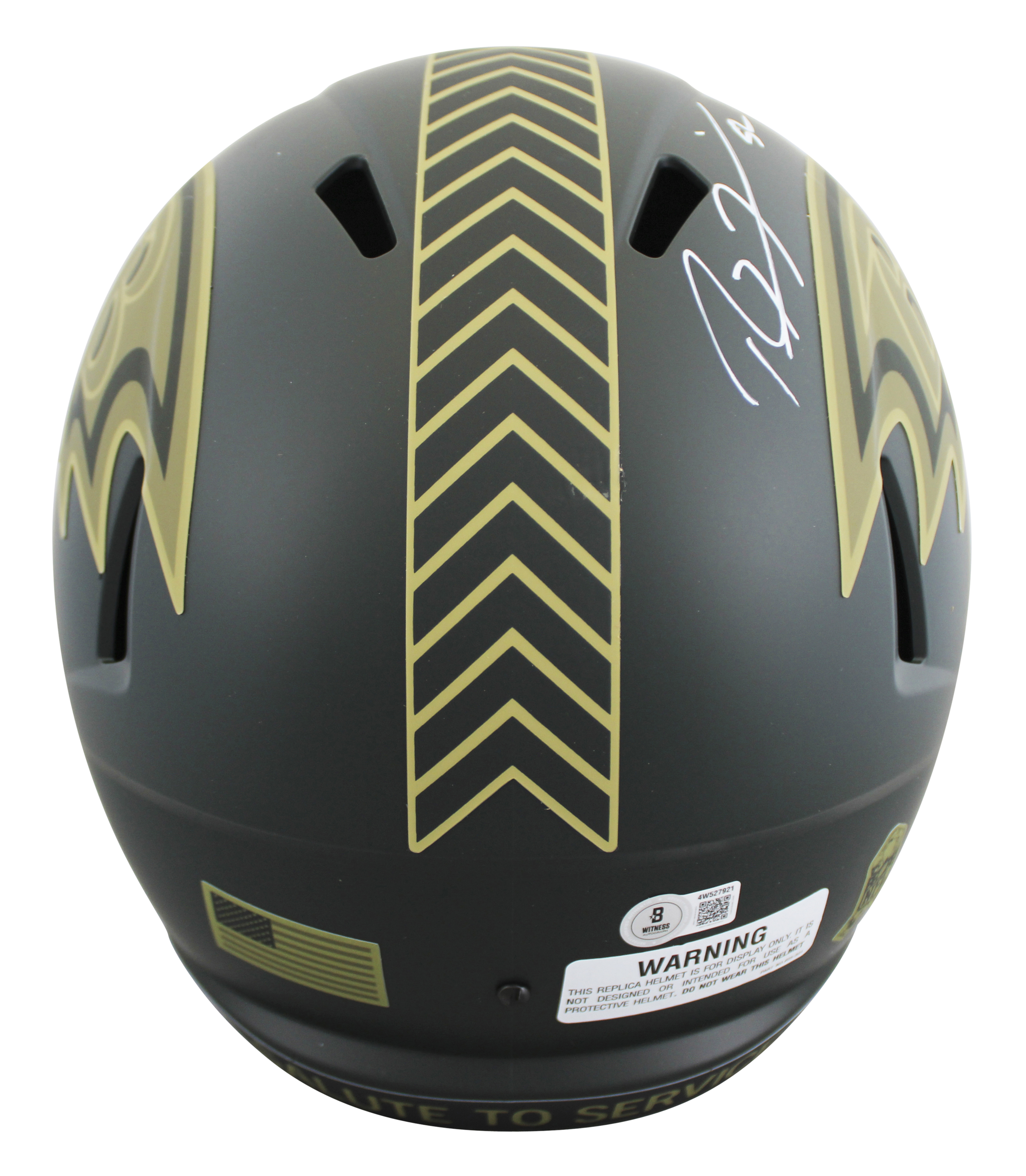 This Autographed Alternate 2025 Salute To Service IV Riddell Full Size Speed Rep Helmet has been Personally Signed by Ray Lewis of the Baltimore Ravens. This item is 100% Authentic to include a hologram by Beckett Authentication Services. This item will come with an affixed Beckett Authentication Services (BAS) authentication sticker, which includes a scannable QR code to verify authenticity. Please note that Beckett no longer provides serial-numbered COA cards, and the attached BAS sticker will serve as the complete authentication for this item. This is a BAS Witnessed Protection Program item which means a Beckett Authentication Service representative was present when this item was being signed. We conducted an autograph signing with Ray Lewis where multiples of the same item were signed. While the photographs are representative of this item, the size, placement and strength of the signature may vary. Each item is hand signed, therefore, each autograph is unique. This item can be verified through BAS Witnessed.