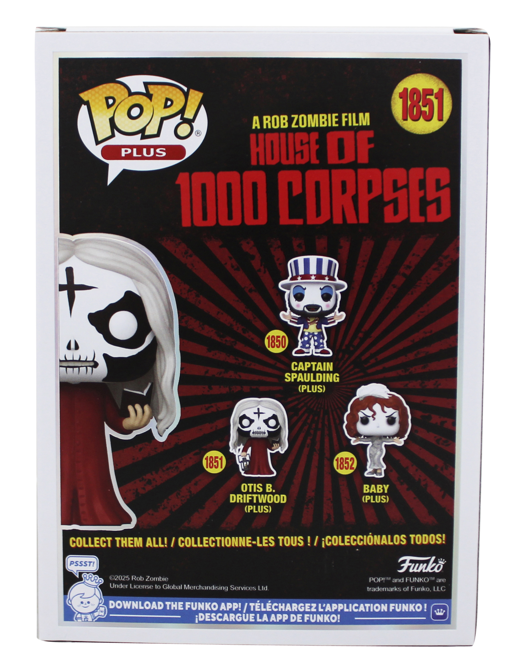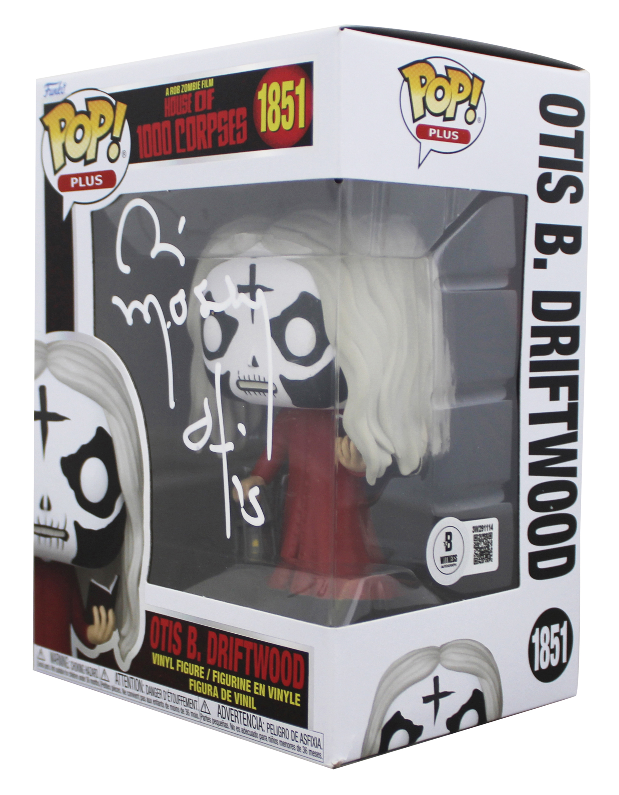 This Autographed W/ White Signature Otis B. Driftwood #1851 Funko Pop Vinyl Figure with the inscription of "Otis" has been Personally Signed by Bill Moseley of House of 1000 Corpses. This item is 100% Authentic to include a hologram by Beckett Authentication Services. This item will come with an affixed Beckett Authentication Services (BAS) authentication sticker, which includes a scannable QR code to verify authenticity. Please note that Beckett no longer provides serial-numbered COA cards, and the attached BAS sticker will serve as the complete authentication for this item. This is a BAS Witnessed Protection Program item which means a Beckett Authentication Service representative was present when this item was being signed. We have multiples of this same item. While the photographs are representative of this item, the size, placement and strength of the signature may vary. Each item is hand signed, therefore, each autograph is unique. This item will ship in a Pop! Protector, please refer to the photos for condition of the item prior to purchase, these are in good condition but would not be considered mint.