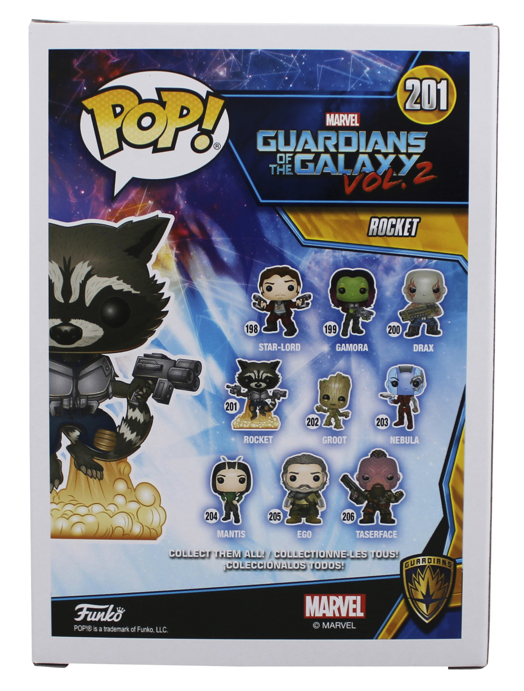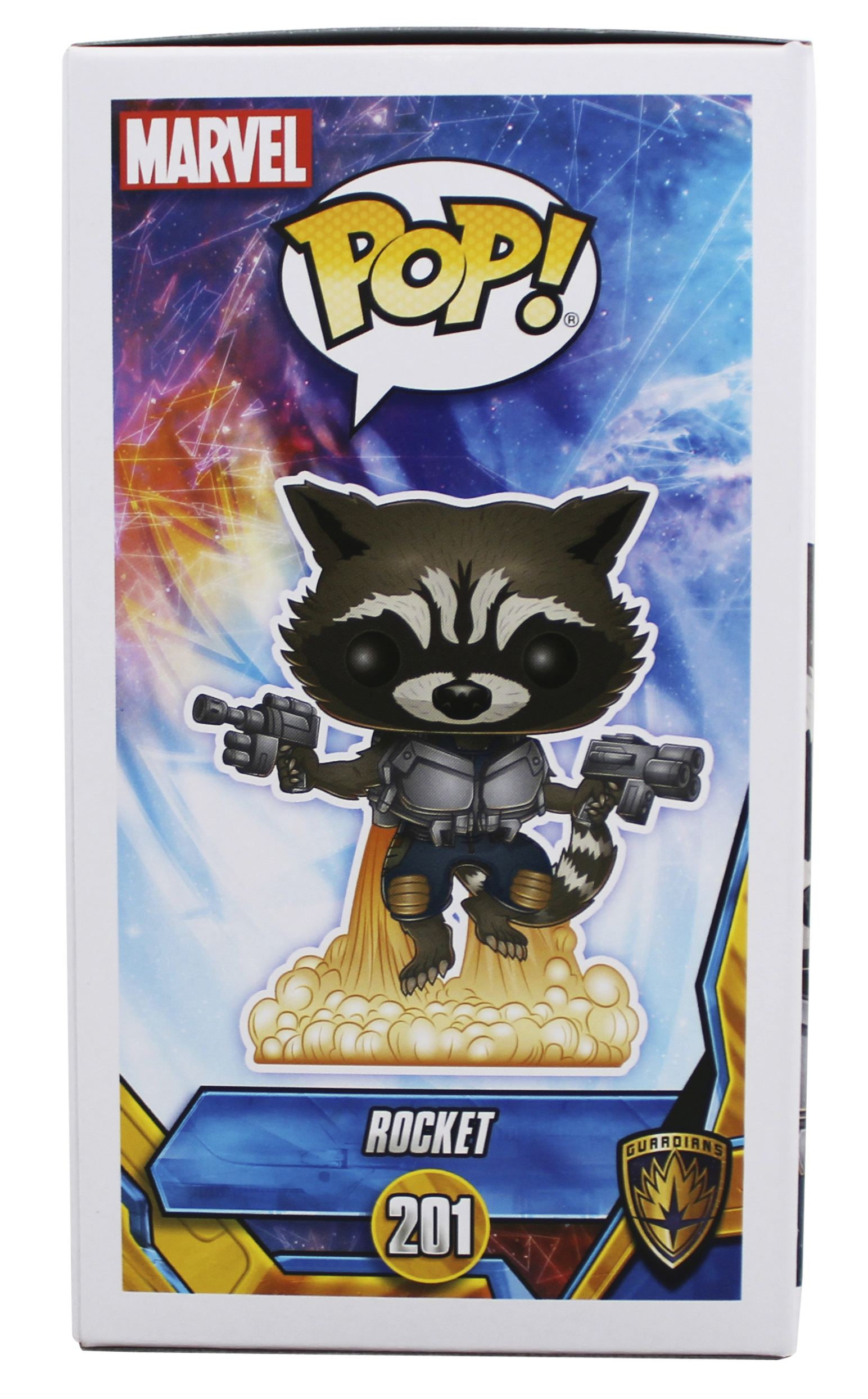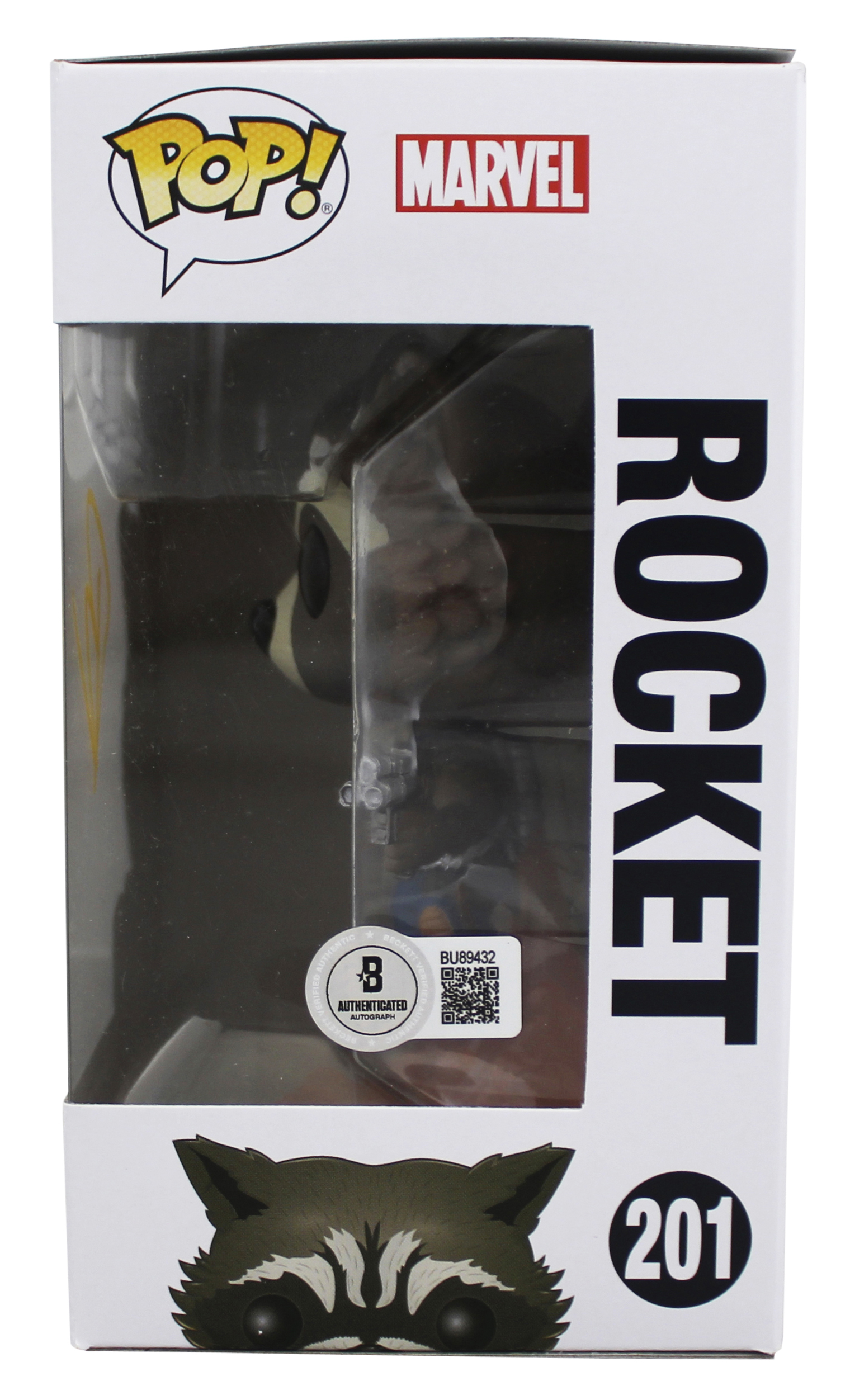 This Autographed Rocket #201 Funko Pop Vinyl Figure has been Personally Signed by Bradley Cooper of Guardians of the Galaxy Vol. 2. This item is 100% Authentic to include a hologram by Beckett Authentication Services. This item will come with an affixed Beckett Authentication Services (BAS) authentication sticker, which includes a scannable QR code to verify authenticity. Please note that Beckett no longer provides serial-numbered COA cards, and the attached BAS sticker will serve as the complete authentication for this item. The authenticity can be verified on Beckett Authentication Services website. This item will ship in a Pop! Protector, please refer to the photos for condition of the item prior to purchase, these are in good condition but would not be considered mint.