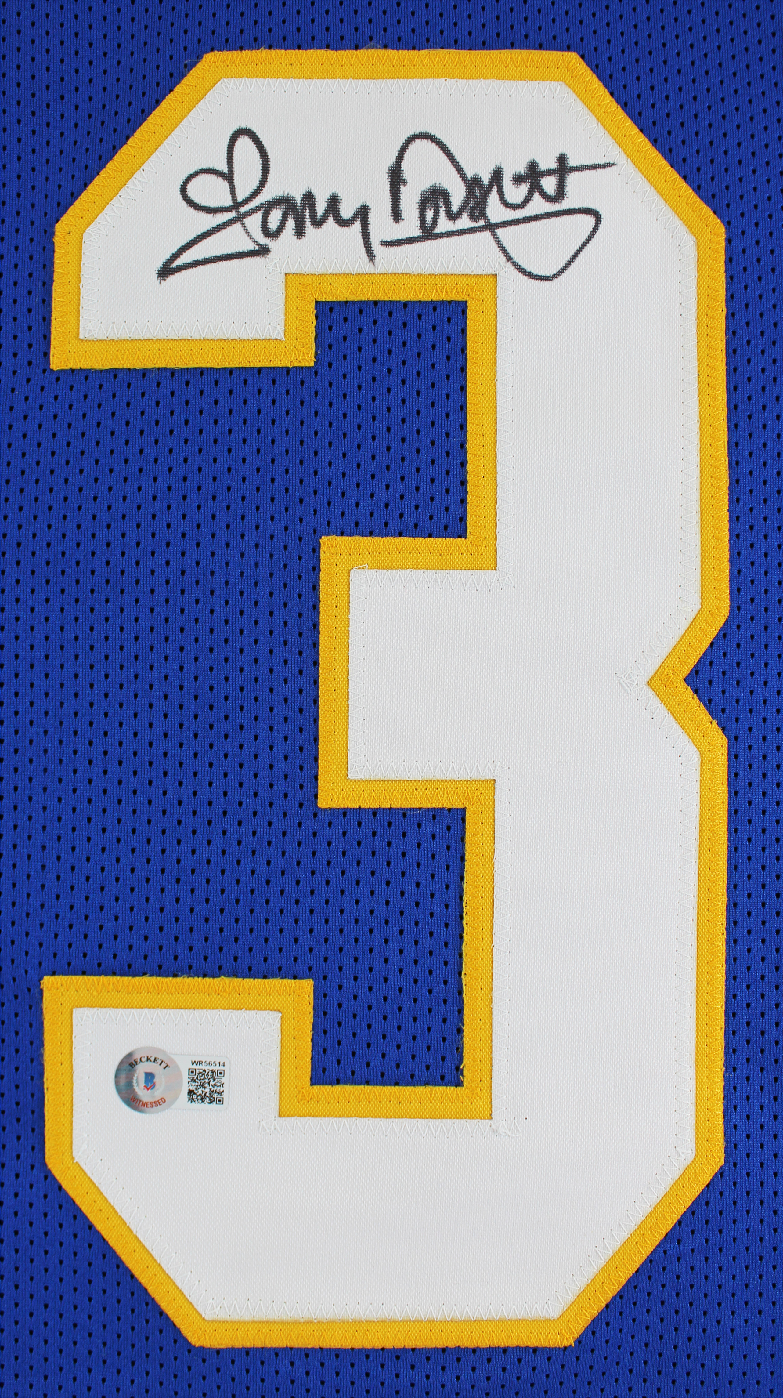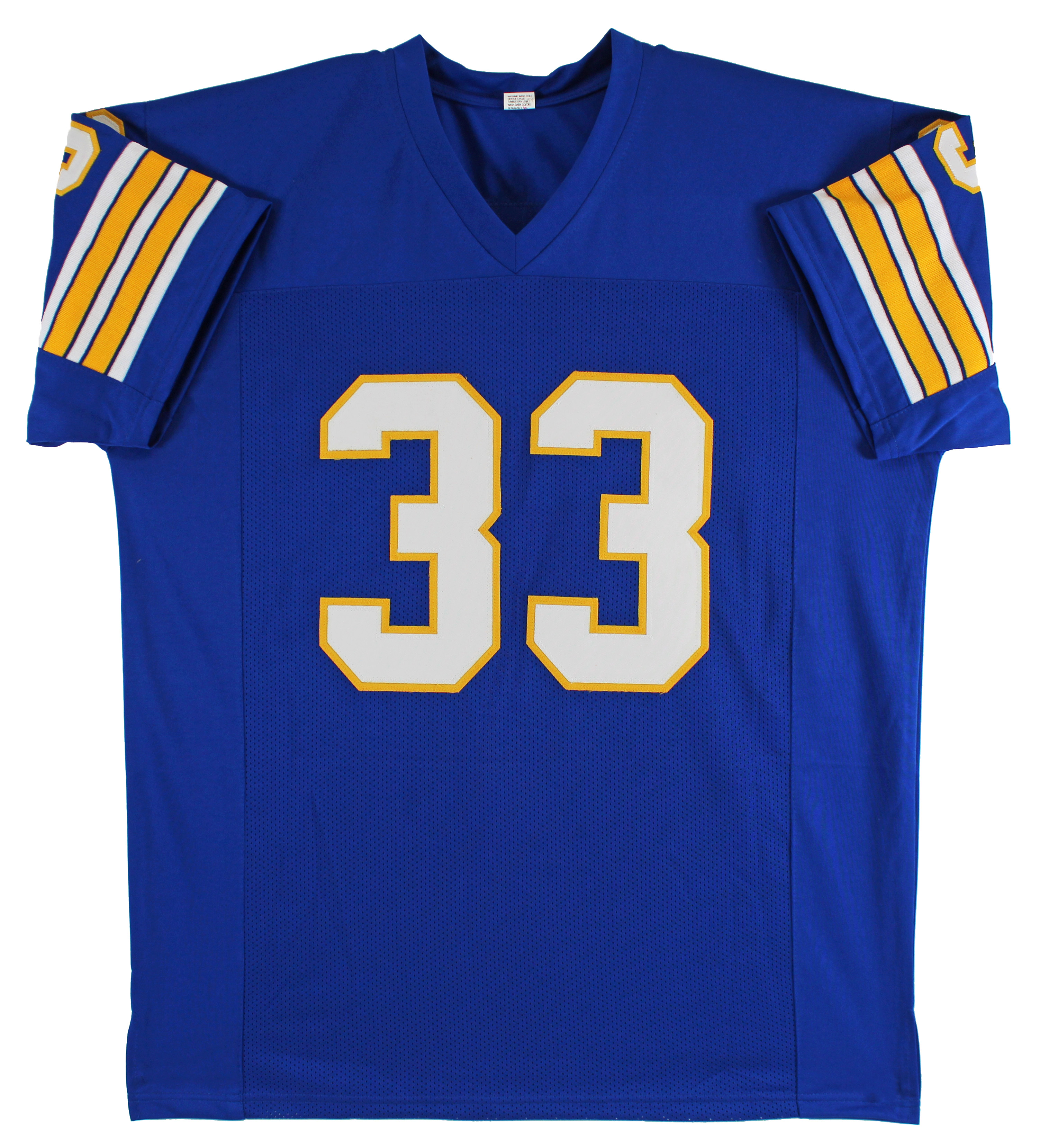 This Autographed Blue Pro Style Jersey has been Personally Signed by Tony Dorsett of the Pittsburgh Panthers. This item is 100% Authentic to include a hologram by Beckett Authentication Services. This item will come with the new Beckett Authentication hologram that has a scannable QR code rather than the traditional COA. If you would like to have a COA, you are welcome to reach out to Beckett for a printed certification once you receive your item. This is a BAS Witnessed Protection Program item which means a Beckett Authentication Service representative was present when this item was being signed. We conducted an autograph signing with Tony Dorsett where multiples of the same item were signed. While the photographs are representative of this item, the size, placement and strength of the signature may vary. Each item is hand signed, therefore, each autograph is unique. This item can be verified through BAS Witnessed. This is a X-Large sized, non-branded, custom-stitched Jersey.