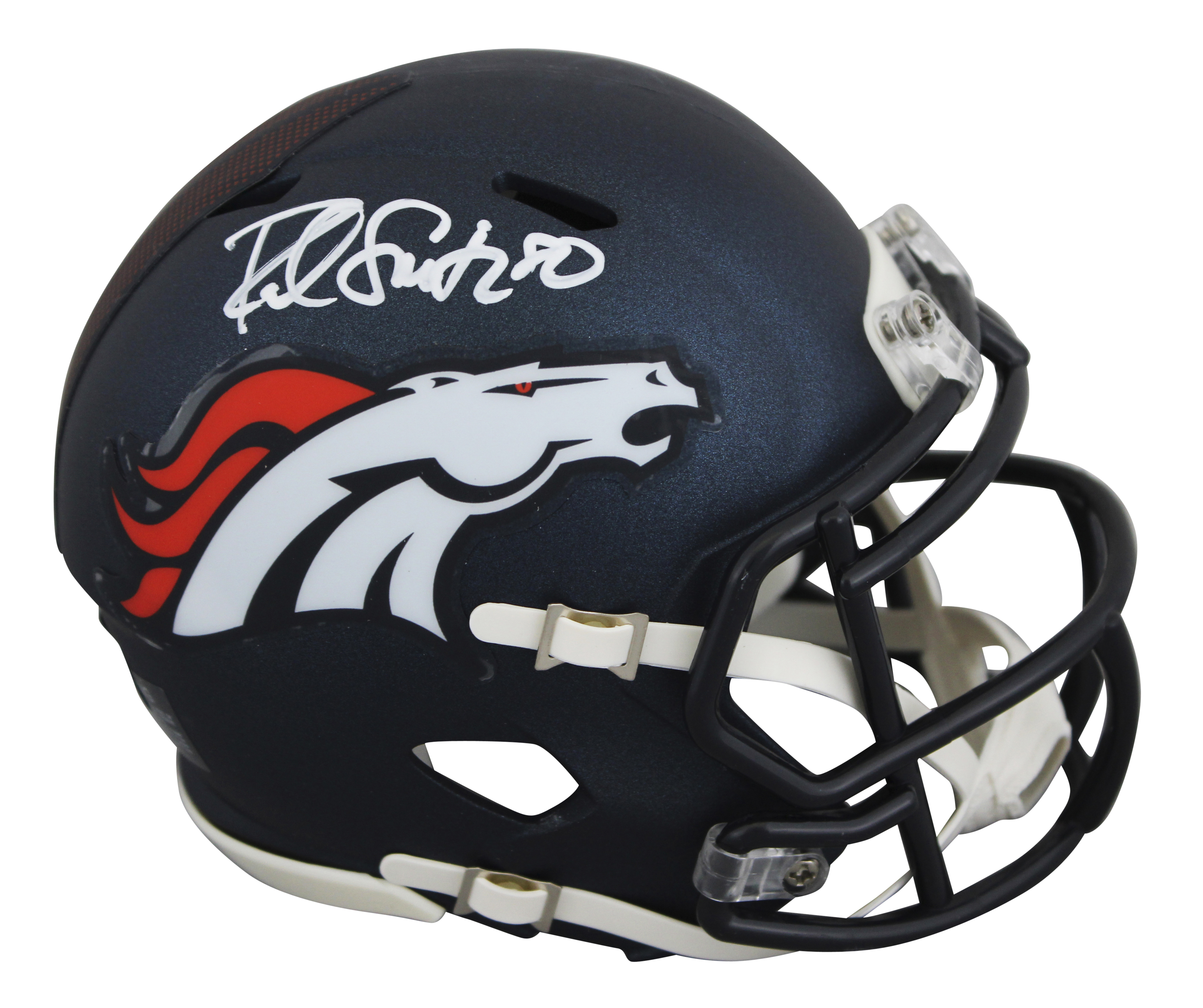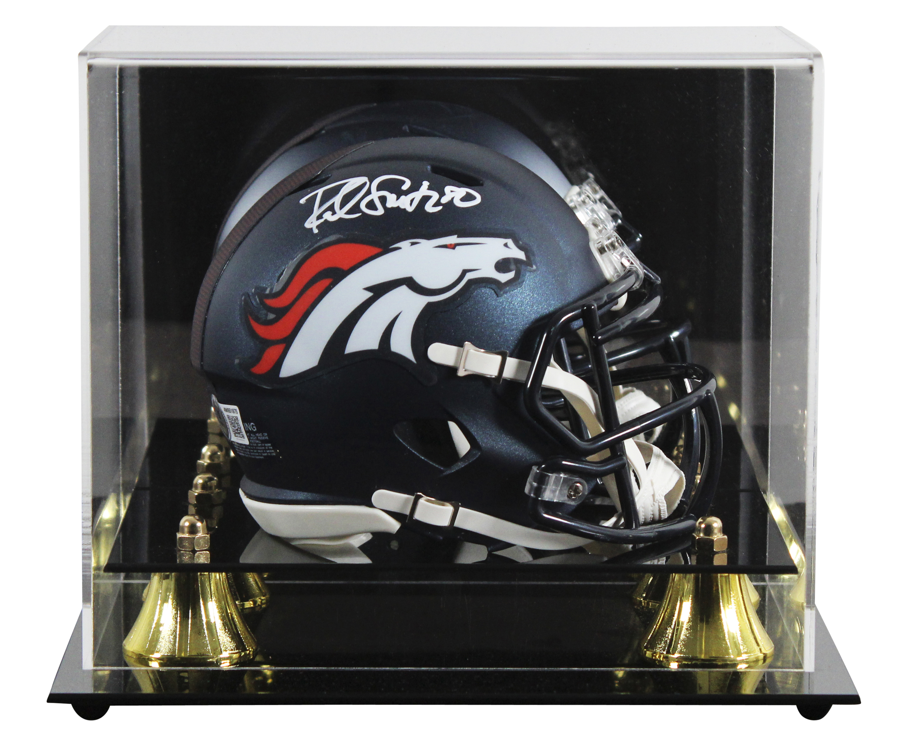 This Autographed Speed Mini Helmet W/ Uv Mirrored Back Acrylic Display Case has been Personally Signed by Rod Smith of the Denver Broncos. This item is 100% Authentic to include a hologram by Beckett Authentication Services. This item will come with an affixed Beckett Authentication Services (BAS) authentication sticker, which includes a scannable QR code to verify authenticity. Please note that Beckett no longer provides serial-numbered COA cards, and the attached BAS sticker will serve as the complete authentication for this item. This is a BAS Witnessed Protection Program item which means a Beckett Authentication Service representative was present when this item was being signed. We conducted an autograph signing with Rod Smith where multiples of the same item were signed. While the photographs are representative of this item, the size, placement and strength of the signature may vary. Each item is hand signed, therefore, each autograph is unique. This item can be verified through BAS Witnessed.