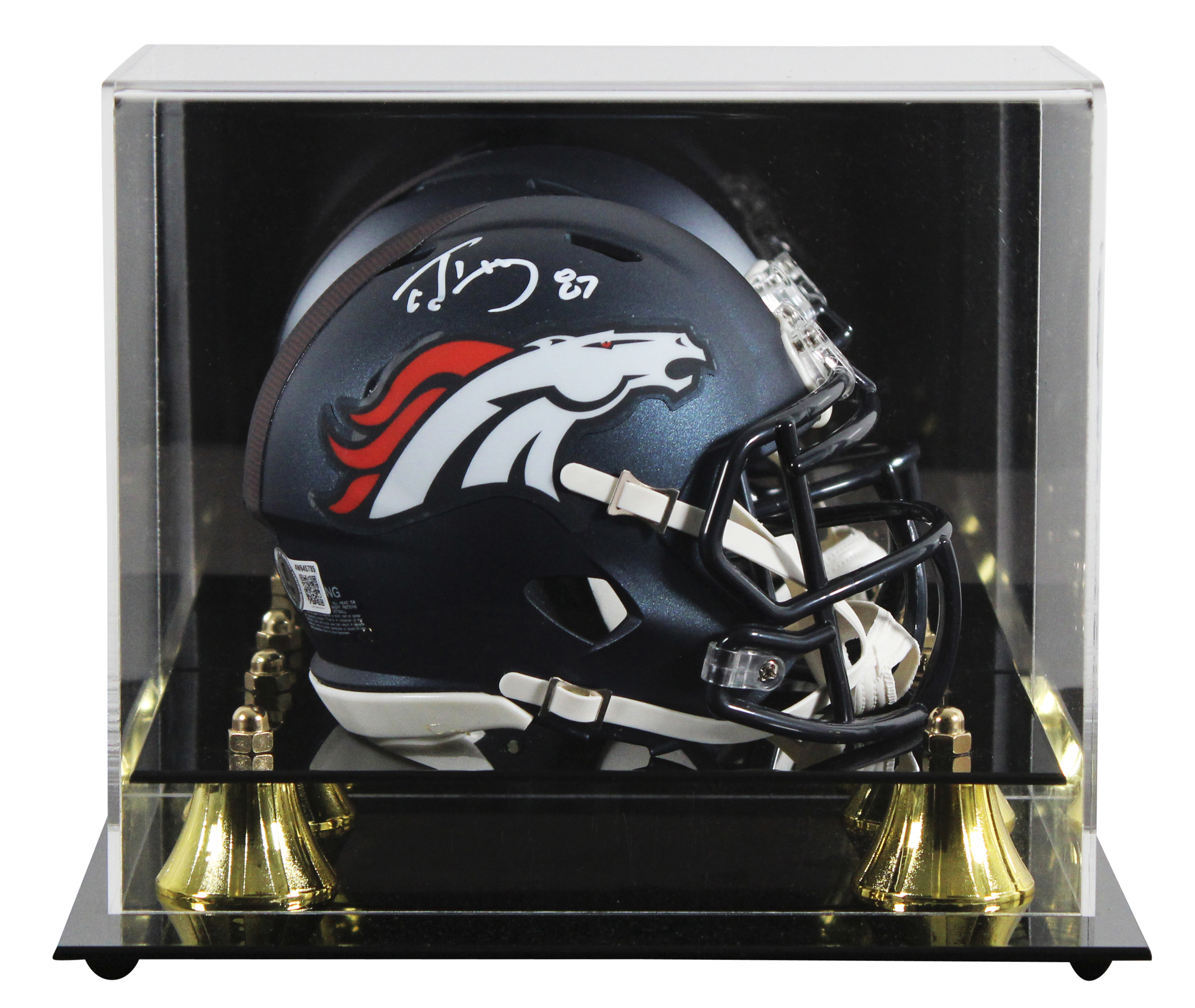 This Autographed Speed Mini Helmet W/ Uv Mirrored Back Acrylic Display Case has been Personally Signed by Ed McCaffrey of the Denver Broncos. This item is 100% Authentic to include a hologram by Beckett Authentication Services. This item will come with an affixed Beckett Authentication Services (BAS) authentication sticker, which includes a scannable QR code to verify authenticity. Please note that Beckett no longer provides serial-numbered COA cards, and the attached BAS sticker will serve as the complete authentication for this item. This is a BAS Witnessed Protection Program item which means a Beckett Authentication Service representative was present when this item was being signed. We conducted an autograph signing with Ed McCaffrey where multiples of the same item were signed. While the photographs are representative of this item, the size, placement and strength of the signature may vary. Each item is hand signed, therefore, each autograph is unique. This item can be verified through BAS Witnessed.