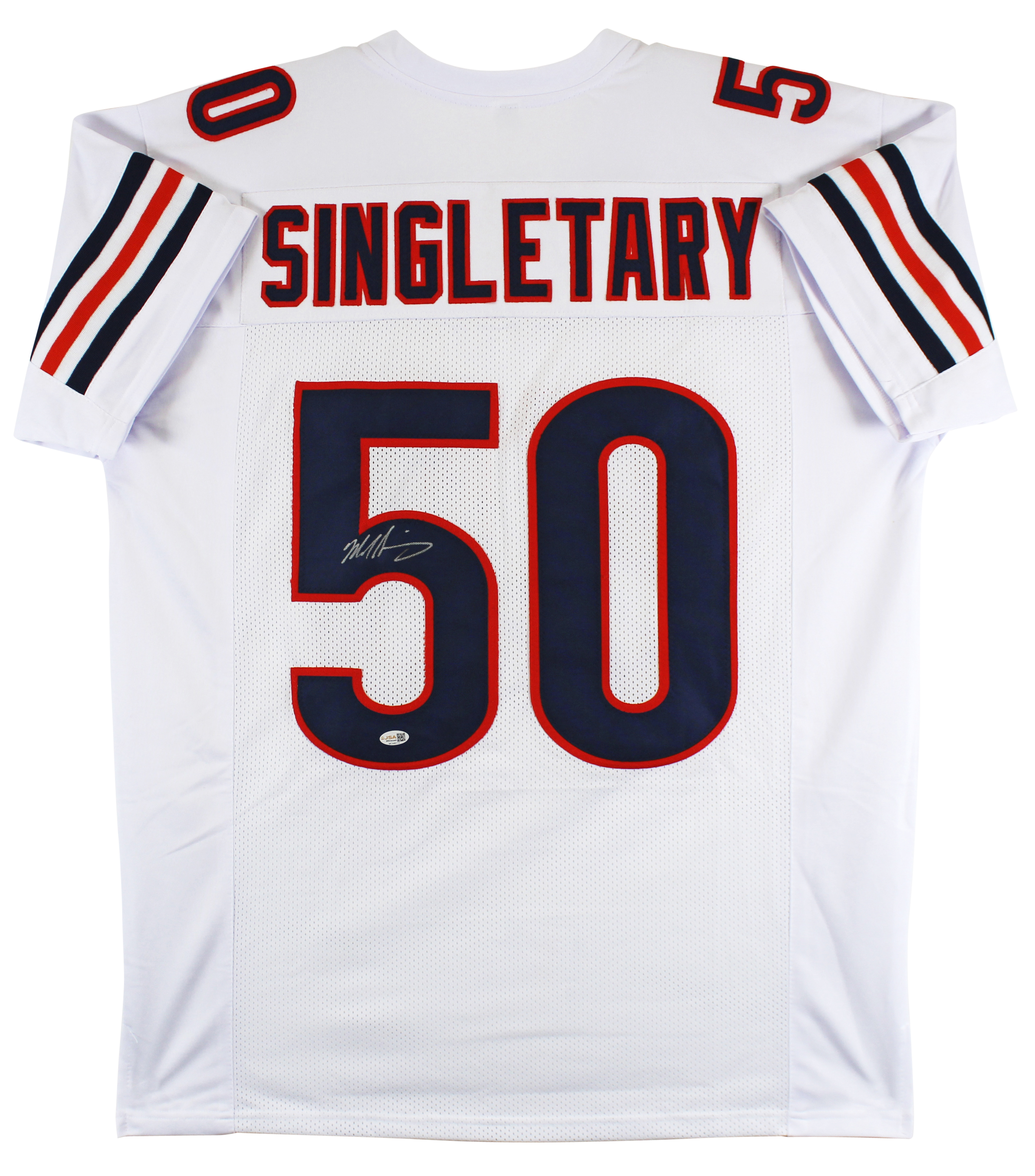 This Autographed White Pro Style Jersey has been Personally Signed by Mike Singletary of the Chicago Bears. This item is 100% Authentic to include a hologram by James Spence Authentication Services. This item will come with an affixed James Spence Authentication Services (JSA) authentication sticker, which includes a scannable QR code to verify authenticity. Please note that JSA no longer provides serial-numbered COA cards with witnessed items, and the attached JSA sticker will serve as the complete authentication for this item. This is a JSA Witnessed Protection Program item which means a JSA representative was present when this item was being signed. We conducted an autograph signing with Mike Singletary where multiples of the same item were signed. While the photographs are representative of this item, the size, placement and strength of the signature may vary. Each item is hand signed, therefore, each autograph is unique. This item can be verified through JSA Witness. This is a X-Large sized, non-branded, custom-stitched Jersey.