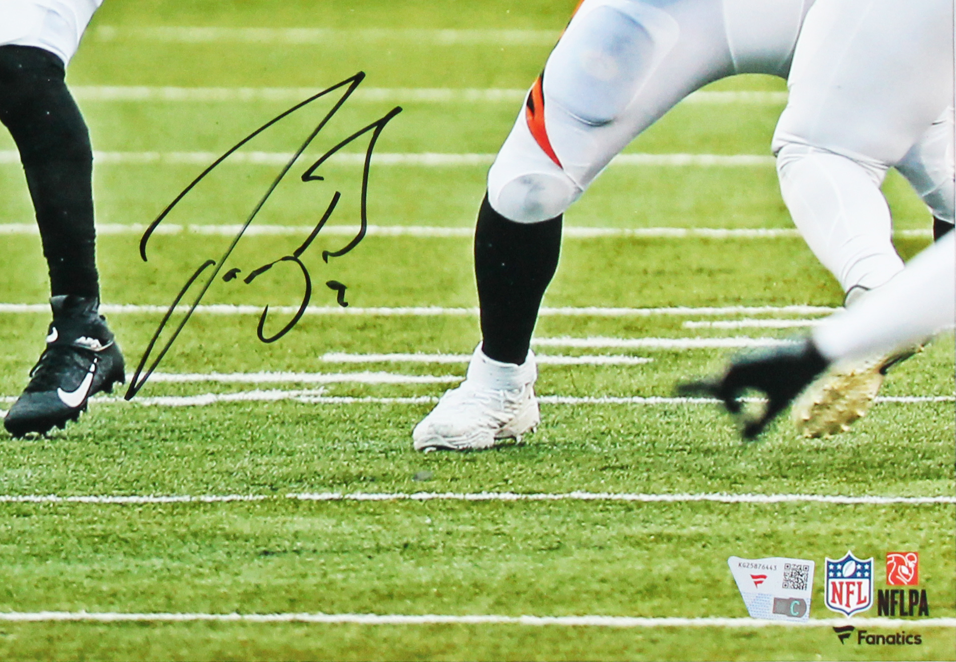 This Autographed Vs Jaguars Horizontal 16x20 Framed Photo has been Personally Signed by Joe Burrow of the Cincinnati Bengals. This item is 100% Authentic to includes a numbered hologram by Fanatics. We have multiples of this same item. While the photographs are representative of this item, the size, placement and strength of the signature may vary. Each item is hand signed, therefore, each autograph is unique. This item has been professionally framed to overall dimensions of approximately 23.5 x 27.5 inches.