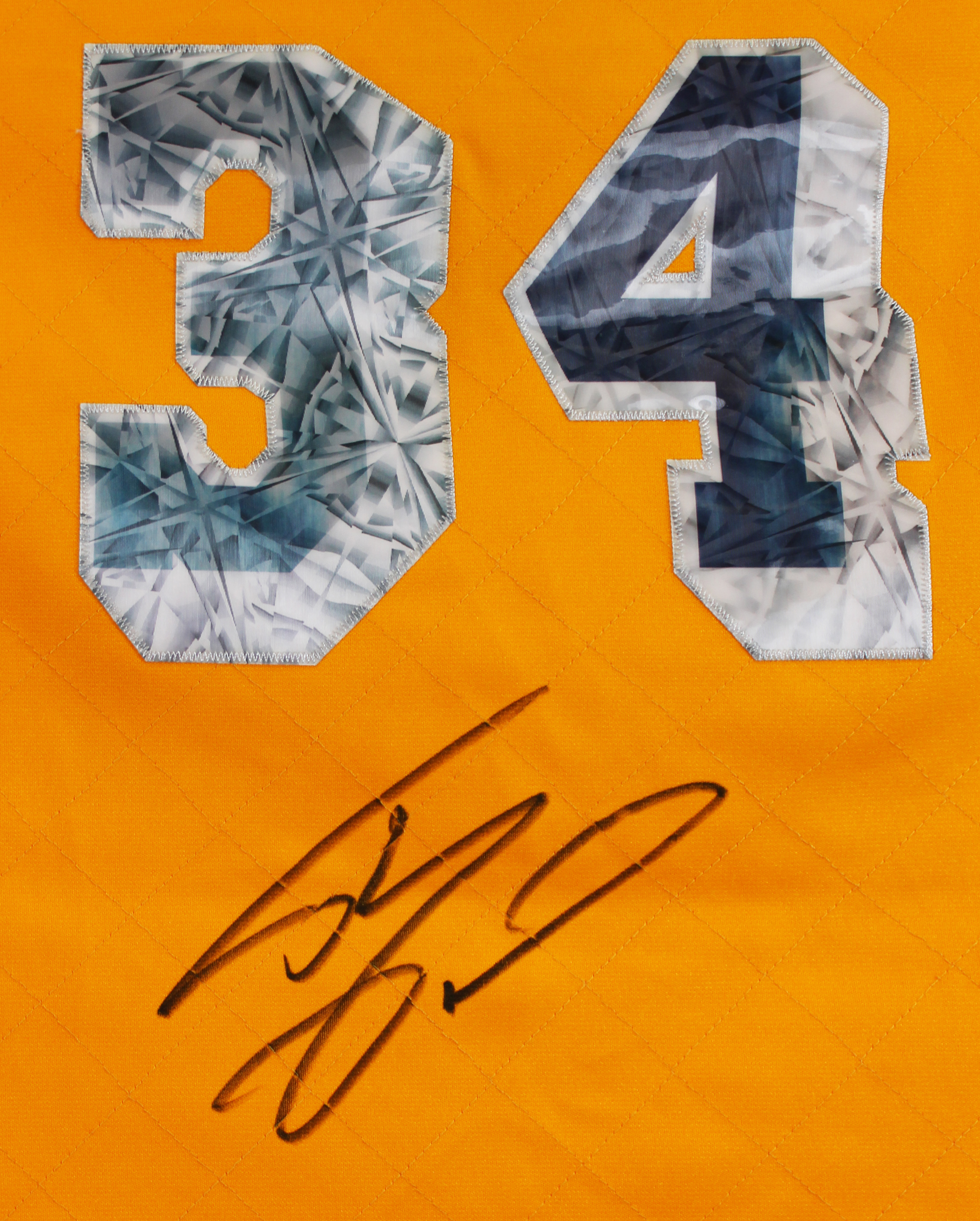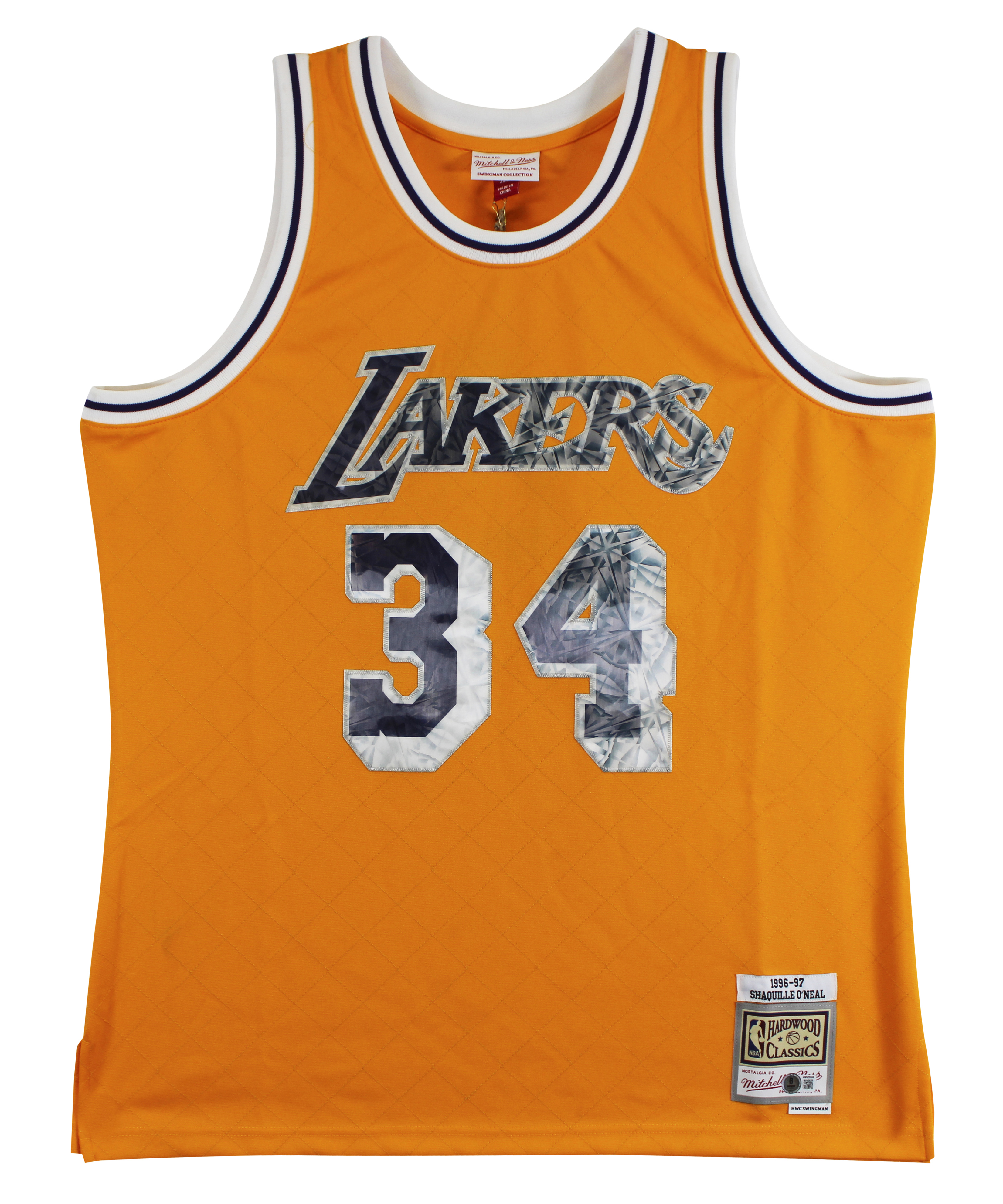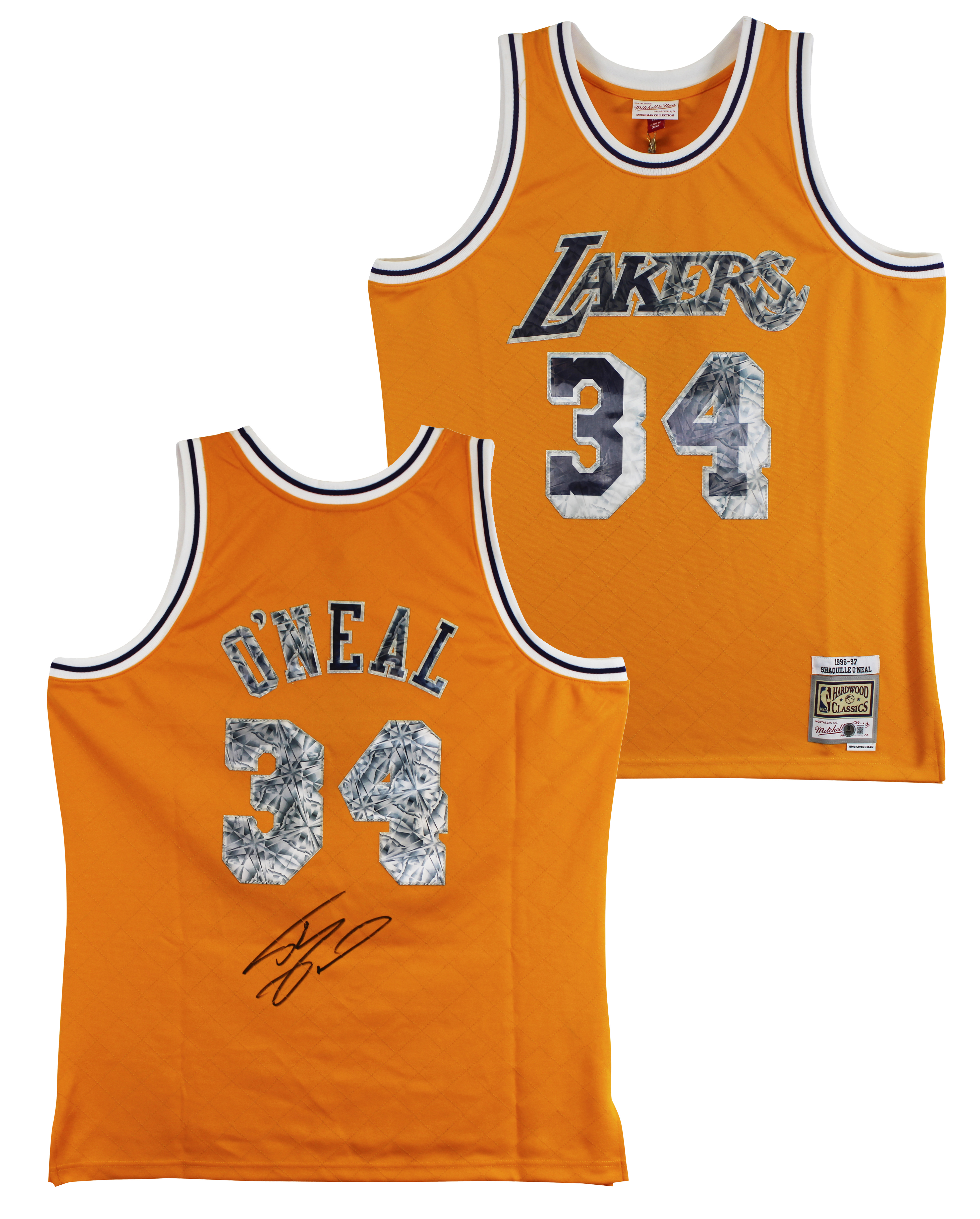 This Autographed Yellow 75th Anniversary Mitchell & Ness 1996 Throwback Hardwood Classics Swingman Jersey has been Personally Signed by Shaquille O'Neal of the Los Angeles Lakers. This item is 100% Authentic to include a hologram by Beckett Authentication Services. This item will come with an affixed Beckett Authentication Services (BAS) authentication sticker, which includes a scannable QR code to verify authenticity. Please note that Beckett no longer provides serial-numbered COA cards, and the attached BAS sticker will serve as the complete authentication for this item. This is a BAS Witnessed Protection Program item which means a Beckett Authentication Service representative was present when this item was being signed. We conducted an autograph signing with Shaquille O'Neal where multiples of the same item were signed. While the photographs are representative of this item, the size, placement and strength of the signature may vary. Each item is hand signed, therefore, each autograph is unique. This item can be verified through BAS Witnessed. This is a X-Large sized Jersey.