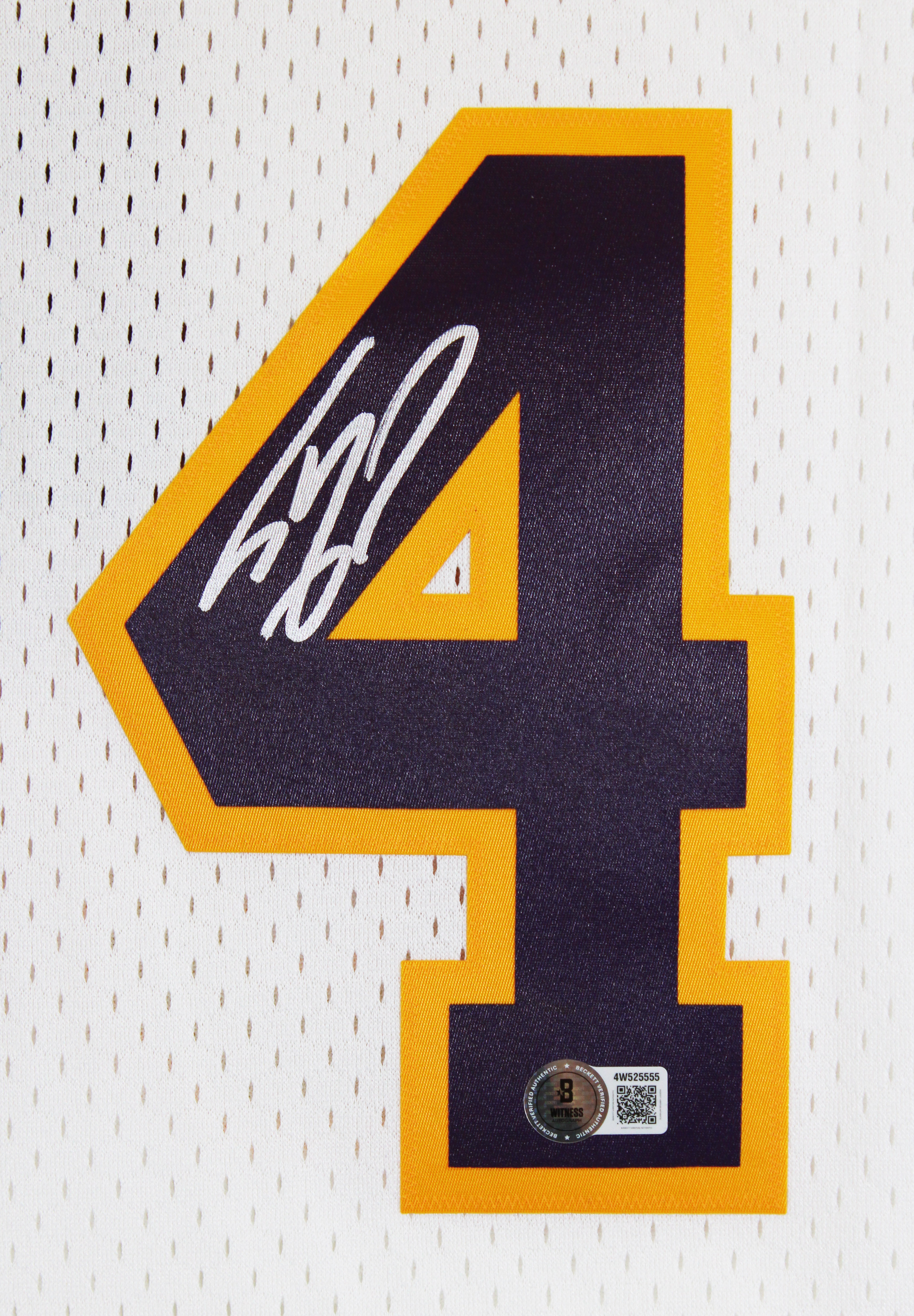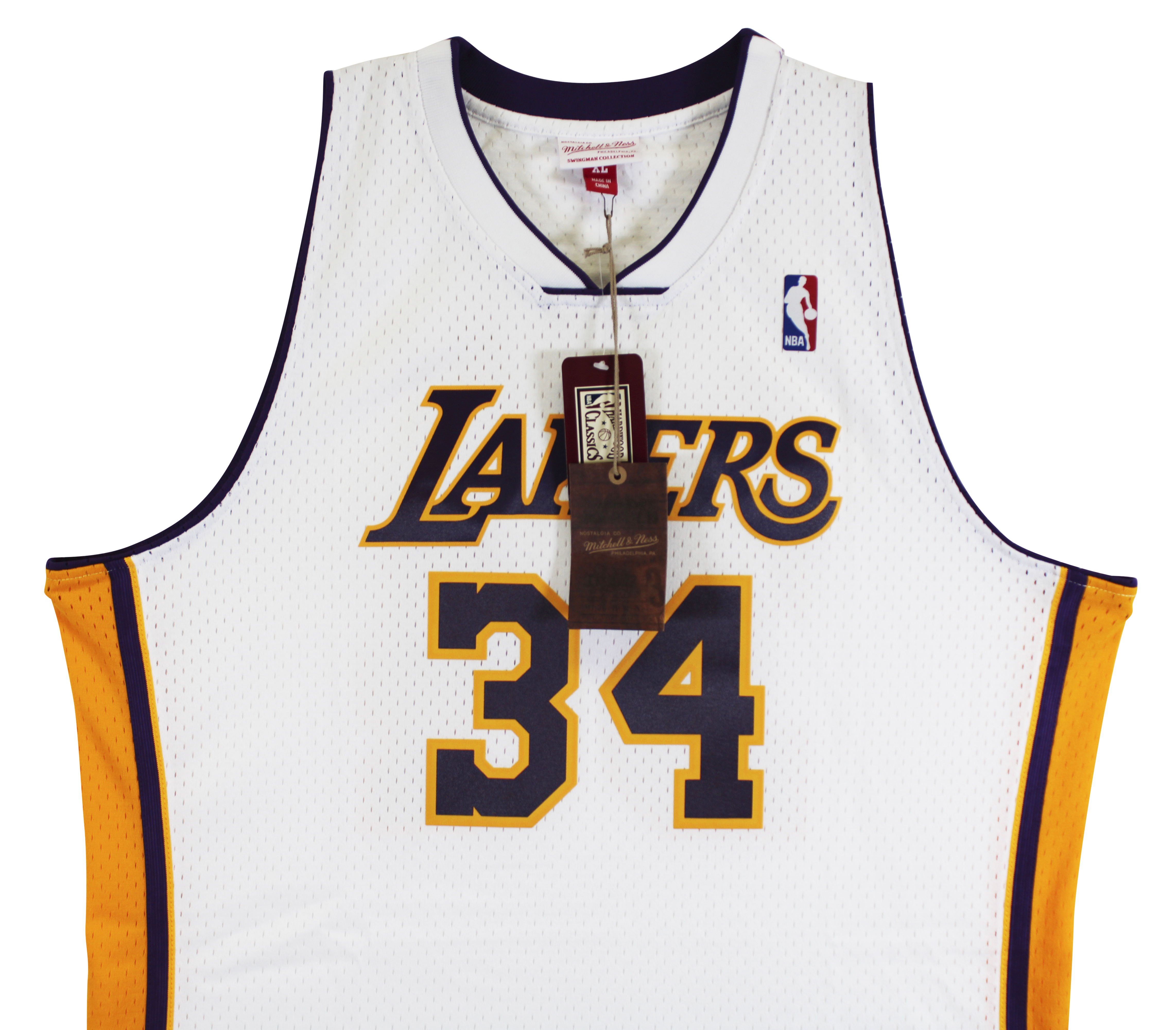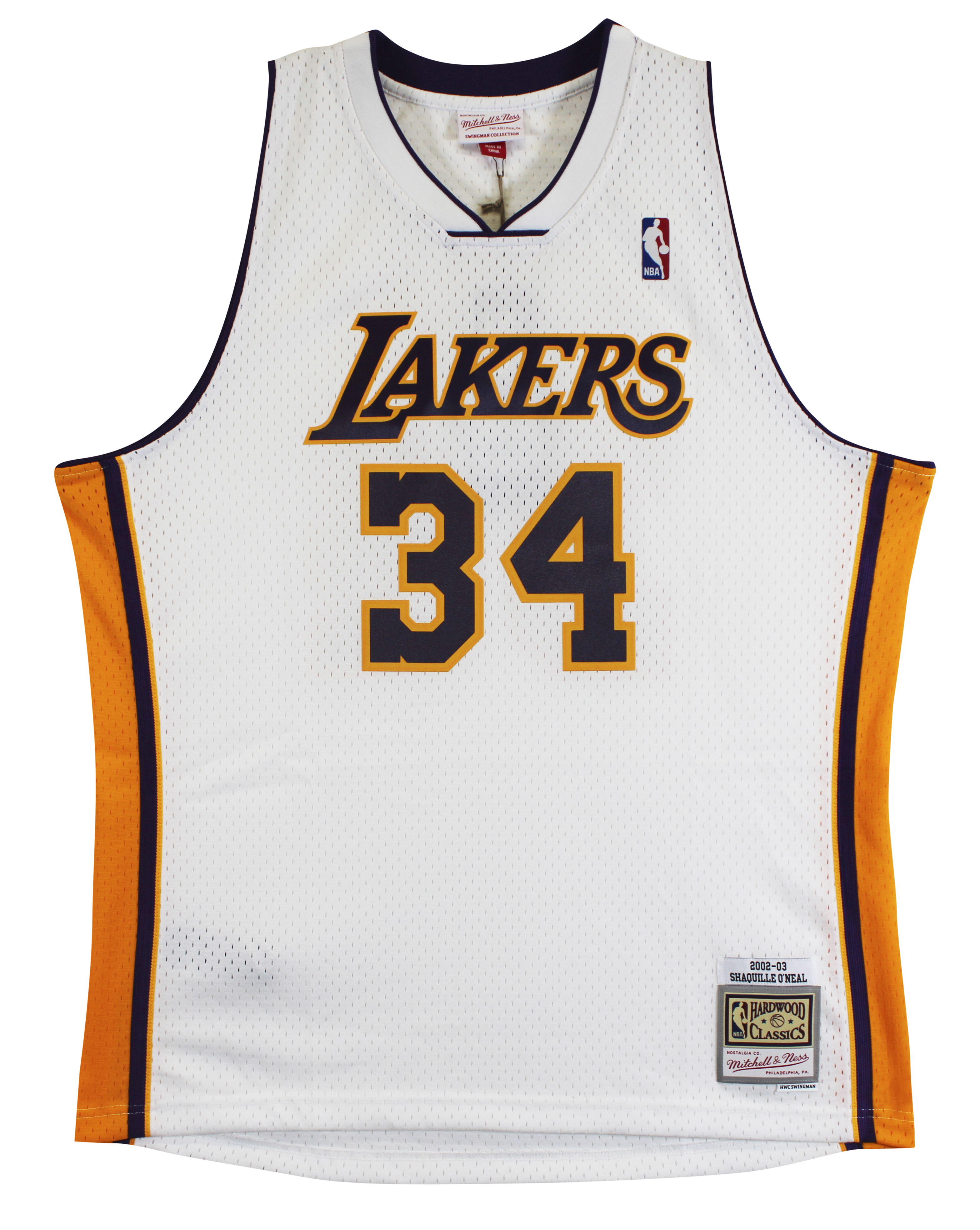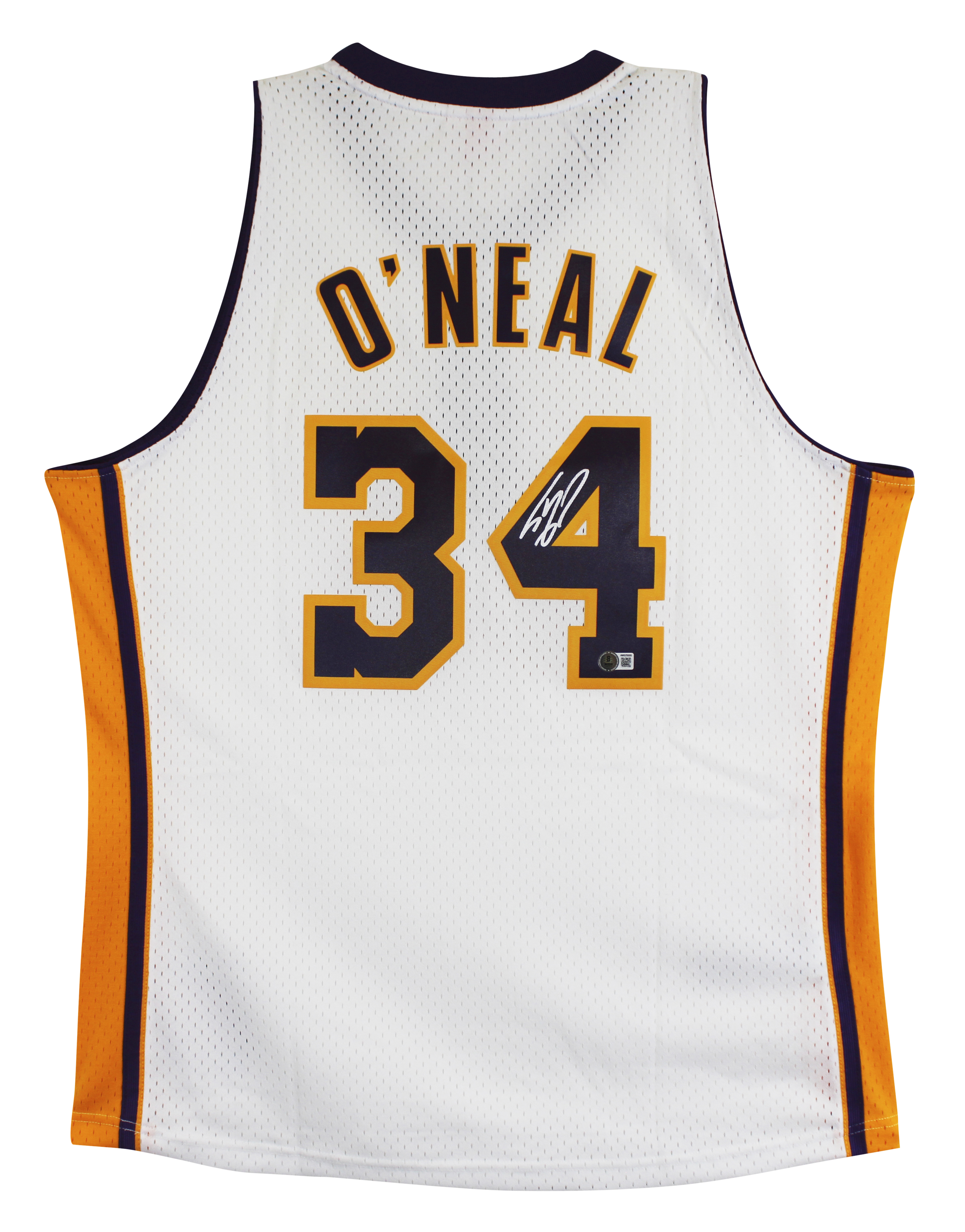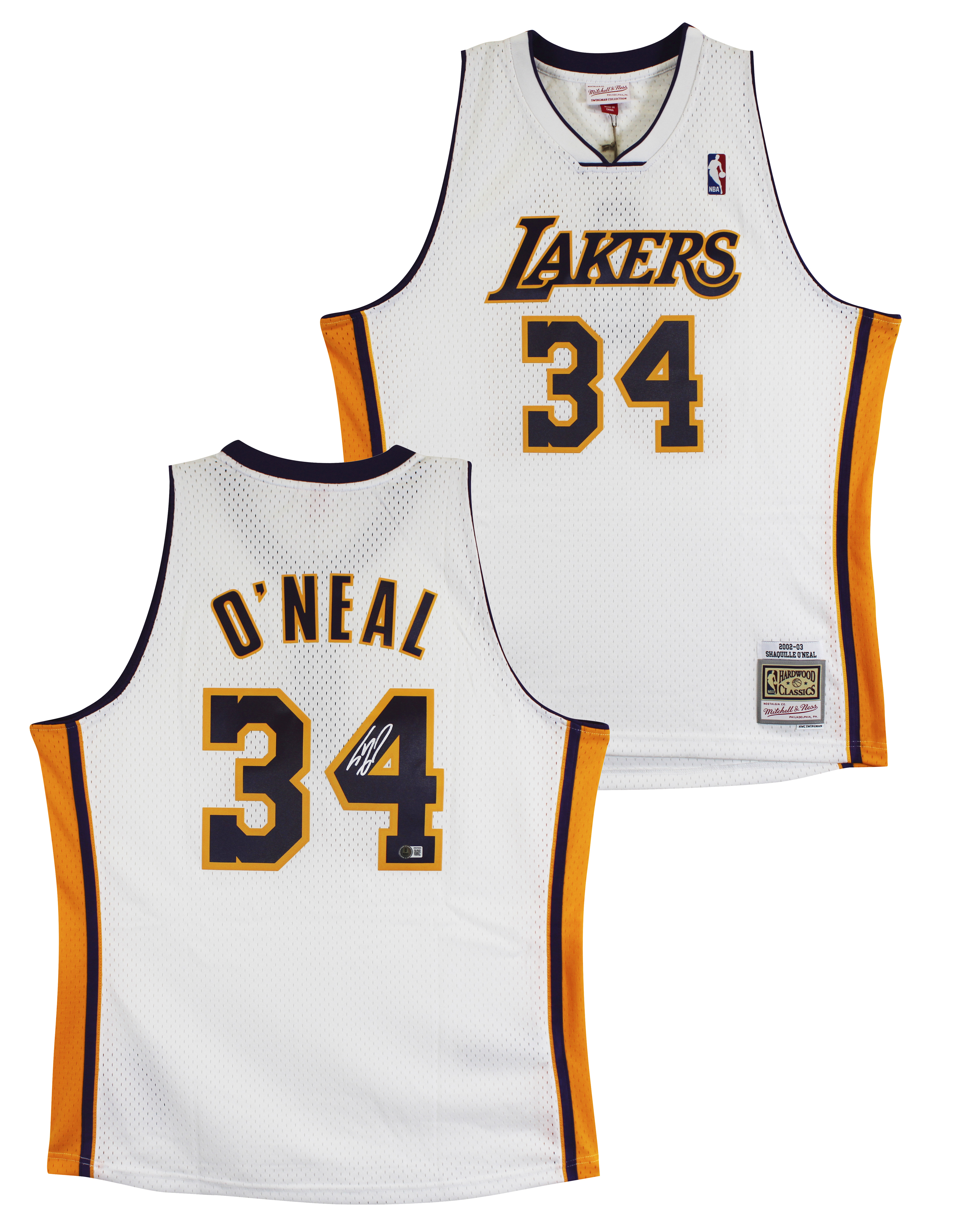 This Autographed White Mitchell & Ness 2002-03 Throwback Hardwood Classics Swingman Jersey has been Personally Signed by Shaquille O'Neal of the Los Angeles Lakers. This item is 100% Authentic to include a hologram by Beckett Authentication Services. This item will come with an affixed Beckett Authentication Services (BAS) authentication sticker, which includes a scannable QR code to verify authenticity. Please note that Beckett no longer provides serial-numbered COA cards, and the attached BAS sticker will serve as the complete authentication for this item. This is a BAS Witnessed Protection Program item which means a Beckett Authentication Service representative was present when this item was being signed. We conducted an autograph signing with Shaquille O'Neal where multiples of the same item were signed. While the photographs are representative of this item, the size, placement and strength of the signature may vary. Each item is hand signed, therefore, each autograph is unique. This item can be verified through BAS Witnessed. This is a X-Large sized Jersey.